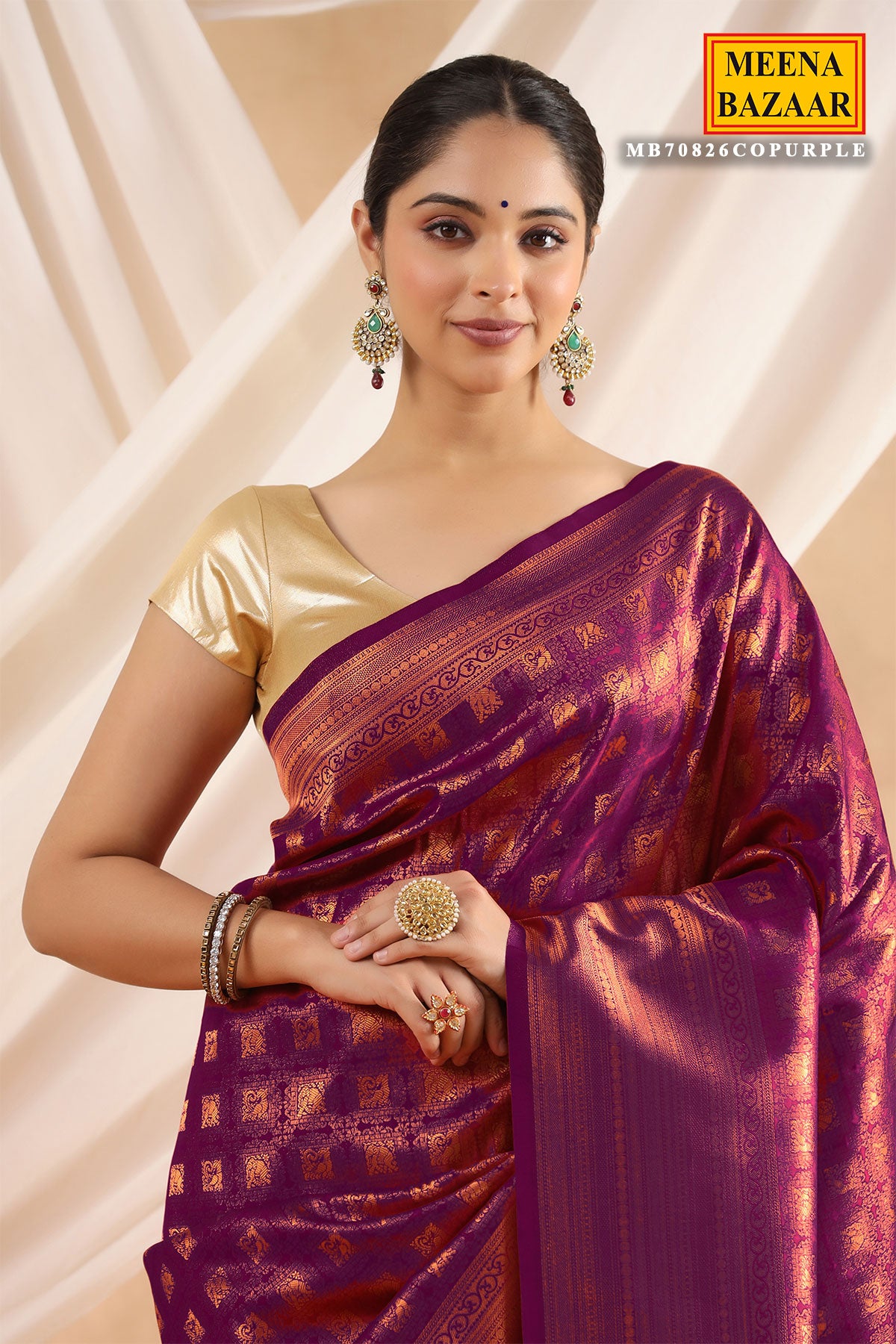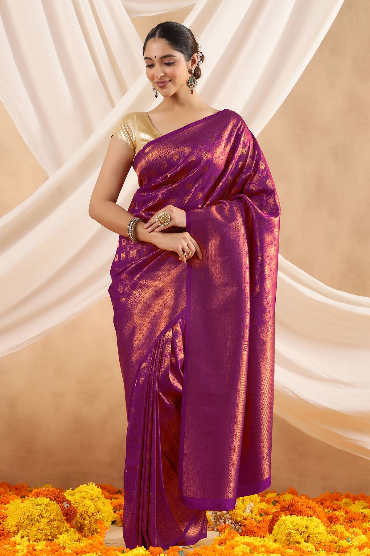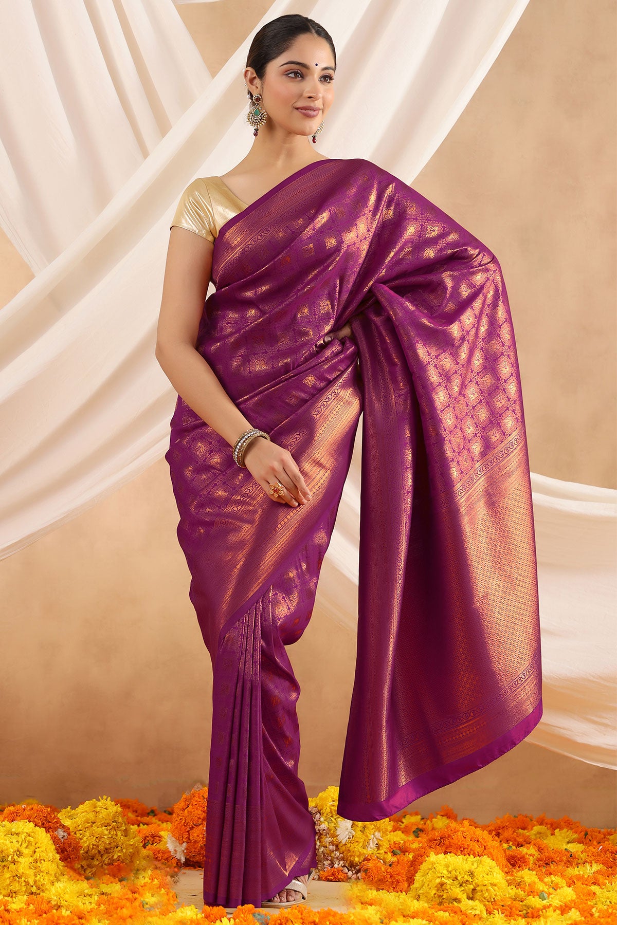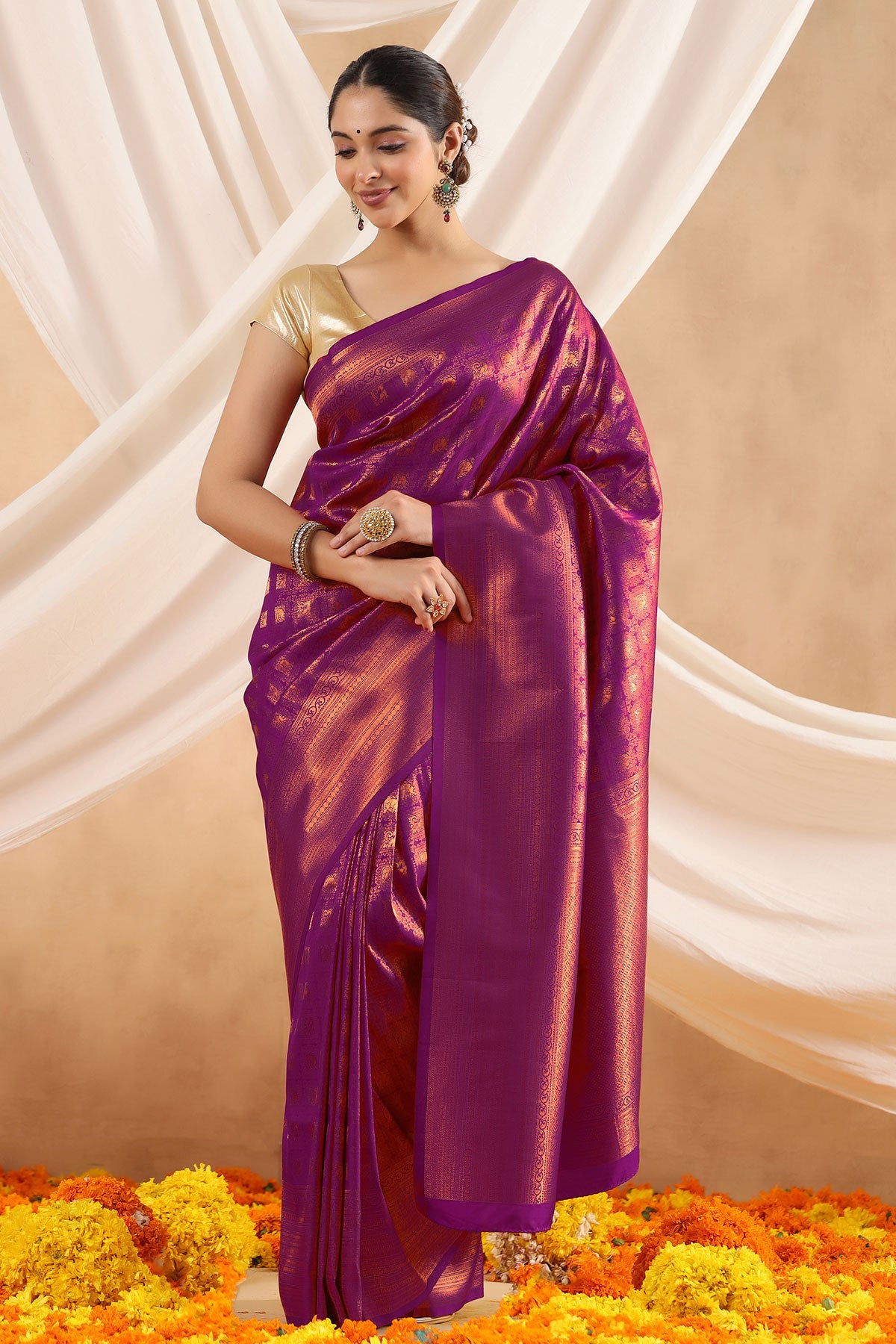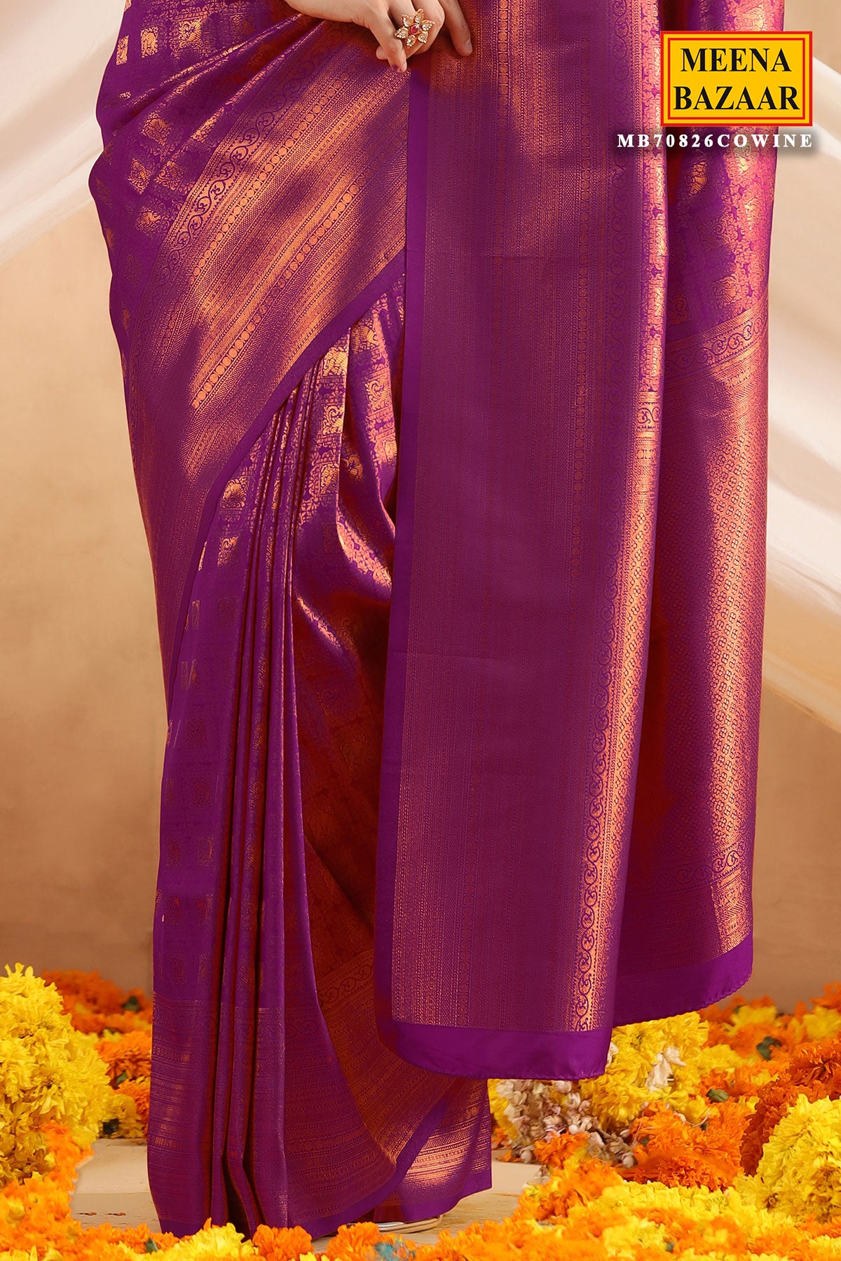 Wine Silk Saree Elegant Zari Woven Silk Saree for Festive & Wedding Wear
