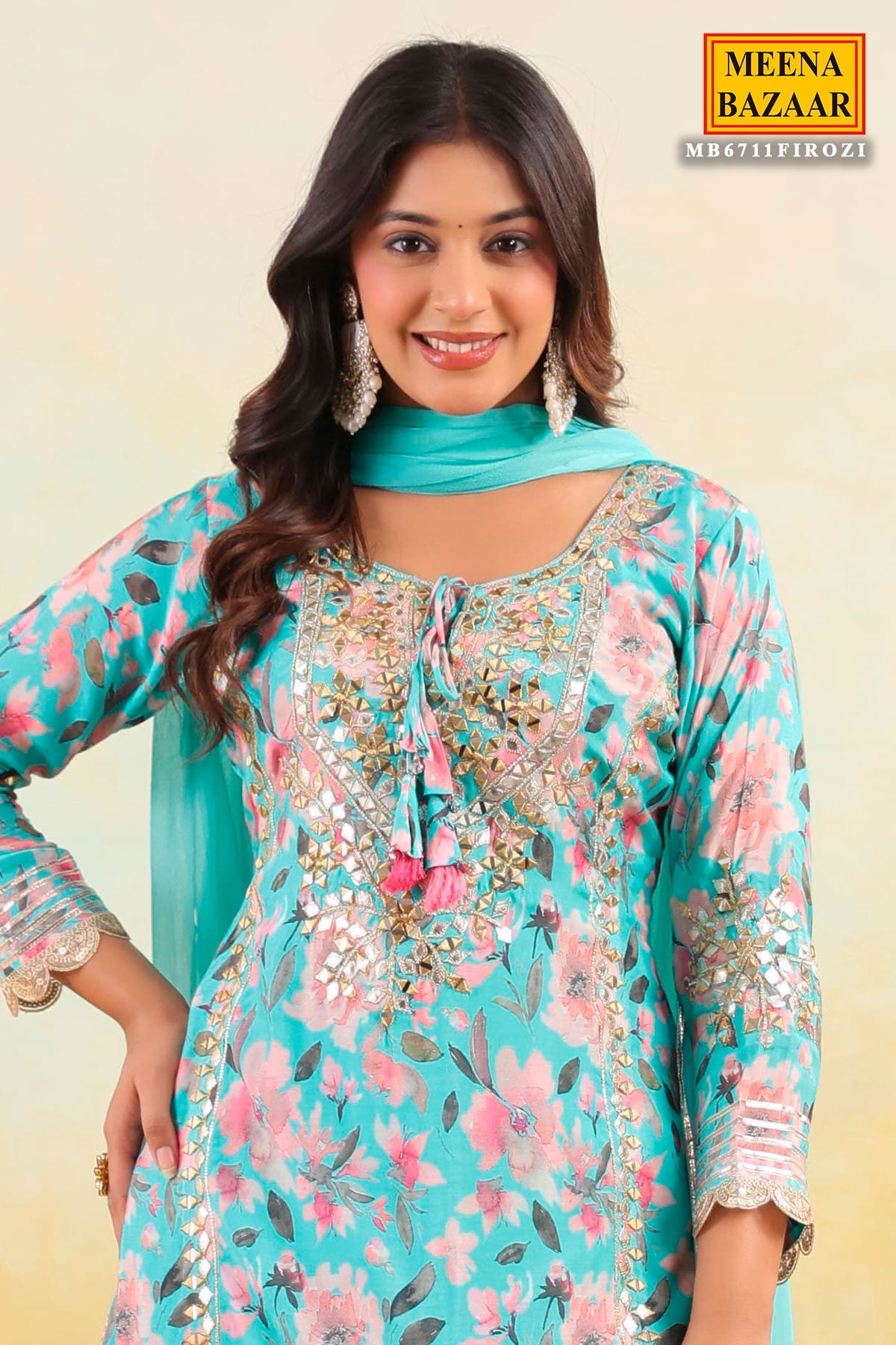 This beautiful Firozi Maslin Readymade Suit. Crafted from soft and breathable maslin fabric, this suit features delicate embroidery on the neckline, enhancing its graceful and refined appeal. The soothing firozi shade adds a fresh and vibrant charm, making it ideal for casual outings, office wear, festive gatherings, and daytime functions. Designed for comfort and ease, this readymade maslin suit offers a flattering fit and effortless styling. Pair it with minimal jewellery and matching footwear for a polished everyday ethnic look. Please Note: There may be a slight difference in the product color due to lighting and screen reflections.
