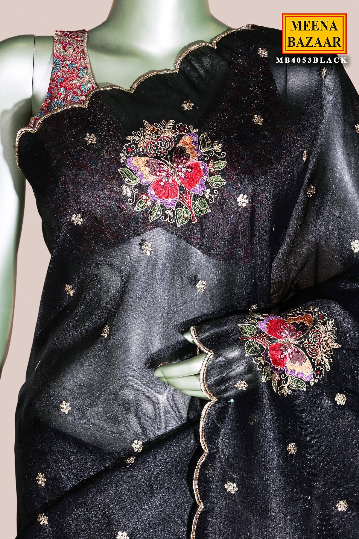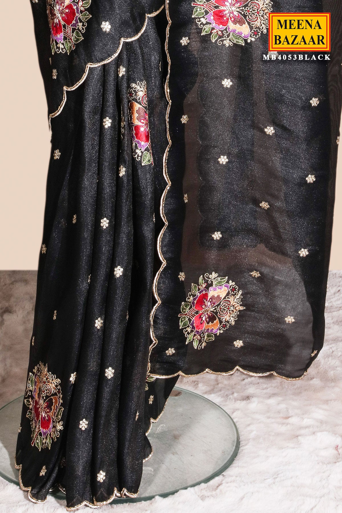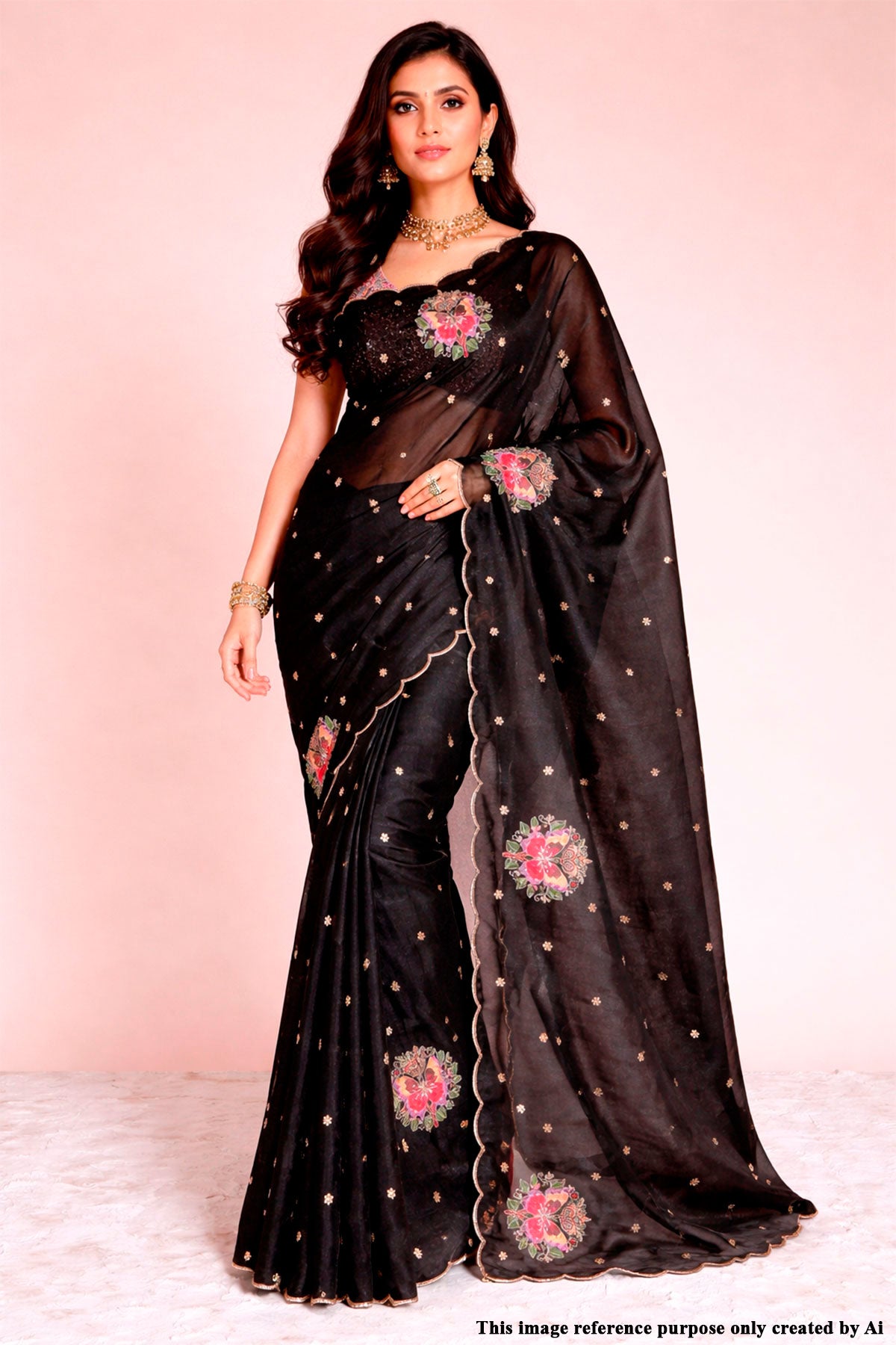 Black Shimmer Embroidered Saree Elegant Party & Evening Wear