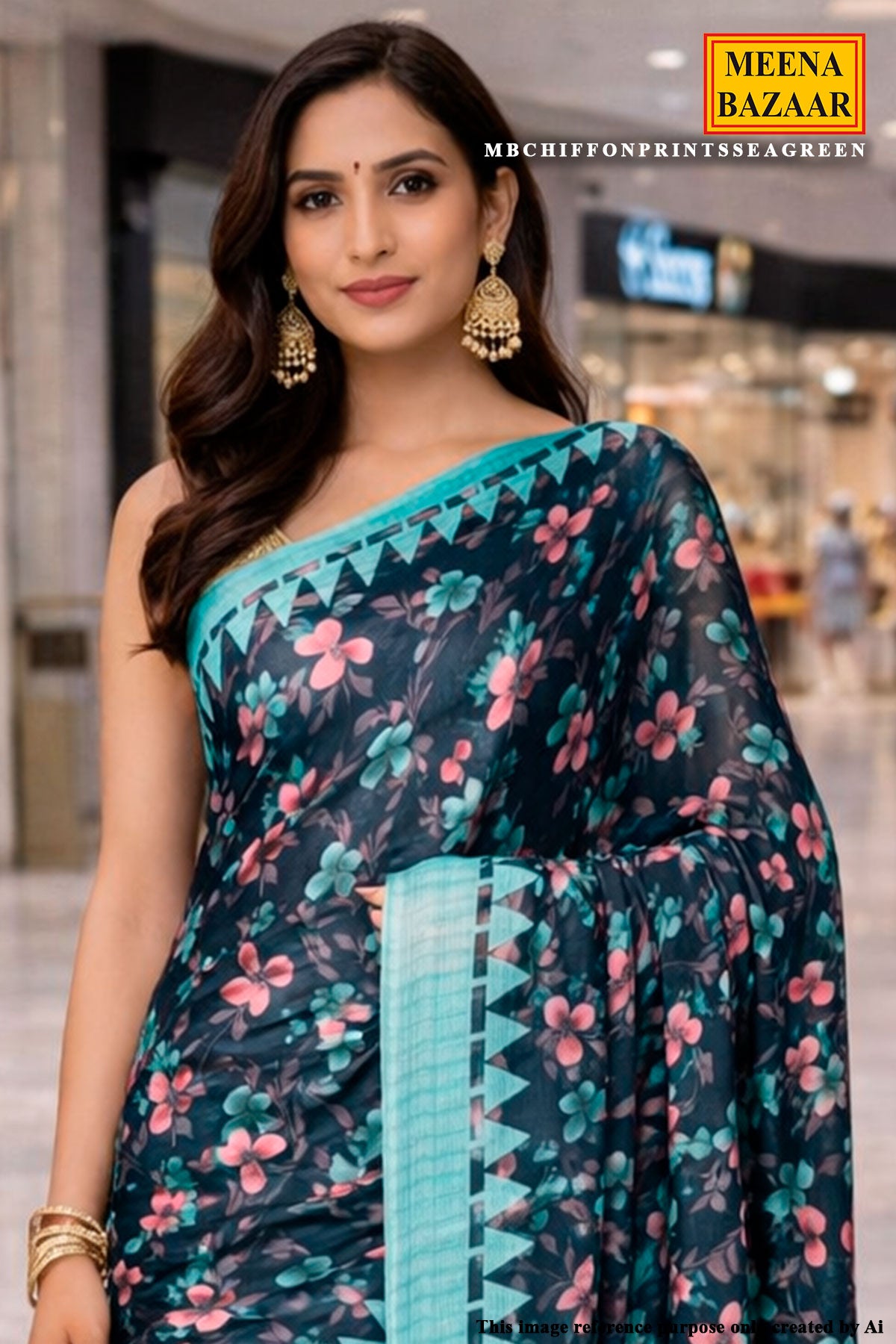 Step into refined elegance with this stunning sea green saree, crafted from lightweight georgette for a graceful, fluid drape. The soft printed design adds a modern charm while maintaining a timeless appeal. Perfect for both day events and evening gatherings, this saree offers effortless sophistication with every wear.