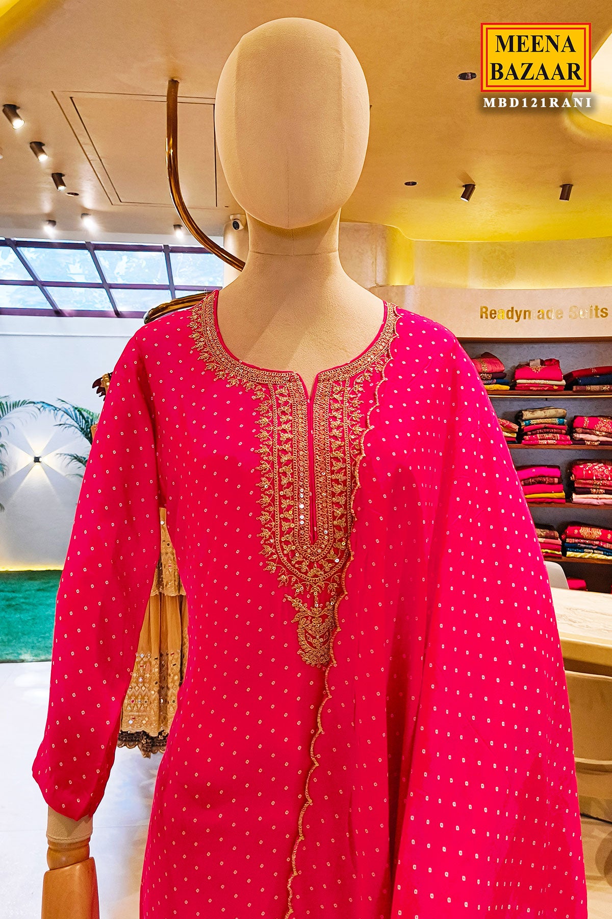 Rani Neck Embroidered Silk Readymade Suit Party & Festive Wear