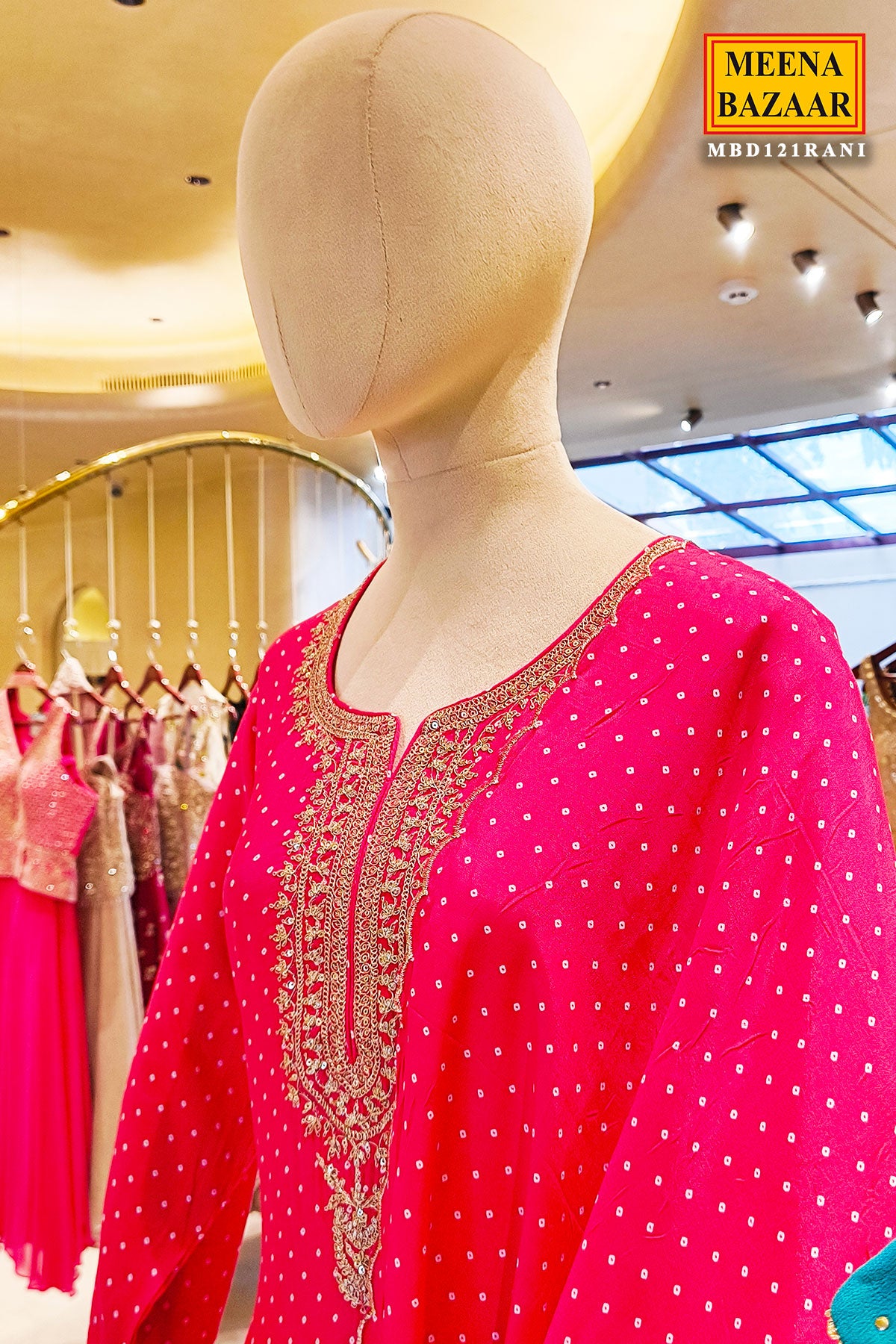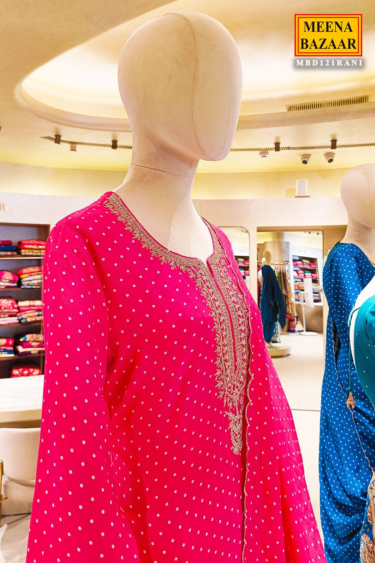This elegant three-piece kurti set showcases the timeless charm of traditional Bandhani artistry blended with contemporary styling. The kurti features classic Bandhani motifs, beautifully highlighted with delicate embroidery along the neckline, adding a refined festive touch. Paired with a coordinated bottom and a lightweight Bandhani dupatta, the set offers effortless comfort and graceful movement. Crafted in vibrant hues, it is perfect for festive gatherings, casual celebrations, and cultural occasions.
