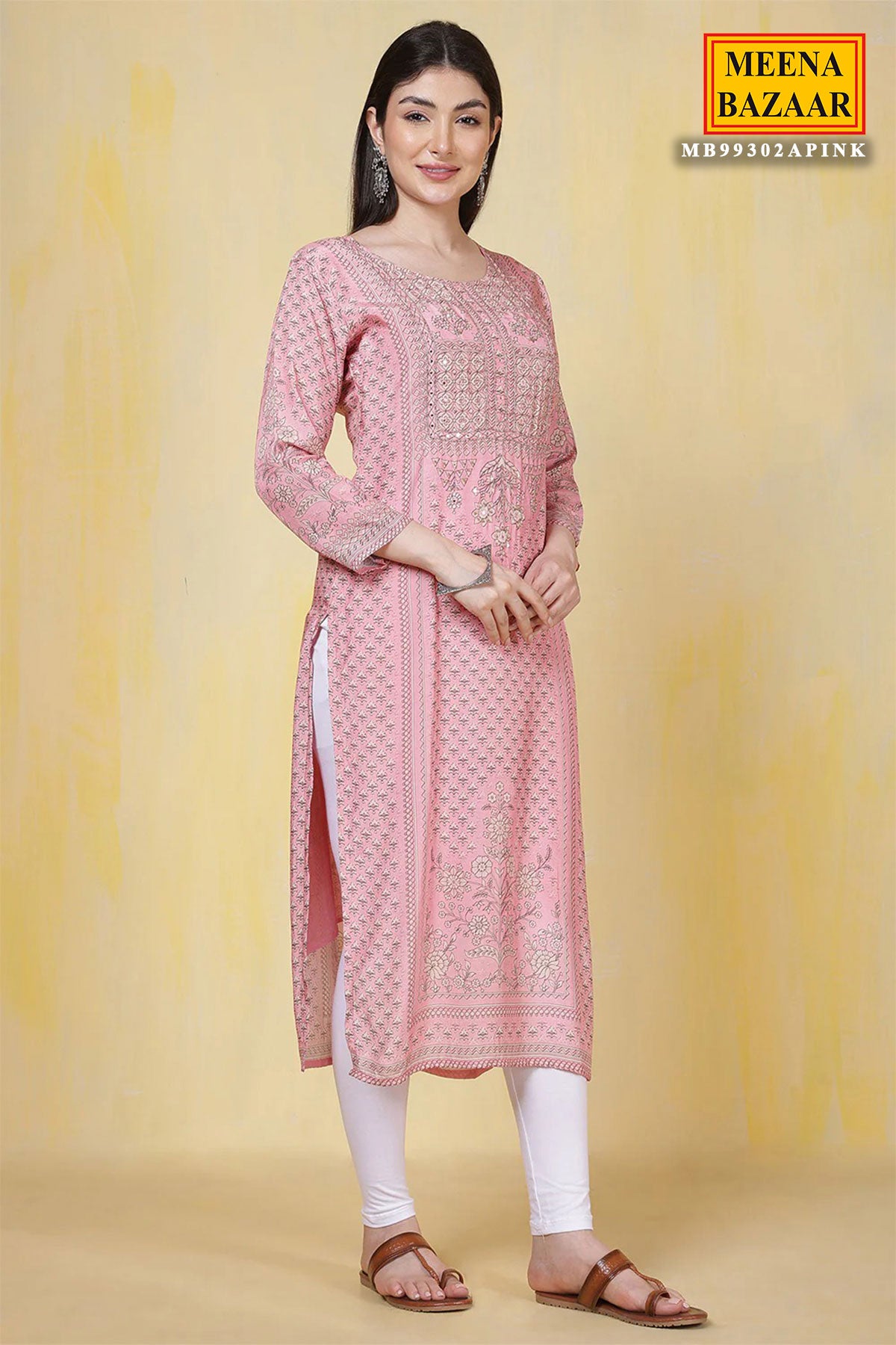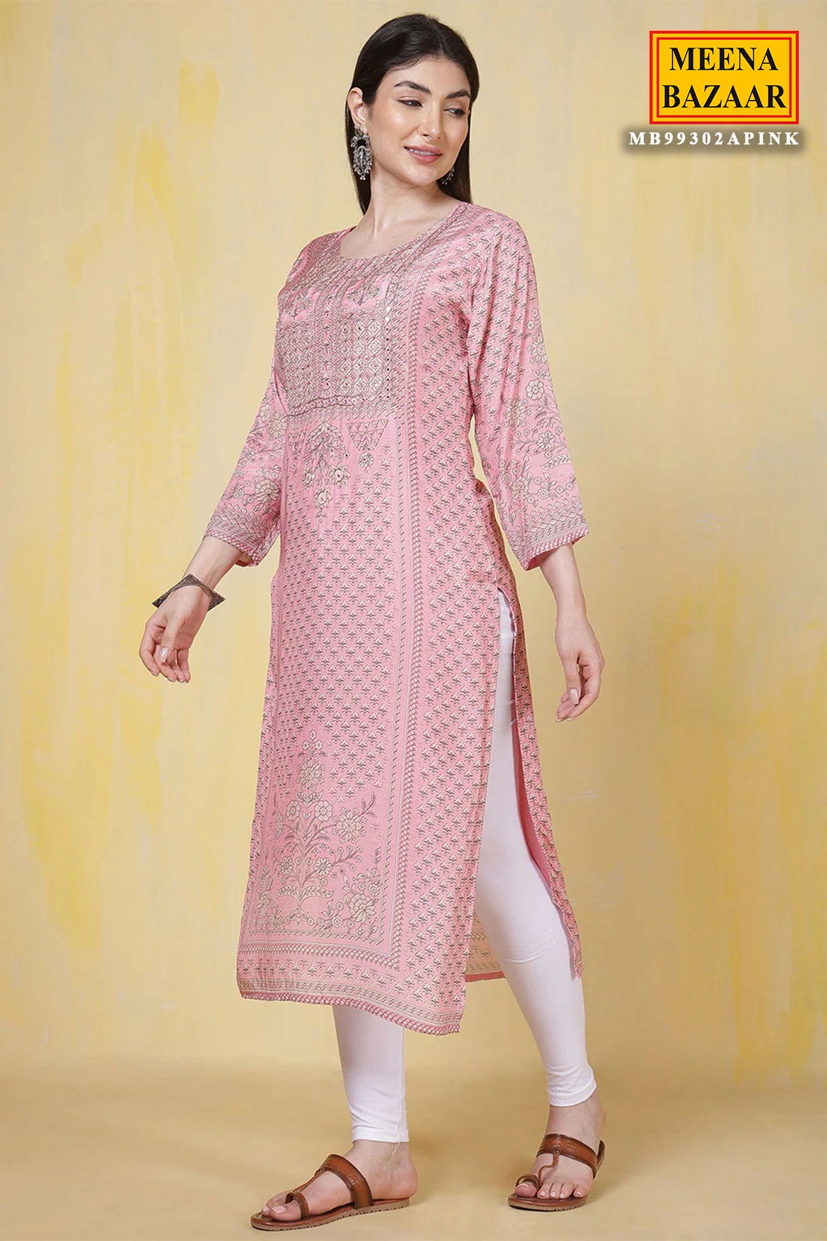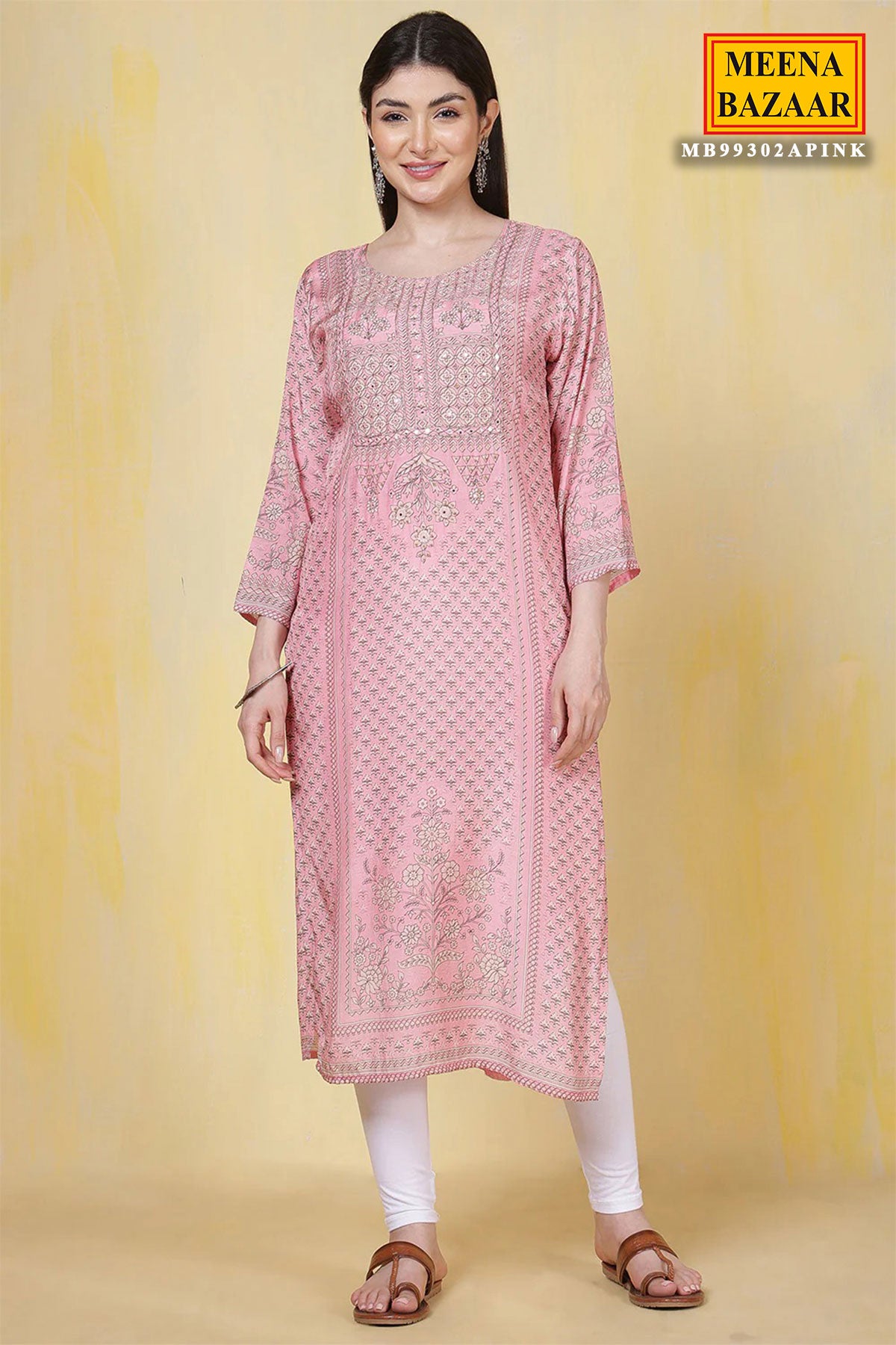 Our exquisite Pink Muslin Silk Sequin Embroidered Printed Kurti Set blends sophistication and charm for all casual and intimate gatherings. Featuring graceful sequin embroidery on the kurti and intricate floral prints, this Kurti and dupatta pair beautifully with the patterned bottom. It's an elegant ensemble offering the perfect combination of finesse, versatility, and comfort. Wear this harmonious set elevated with oxidized earrings for a touch of charm. Note: Colour may slightly differ from the actual item due to photographic lighting sources or the monitor's settings.
