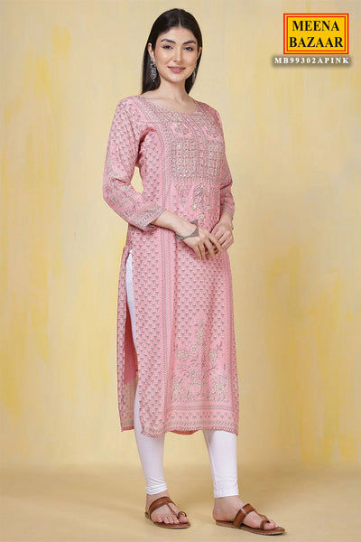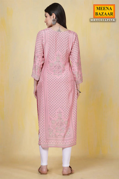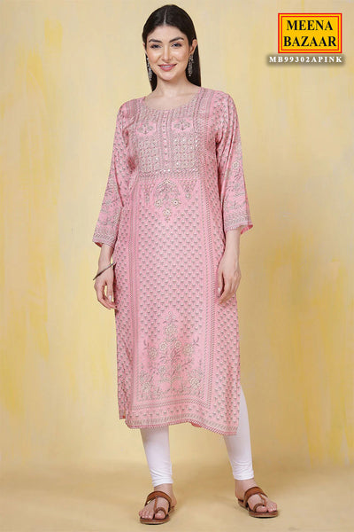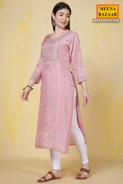 Pink Muslin Silk Sequin Embroidered Printed Kurti Set