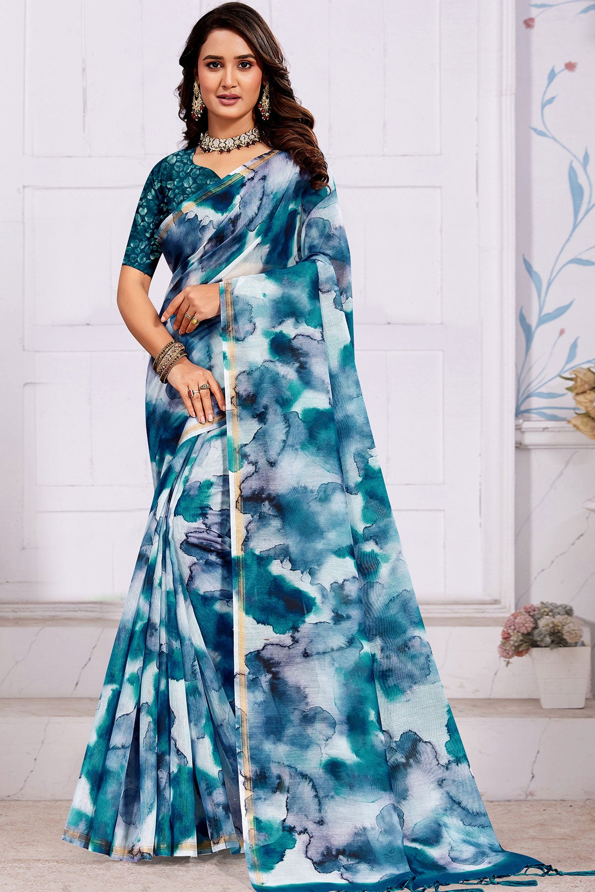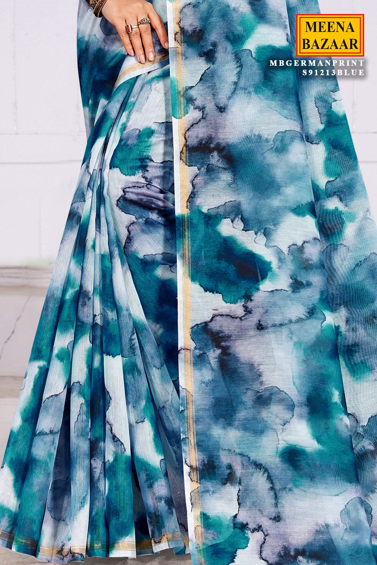 Elegant Blue Organza Printed Saree – Lightweight & Graceful Ethnic Wear