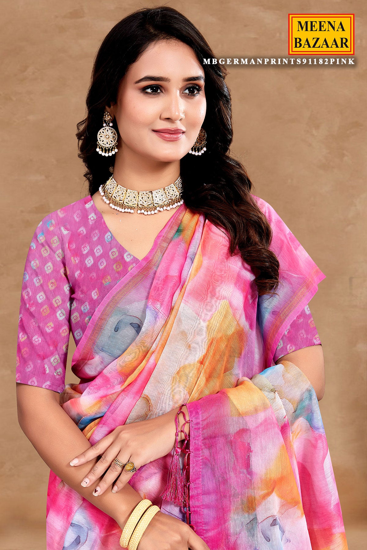 Add a graceful charm to your wardrobe with this beautiful pink organza saree. Crafted from lightweight and sheer organza fabric, this saree offers a sophisticated drape and a soft, elegant look. The delicate printed design enhances its overall appeal, making it perfect for festive gatherings, celebrations, and special occasions.