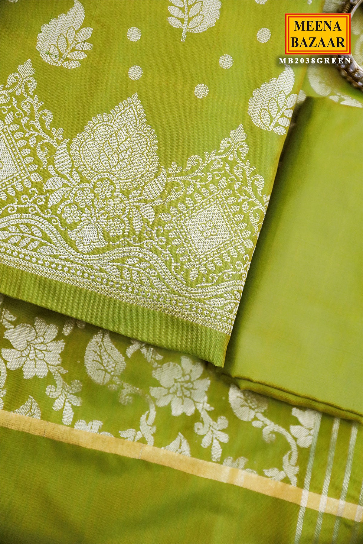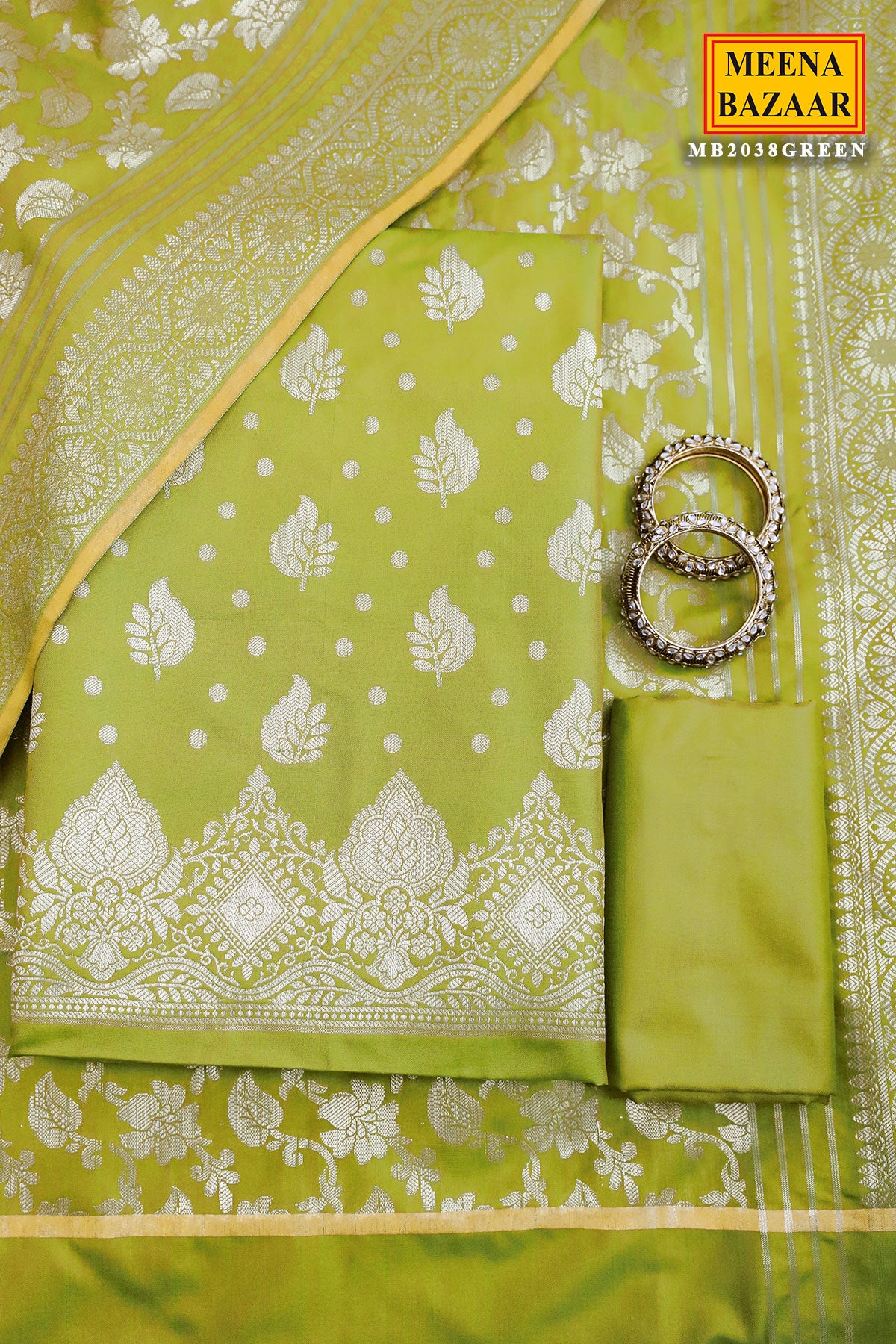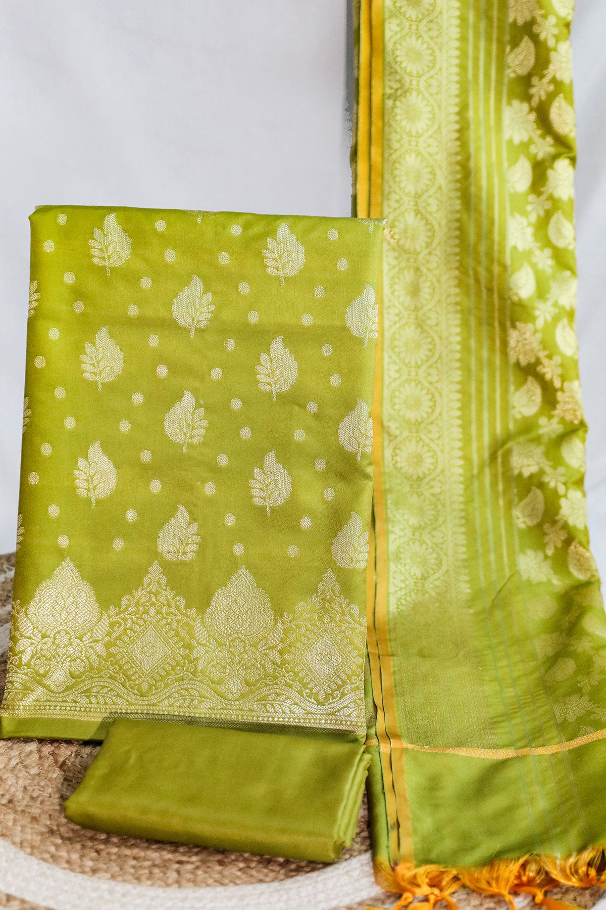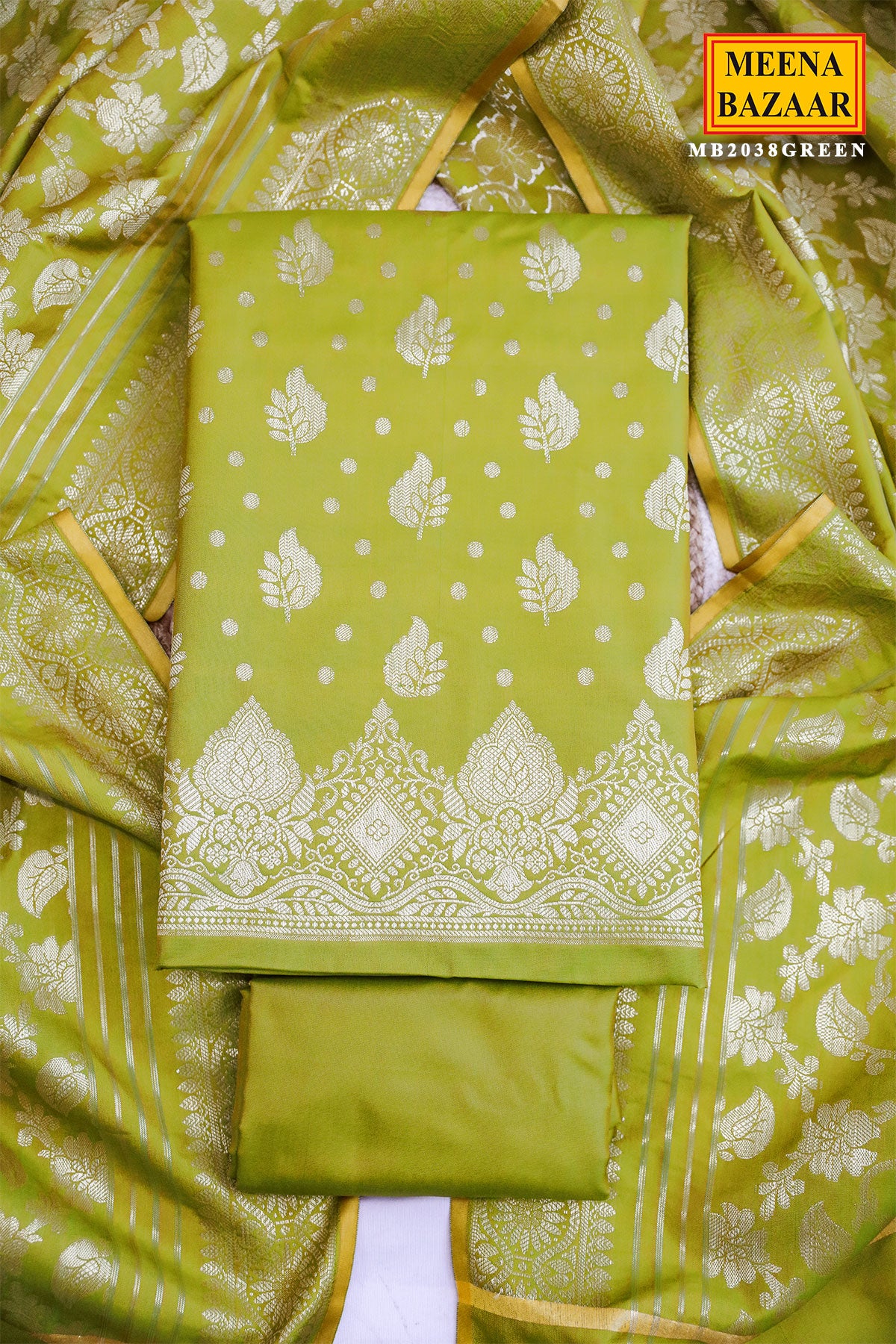 Mehndi Olive Green Chanderi Woven Silk Unstitched Suit
