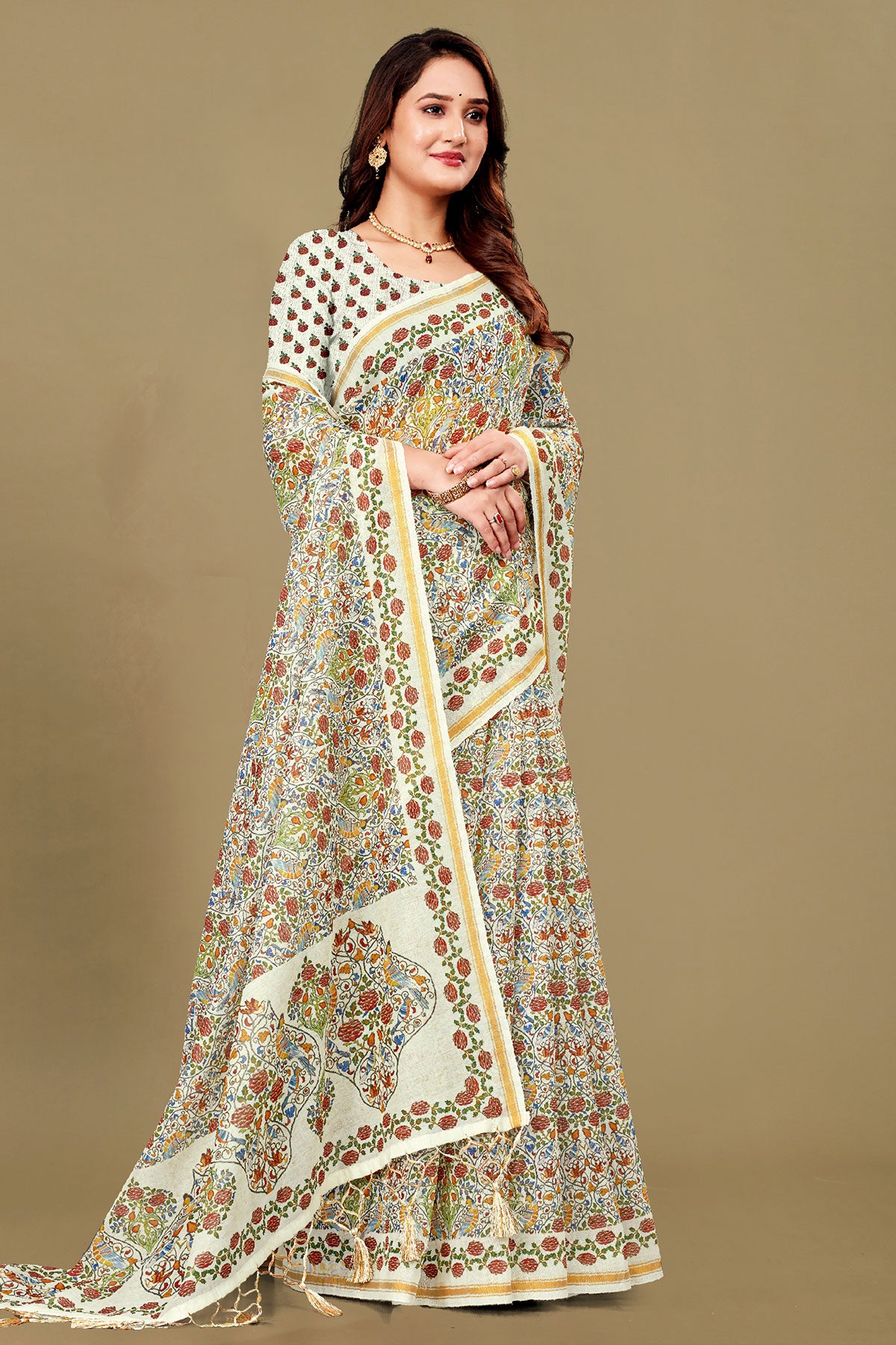Tussar Organza Printed Saree with Graceful Ethnic Appeal