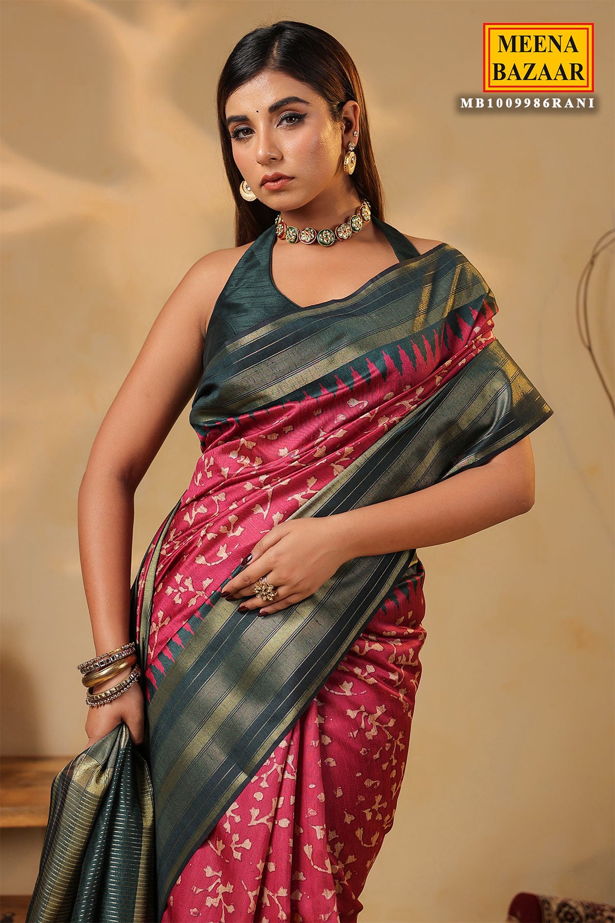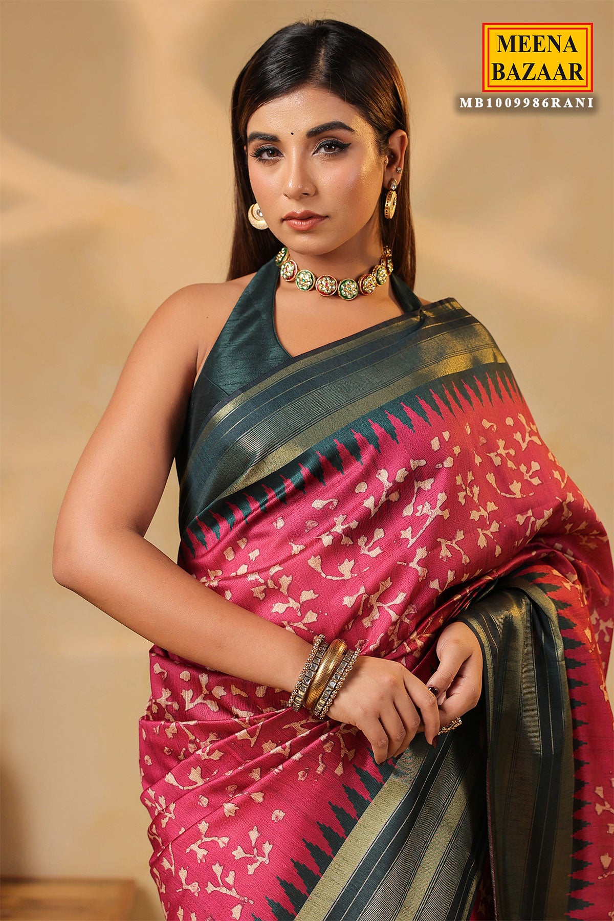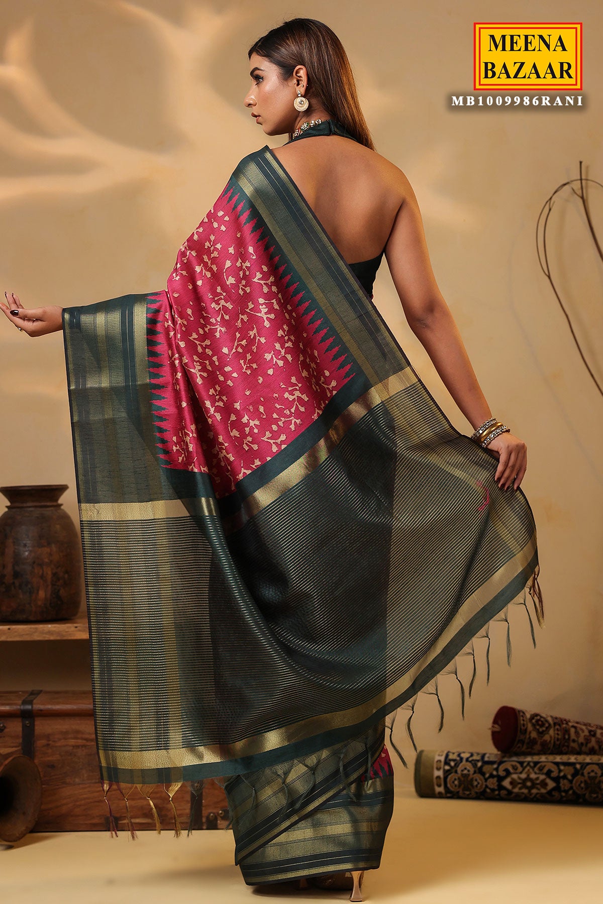 Bring vibrancy and elegance to your ethnic wardrobe with this stunning Rani Silk Weaving Saree from MeenaBazaar.com. Made from premium silk fabric, it features intricate weaving work that showcases traditional Indian craftsmanship. The bright Rani color adds a royal and festive charm, perfect for weddings, parties, and cultural celebrations. Lightweight and smooth, this saree drapes beautifully, offering both comfort and sophistication. Pair it with statement jewelry and heels to complete a refined ethnic look.
