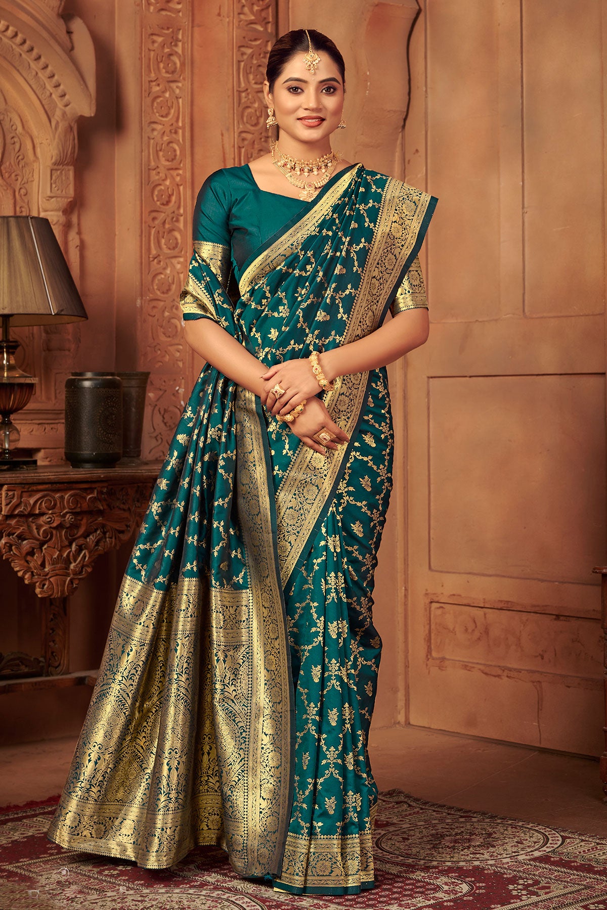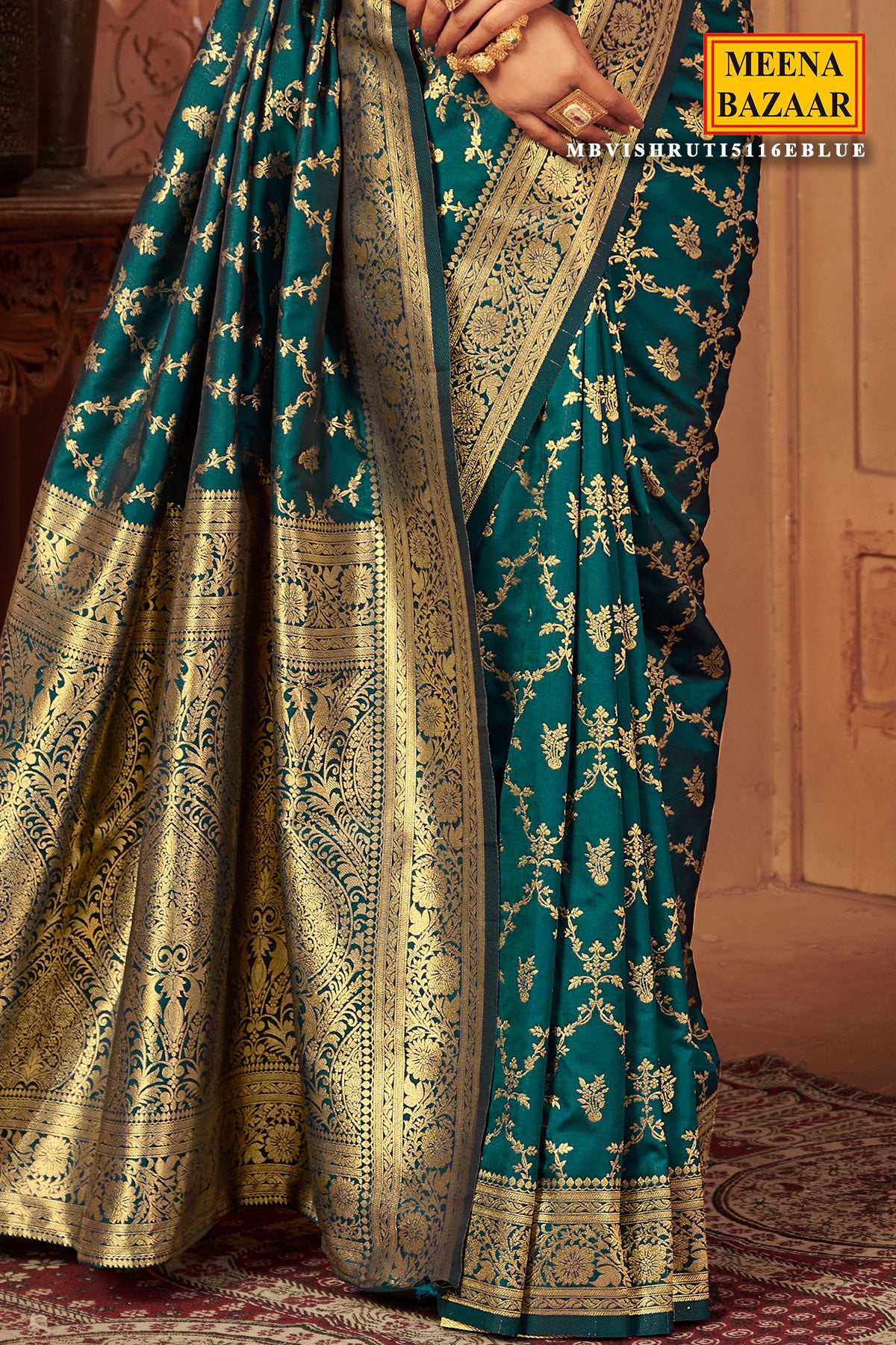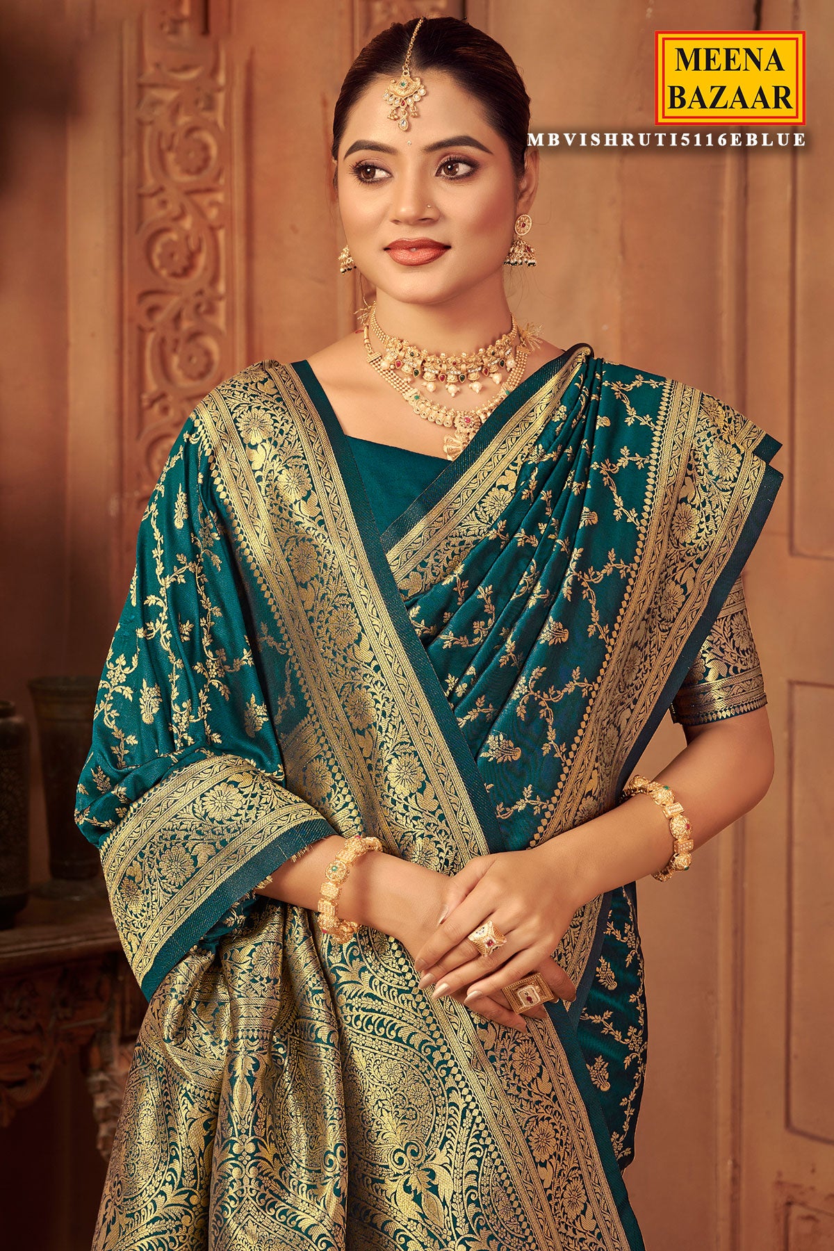 Dark Turqoise Blue Silk Weaving Saree Elegant Traditional & Festive Wear