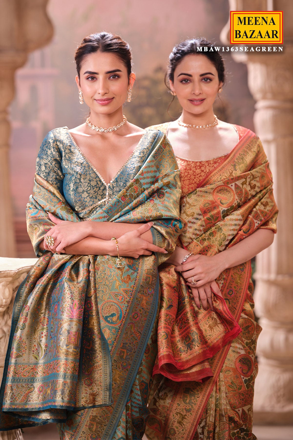 This is a Rust Silk Weaving Saree from Meena Bazaar. Crafted from premium Rust silk fabric, this saree features intricate weaving work that highlights its natural texture and timeless appeal. Known for its rich feel and subtle sheen, tussar silk adds a refined elegance, making this saree an ideal choice for weddings, festive celebrations, poojas, cultural functions, and special occasions. Lightweight yet luxurious, the rust silk weaving saree drapes beautifully, offering both comfort and sophistication. It comes with matching unstitched blouse fabric, allowing you to customise your blouse design as per your style. Pair it with traditional jewellery to complete a classic and elegant ethnic look.