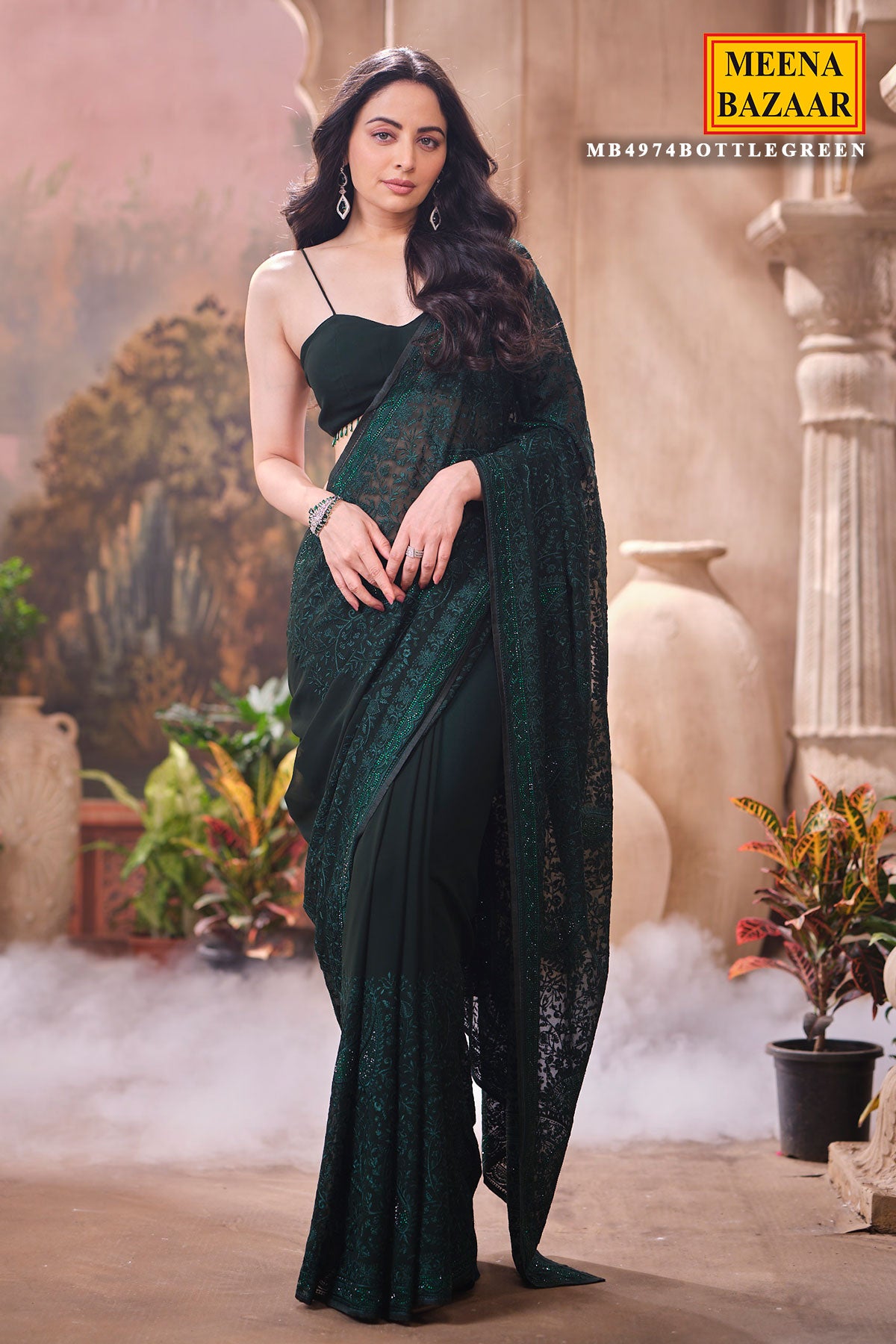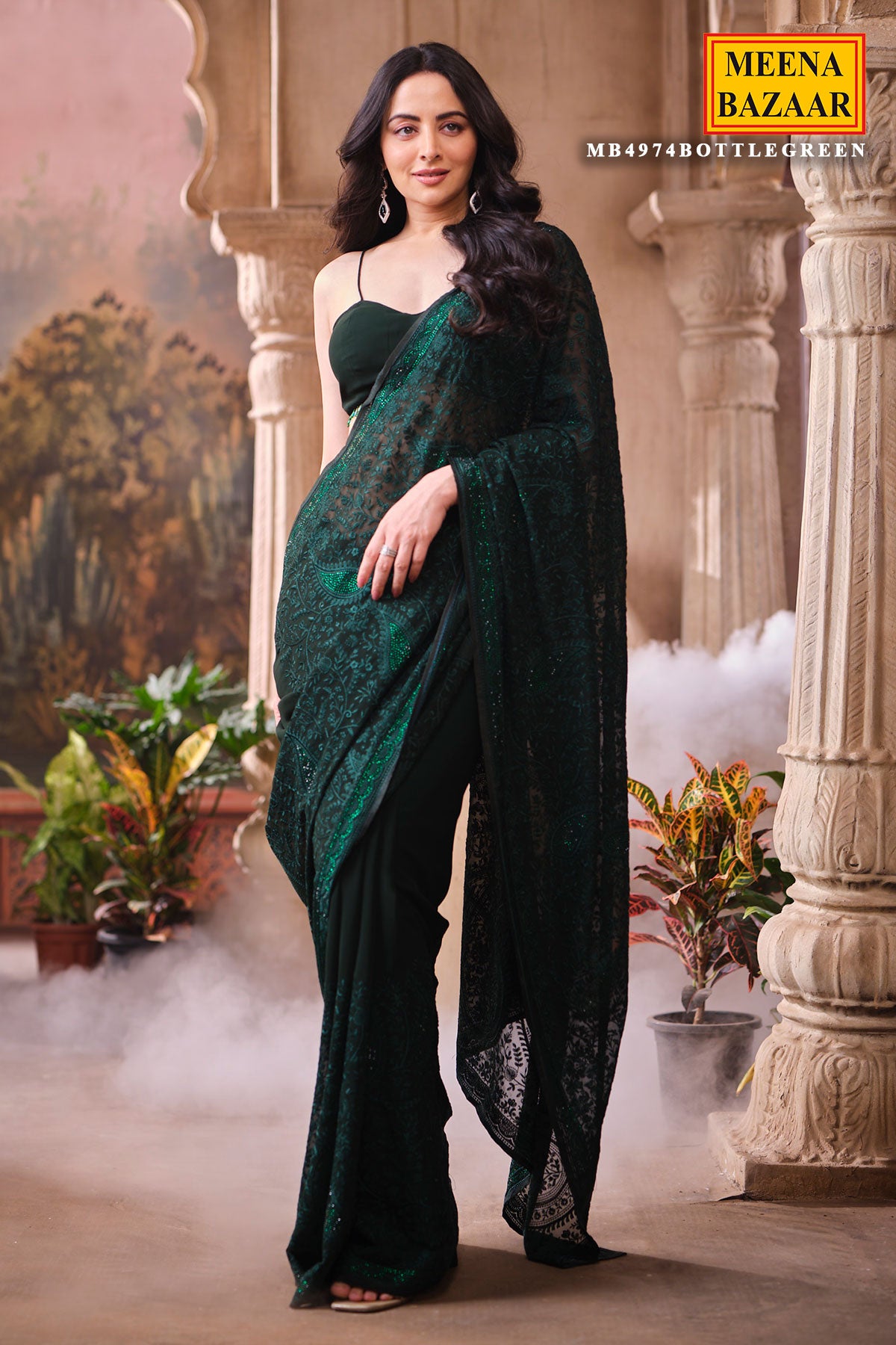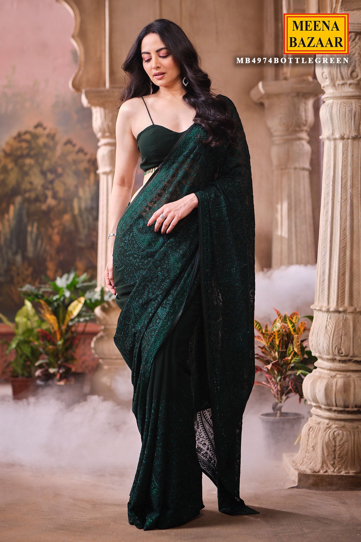 This is a Bottle Green Embroidered Georgette Saree, crafted for women who love a perfect blend of grace and modern charm. Made from lightweight and flowy georgette, this saree drapes beautifully, giving you a flattering and effortless silhouette. The delicate embroidery enhances its richness, making it an ideal choice for festive occasions, parties, weddings, receptions, and family functions. The deep bottle green shade adds a regal touch and stands out beautifully at both daytime and evening celebrations. Pair it with a complementing blouse and statement accessories for a complete, sophisticated look.