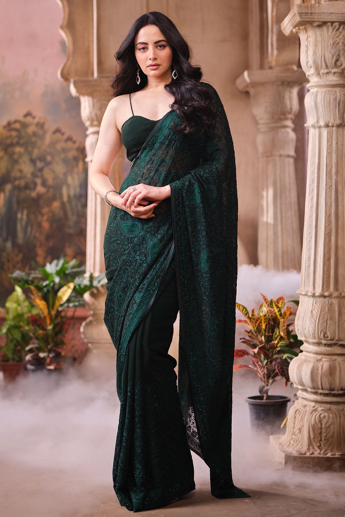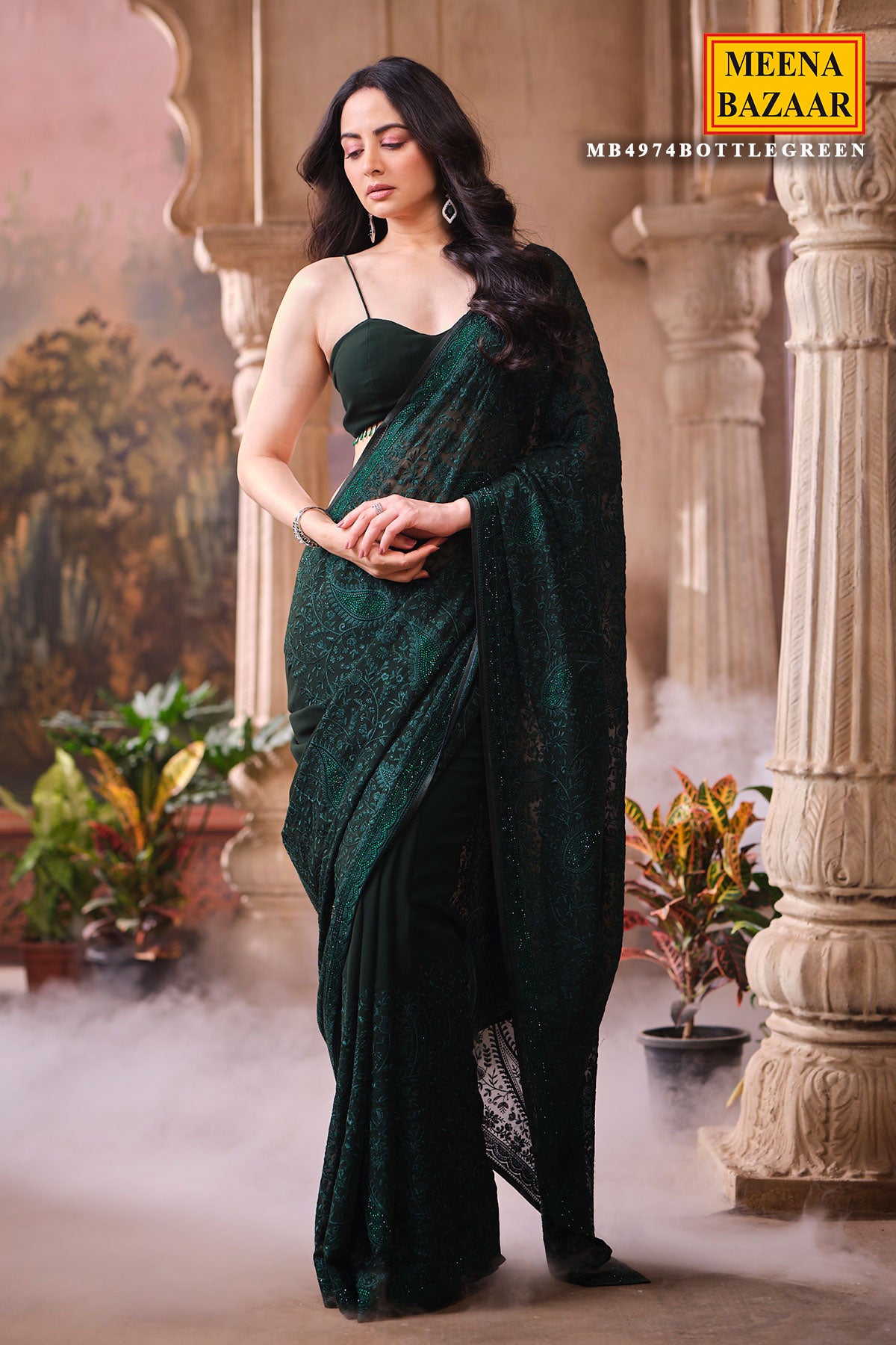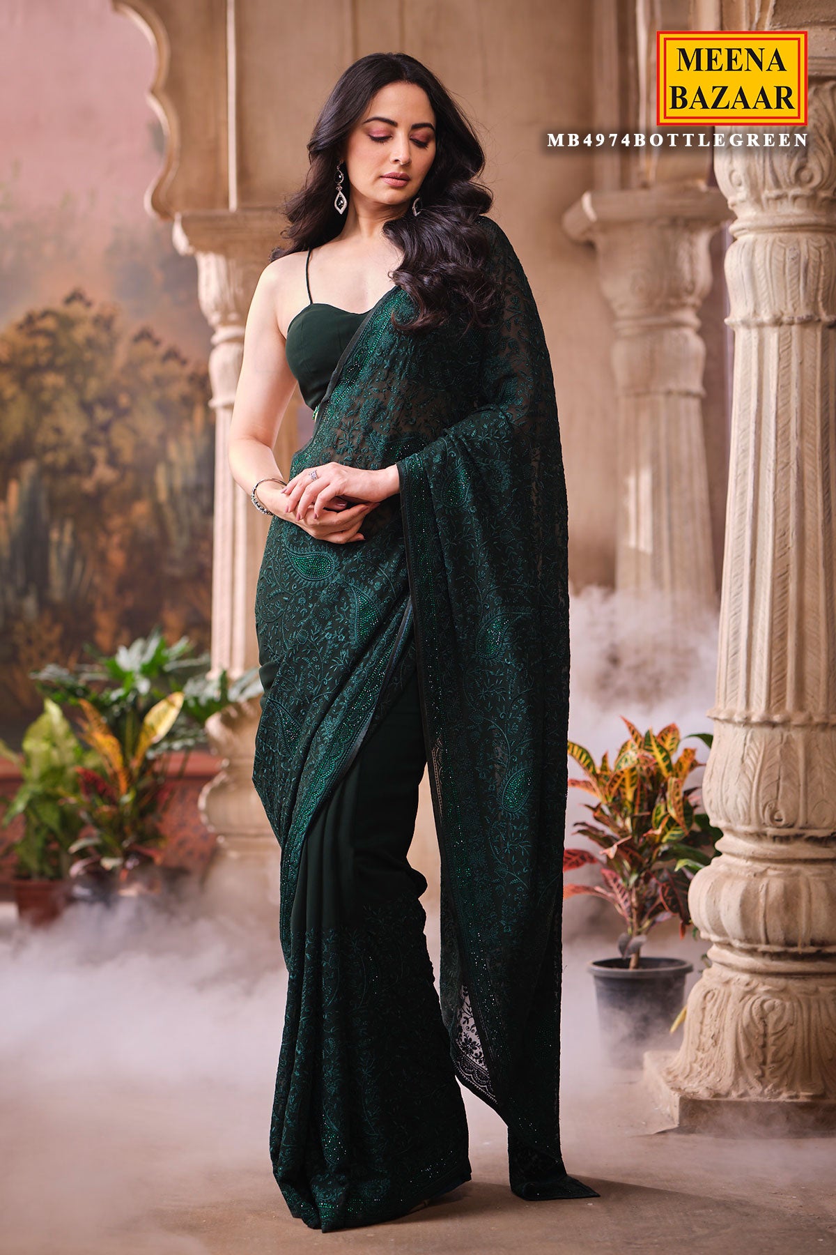 This is a Bottle Green Embroidered Georgette Saree, crafted for women who love a perfect blend of grace and modern charm. Made from lightweight and flowy georgette, this saree drapes beautifully, giving you a flattering and effortless silhouette. The delicate embroidery enhances its richness, making it an ideal choice for festive occasions, parties, weddings, receptions, and family functions. The deep bottle green shade adds a regal touch and stands out beautifully at both daytime and evening celebrations. Pair it with a complementing blouse and statement accessories for a complete, sophisticated look.