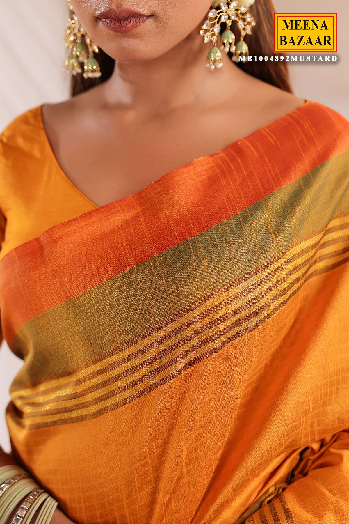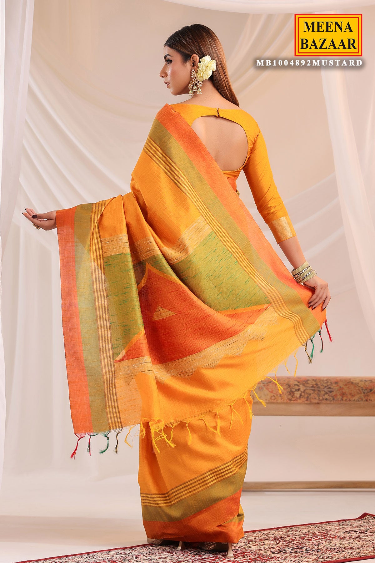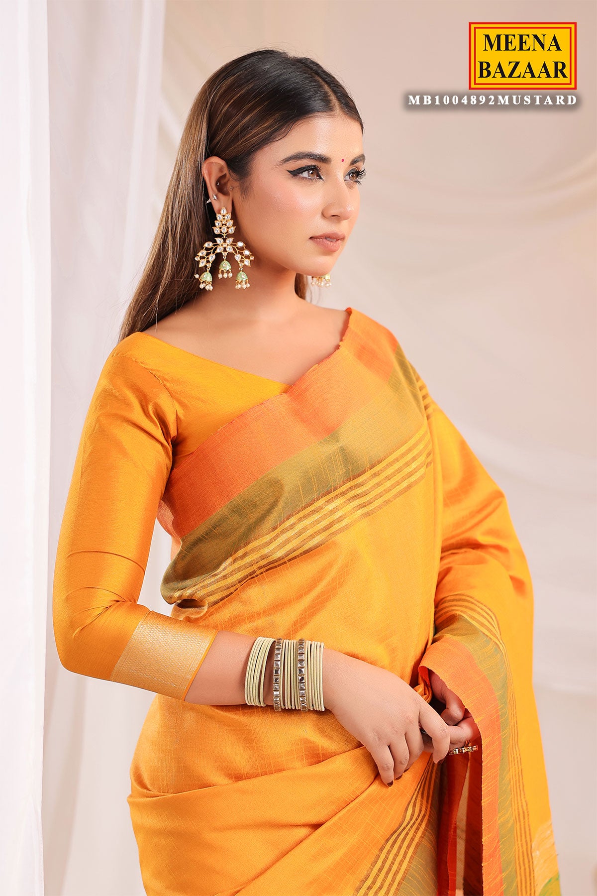 Grace your wardrobe with this stunning mustard silk saree, beautifully crafted with intricate weaving work that reflects timeless elegance. The rich silk fabric offers a luxurious drape and soft feel, making it perfect for festive occasions, weddings, and special gatherings. Its vibrant mustard hue adds a regal charm, while the detailed weave enhances its classic appeal. Pair it with statement jewelry to complete a sophisticated ethnic look.
