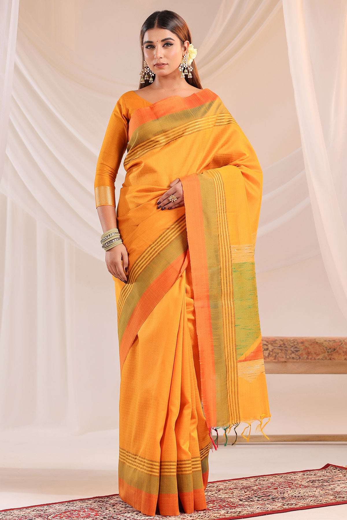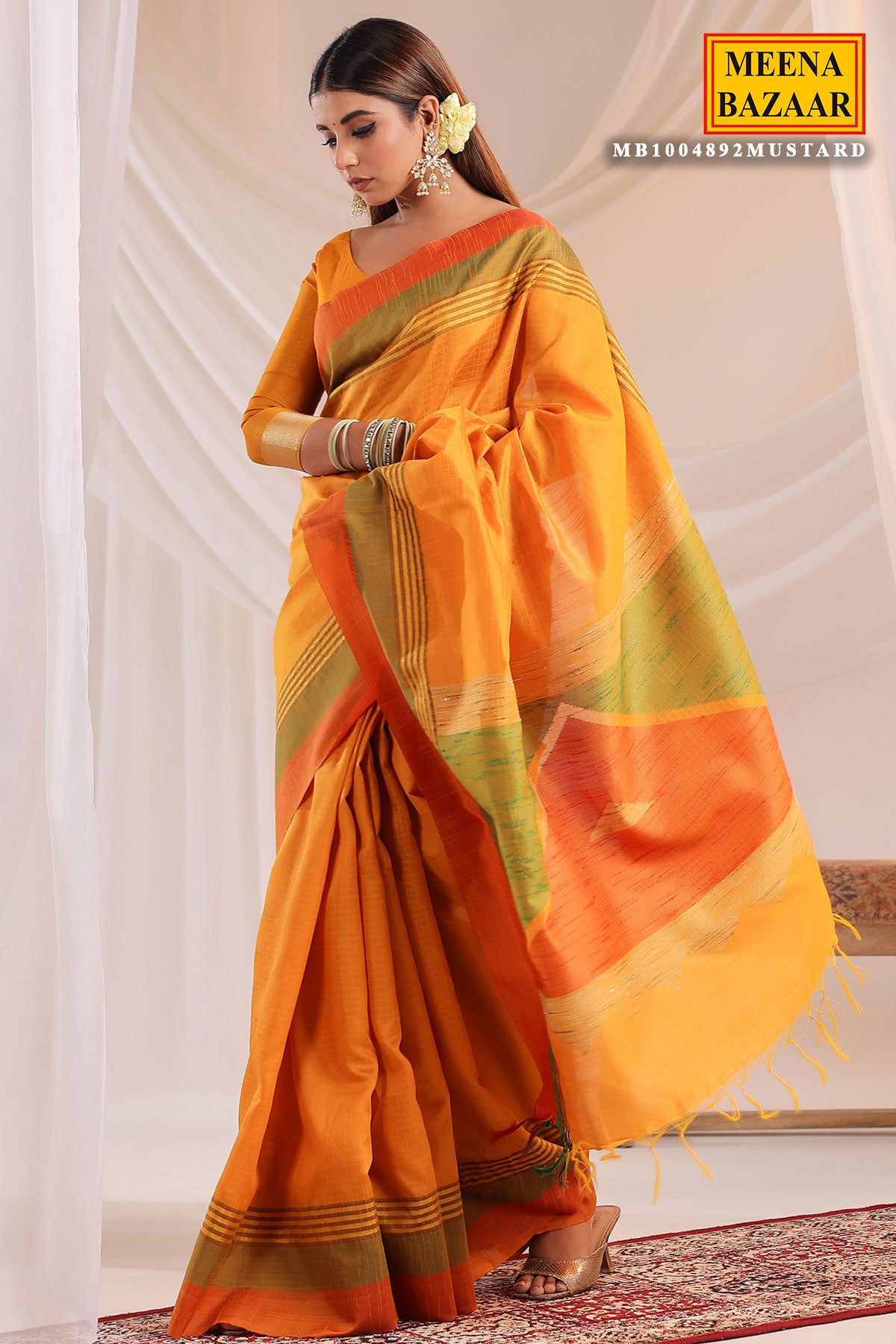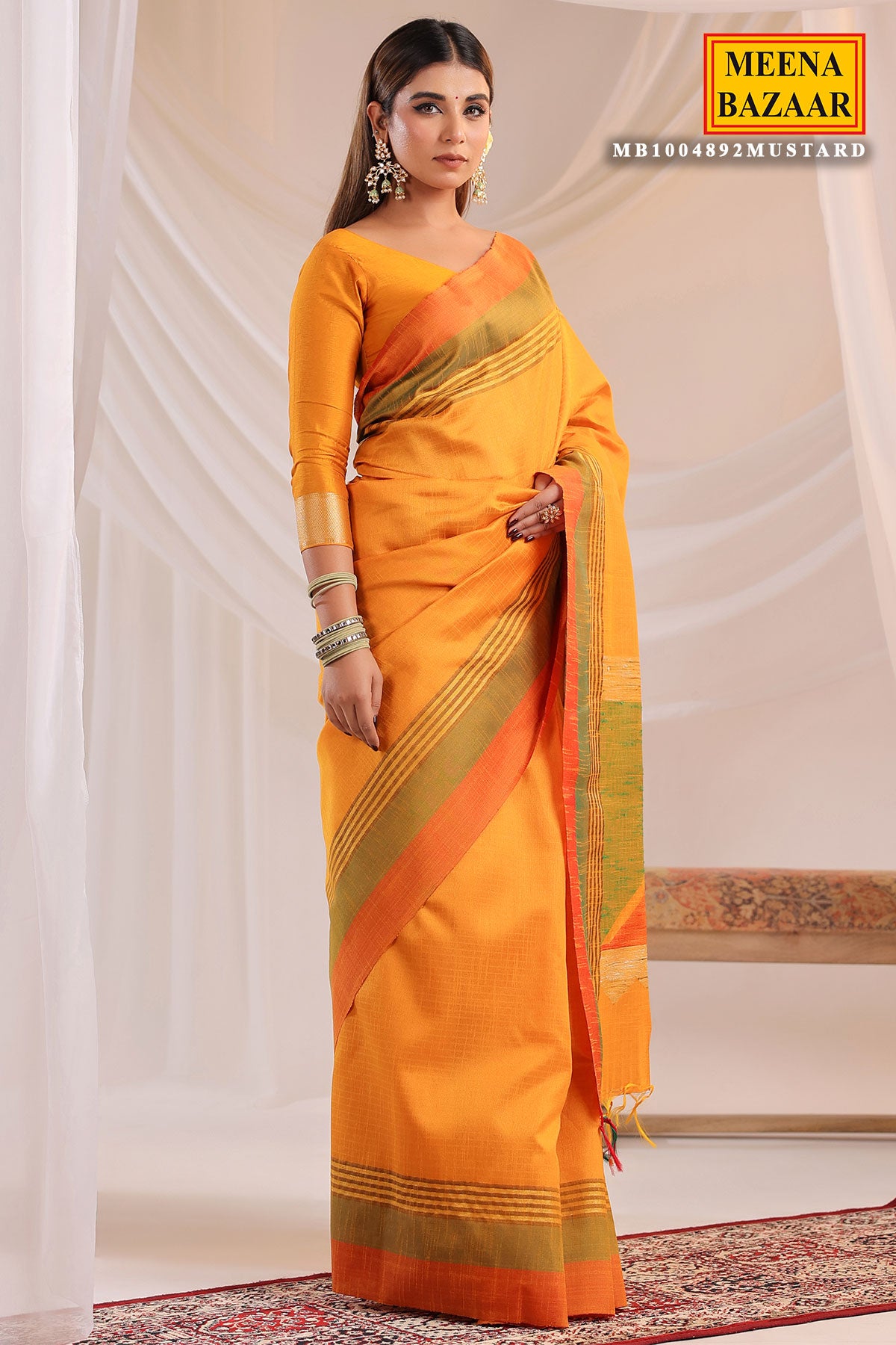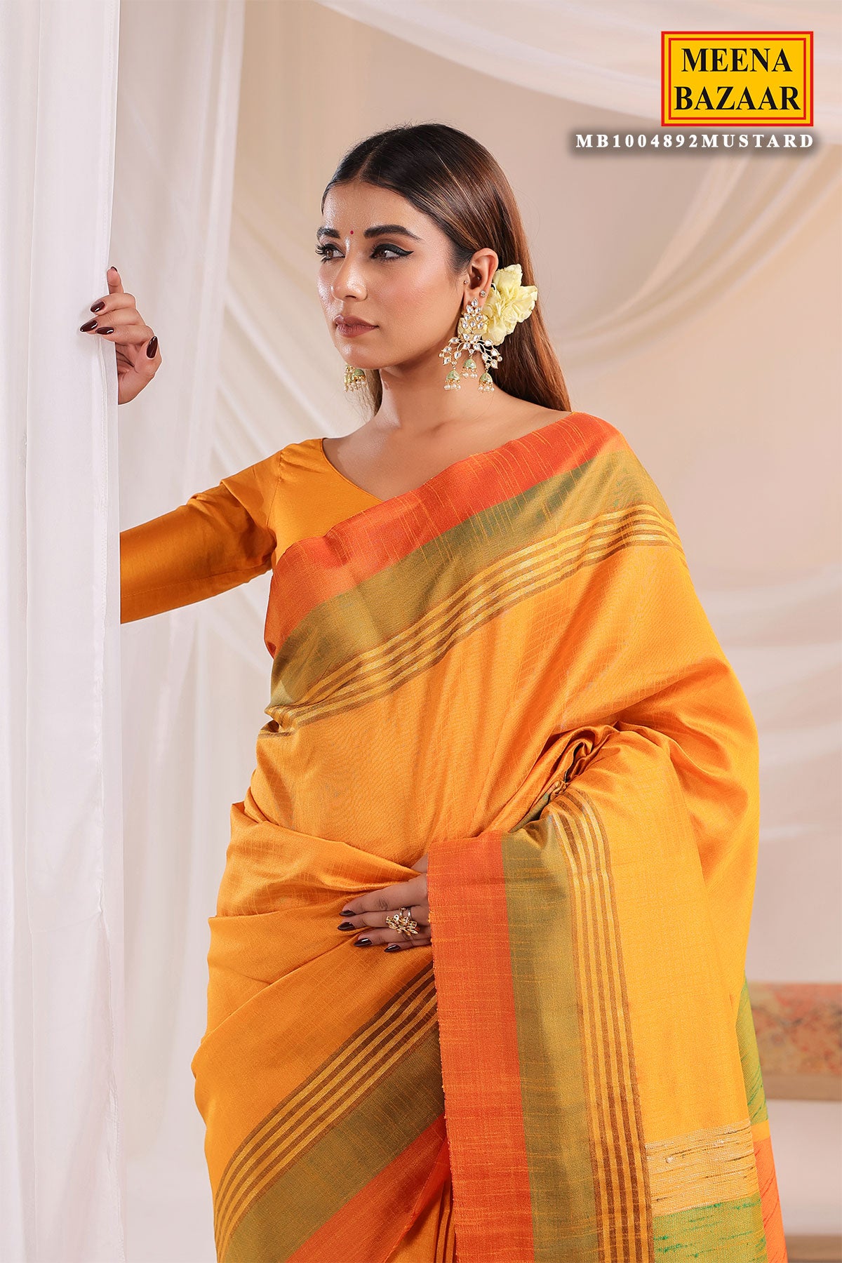 Grace your wardrobe with this stunning mustard silk saree, beautifully crafted with intricate weaving work that reflects timeless elegance. The rich silk fabric offers a luxurious drape and soft feel, making it perfect for festive occasions, weddings, and special gatherings. Its vibrant mustard hue adds a regal charm, while the detailed weave enhances its classic appeal. Pair it with statement jewelry to complete a sophisticated ethnic look.