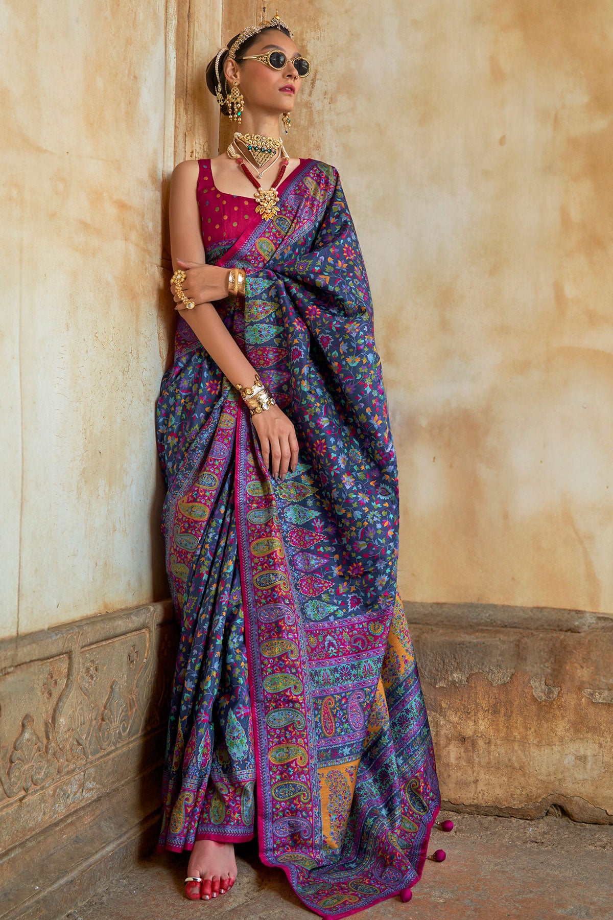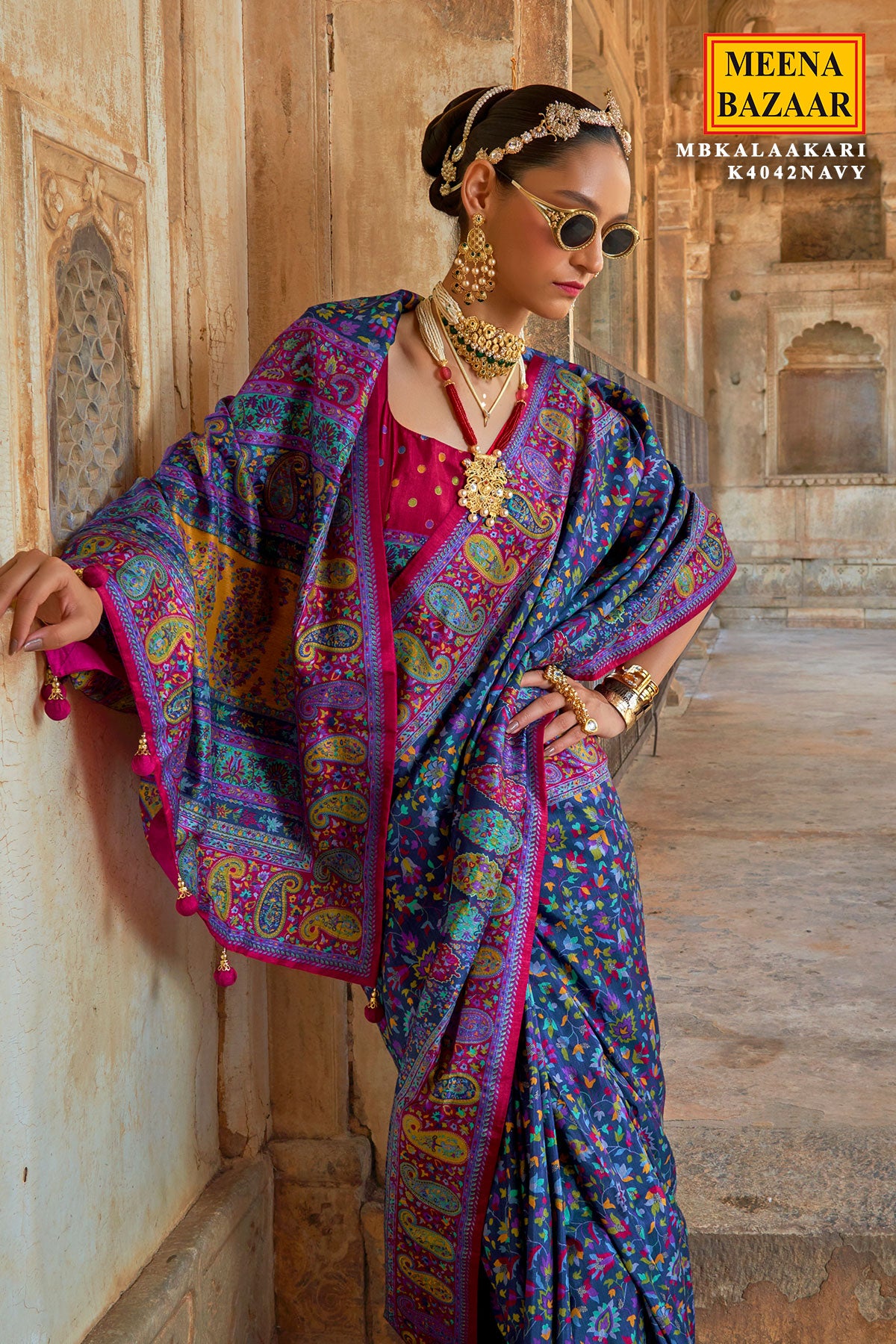 This Navy Silk Printed Saree showcases the natural beauty and rich texture of authentic navy silk. Crafted from premium navy silk fabric, this saree features elegant printed motifs that enhance its earthy and graceful appeal. Known for its lightweight feel and subtle sheen, this printed navy silk saree for women offers a comfortable drape while maintaining a luxurious look. Perfect for festive occasions, cultural functions, daytime events, and elegant gatherings, this saree reflects timeless Indian craftsmanship. The classic printed design makes it easy to style with traditional jewelry for a refined ethnic ensemble. A must-have ethnic wear navy silk saree, ideal for celebrations, special occasions, and thoughtful gifting.