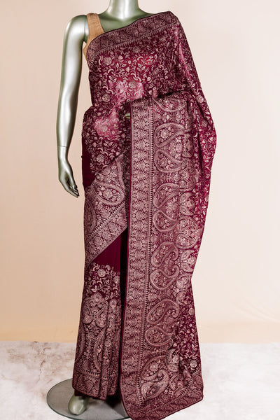 Elevate your ethnic wardrobe this season with the Wine Georgette Sequins Embroidered Sharara Suit, representing a smart investment choice. Meticulously crafted from the finest flowy georgette fabric, this sharara suit boasts exquisite embellishments done in sequin embroidery, enhancing its overall appeal. This ensemble comes complete with a matching sharara bottom and a gracefully flowing mukaish embroidered dupatta. Style Tip: To achieve a stunning look, pair this set with ethnic dangling earrings, ensuring you stand out at any gathering or event.