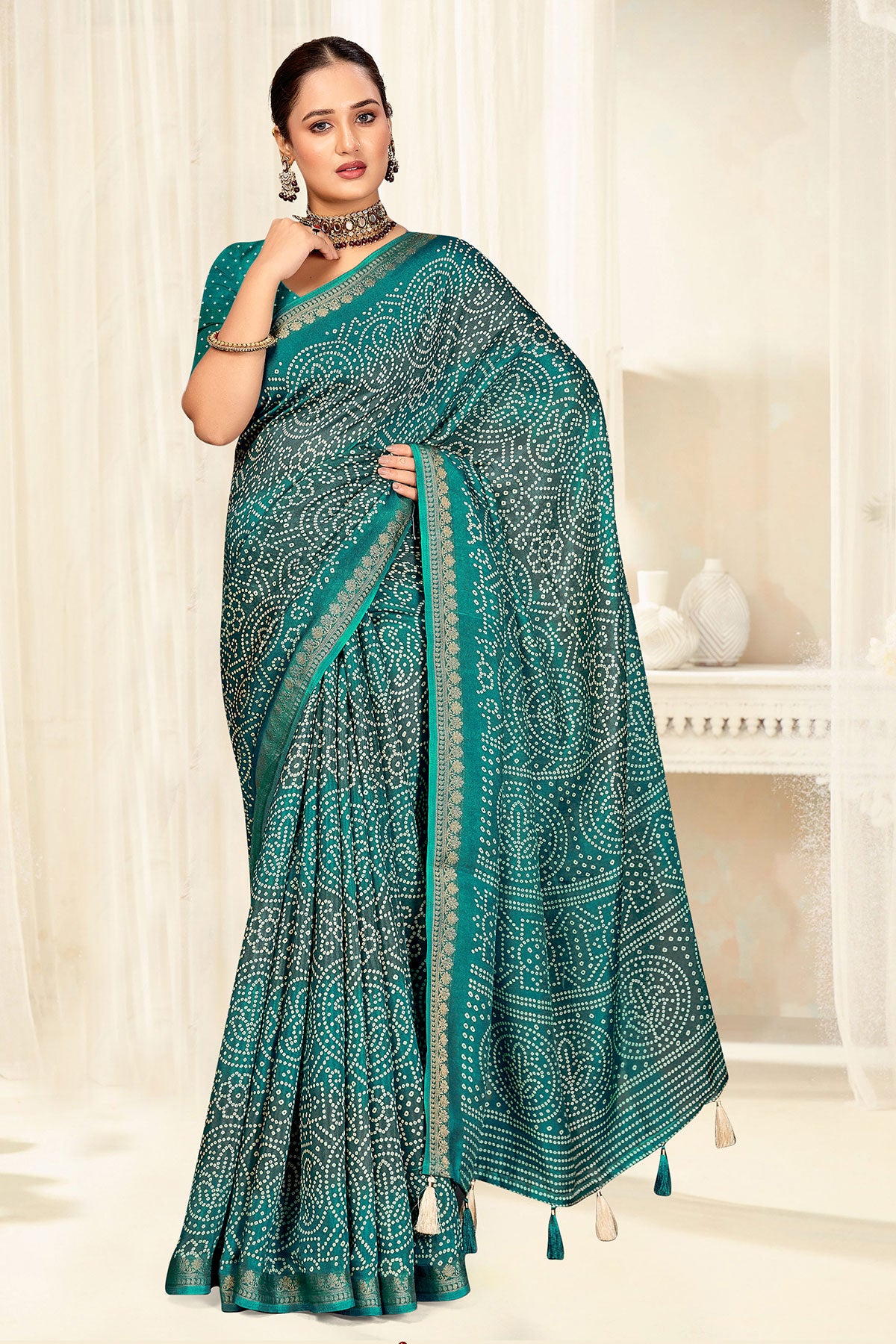 Firozi Crepe silk saree