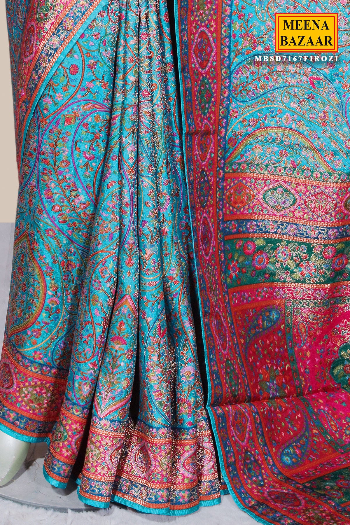 Firozi Silk Weaving Saree Traditional Festive Wear