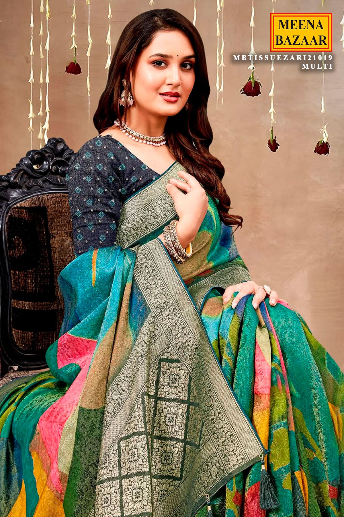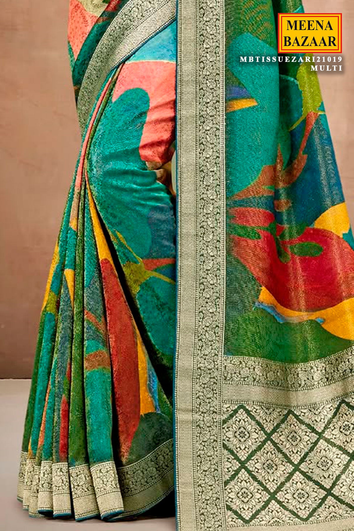Multi Color Tissue Zari Silk Printed Saree Festive Wear