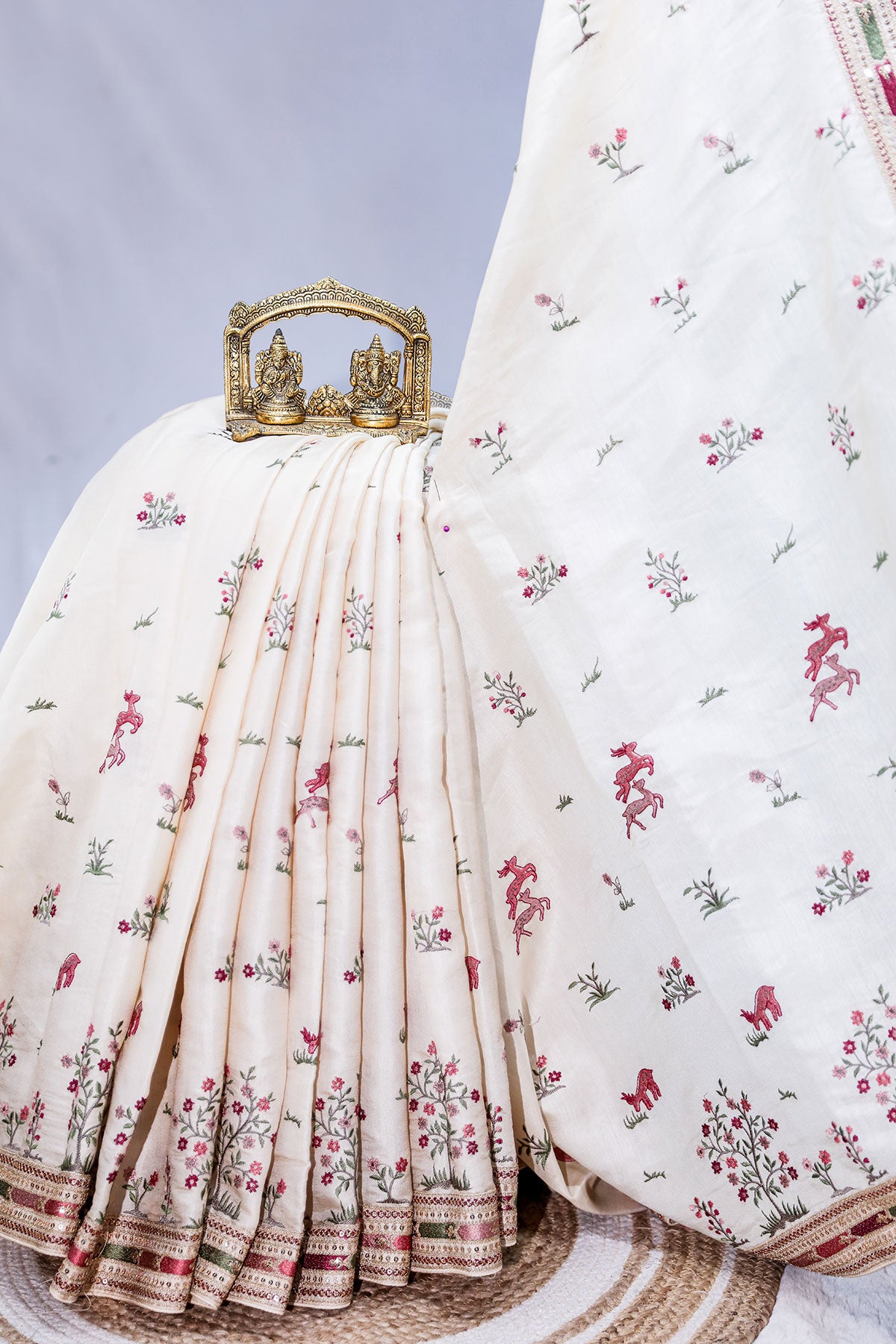 Tussar Silk Saree with Thread & Resham Embroidery – Elegant Traditional Wear
