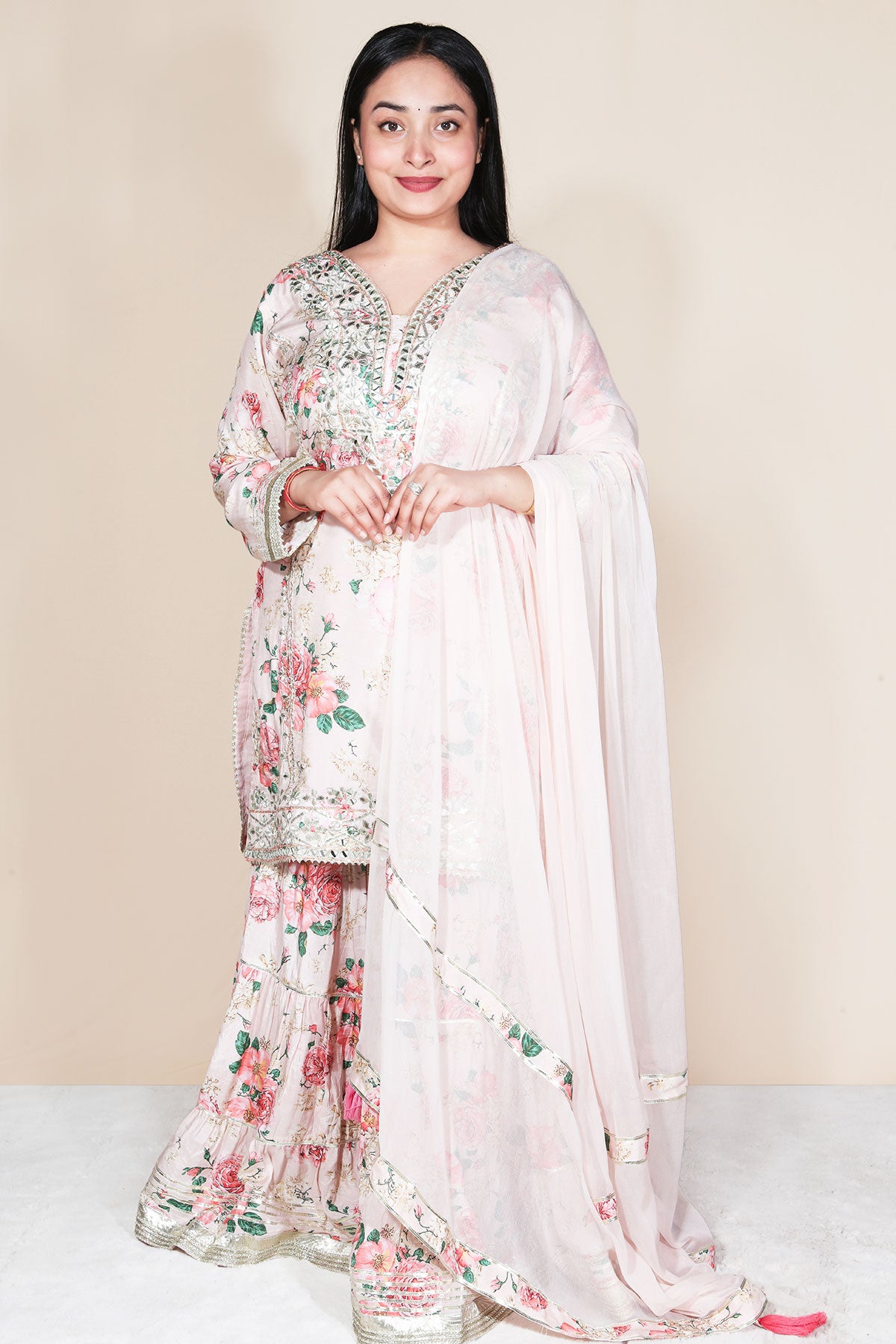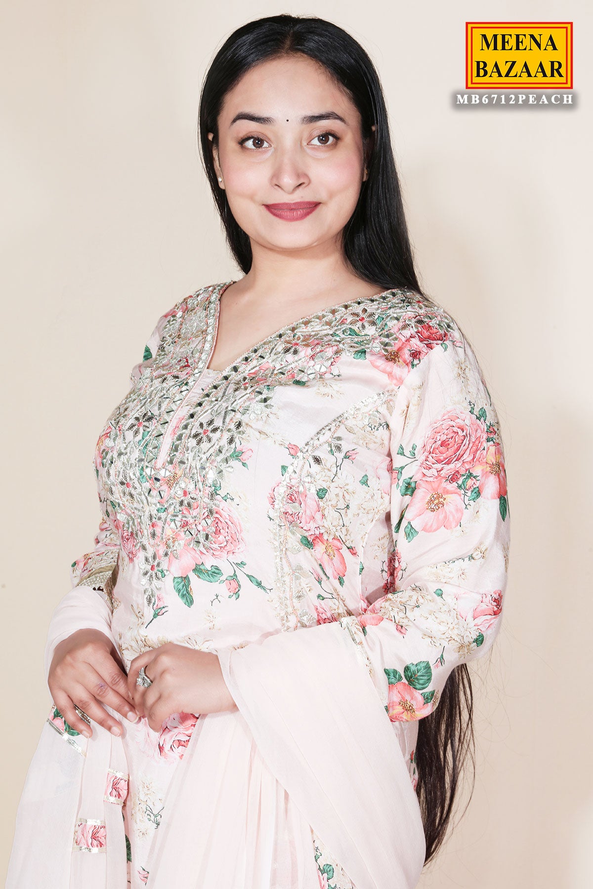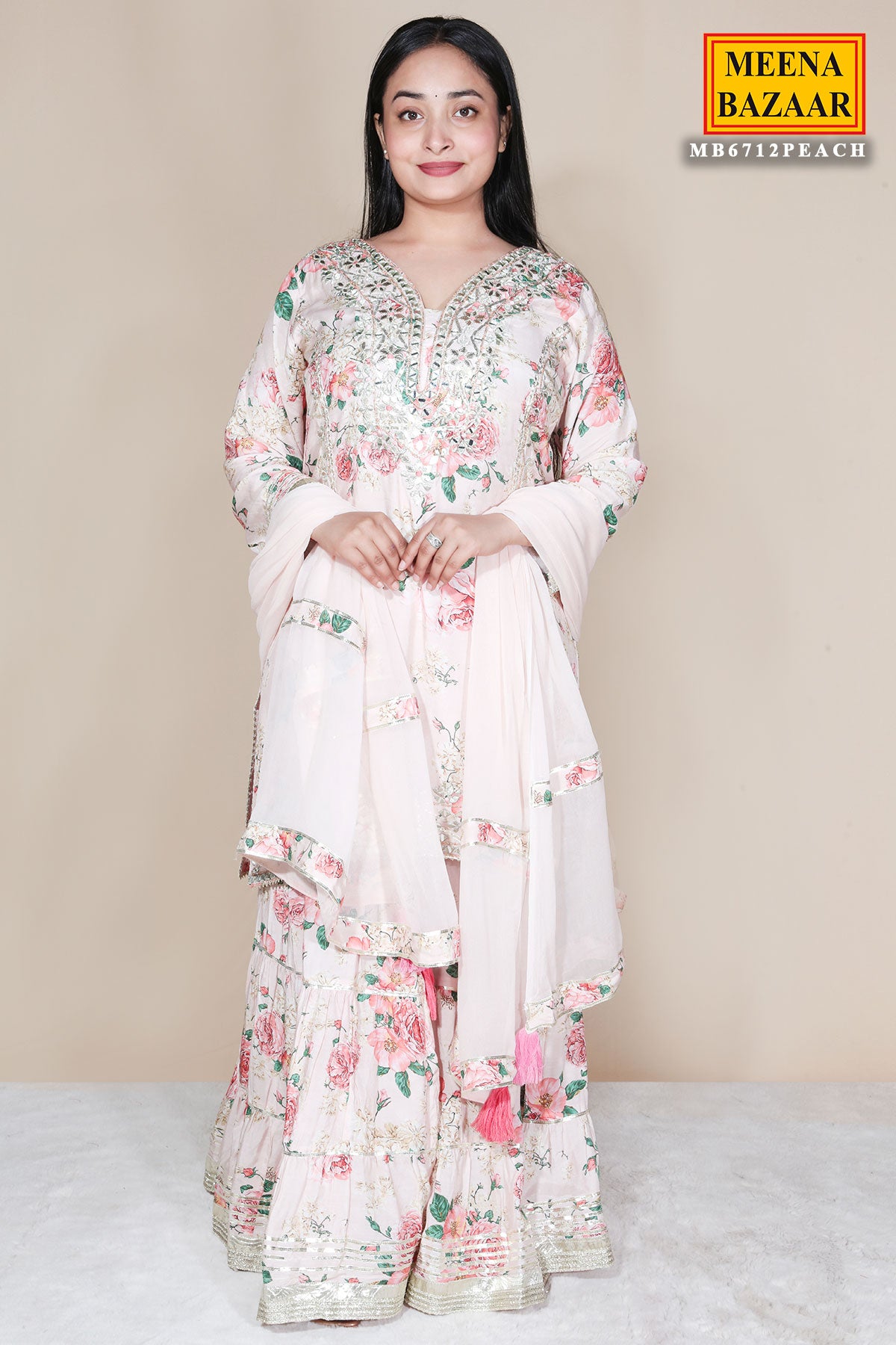 Peach Ready Made Suit with Gota Patti Detailing