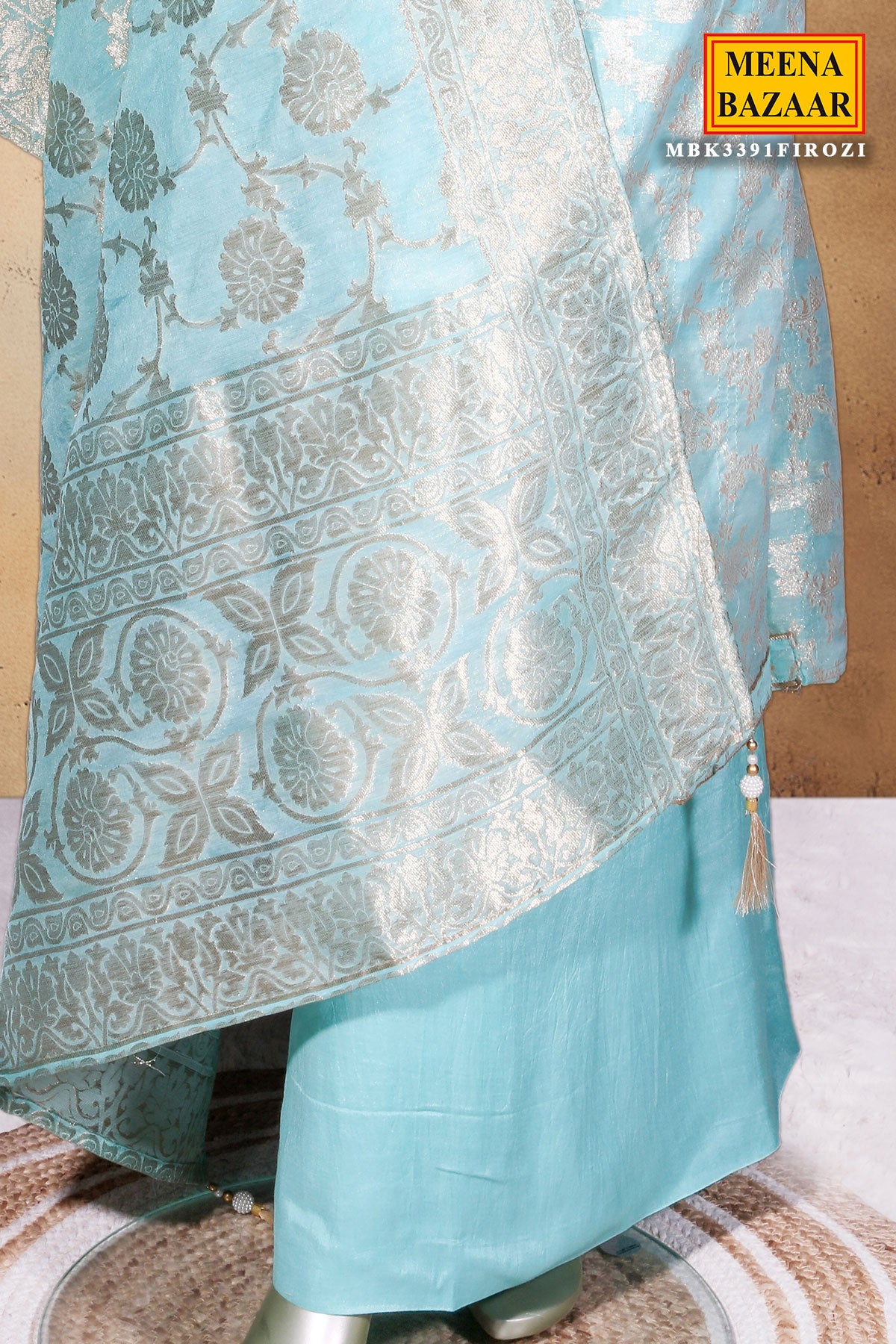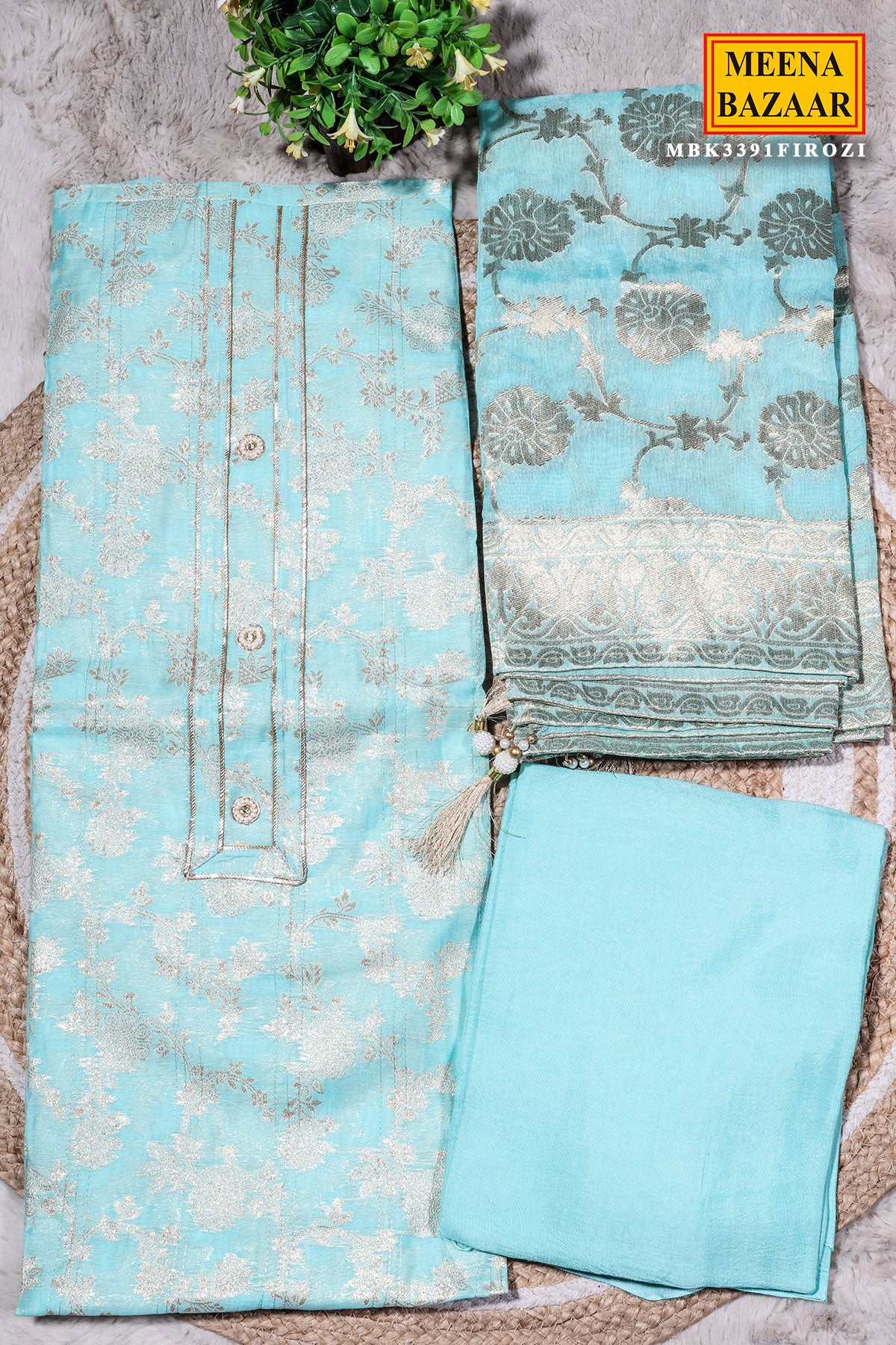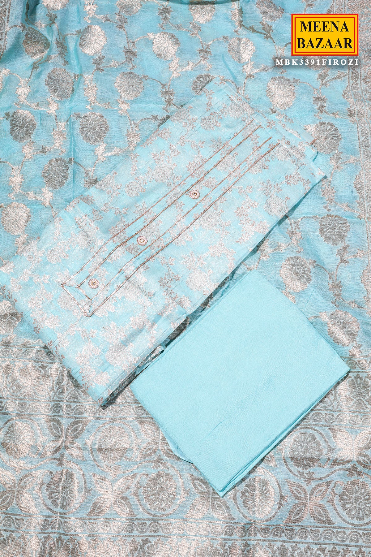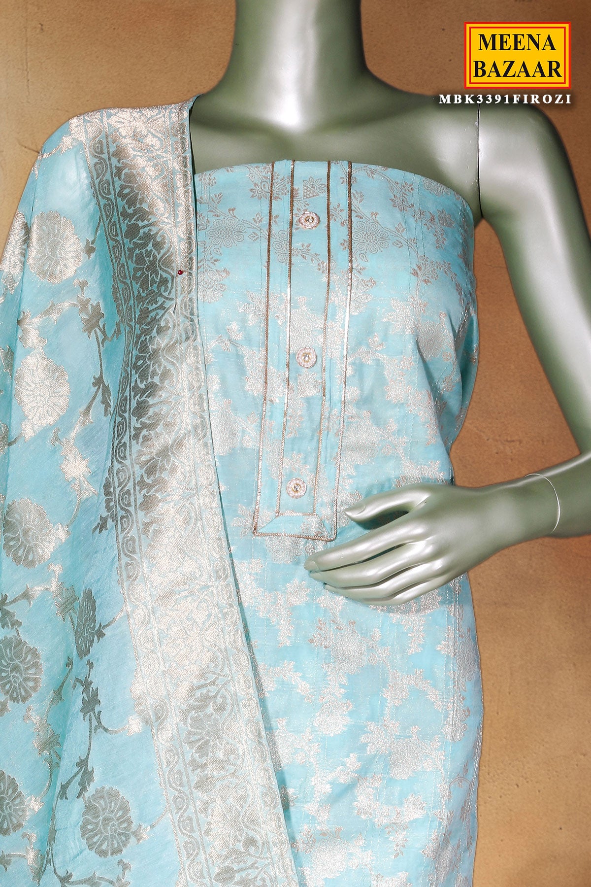 Elevate your ethnic style with this graceful Firozi Chanderi Embroidered Unstitched Suit from Meena Bazaar. Designed in lightweight Chanderi fabric, this suit offers a luxurious texture and breathable comfort. The subtle embroidery detailing enhances its feminine appeal, making it suitable for festive gatherings, office wear, and daytime occasions. The coordinated dupatta completes the look beautifully, while the unstitched format allows you to customize the fit as per your preference.