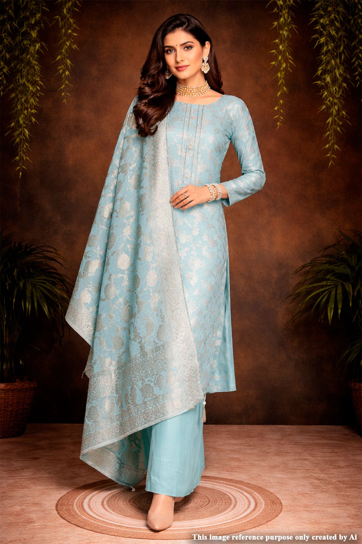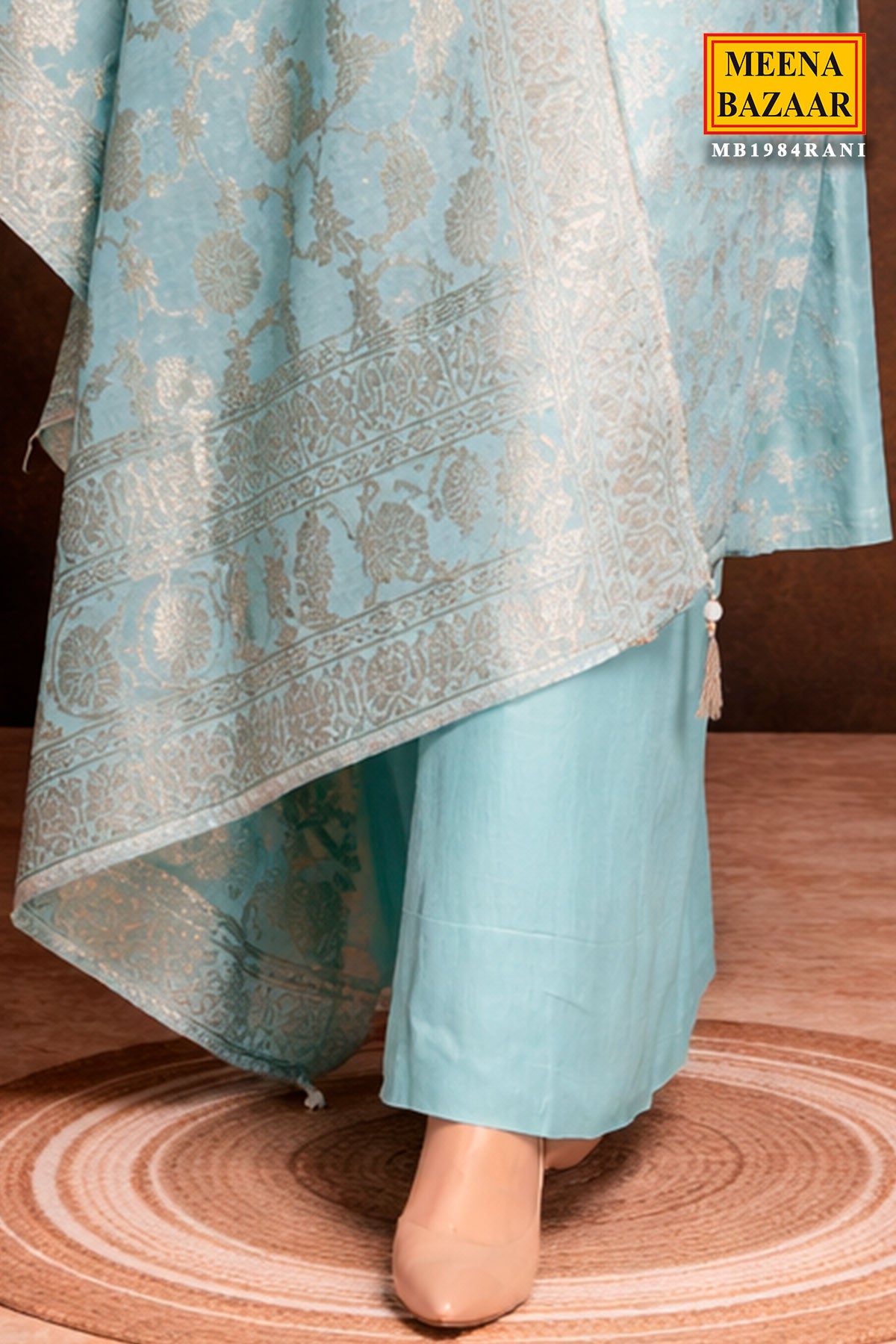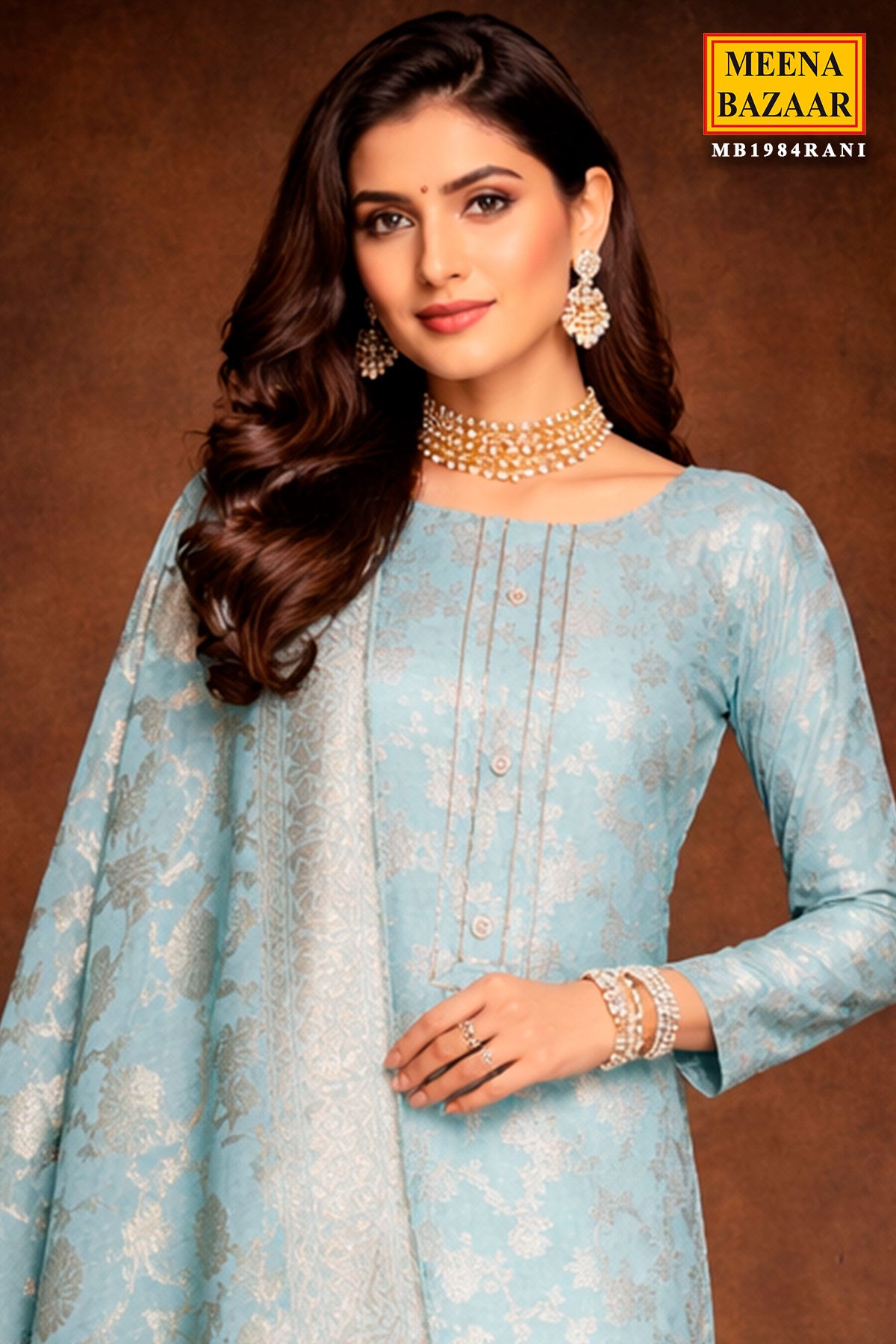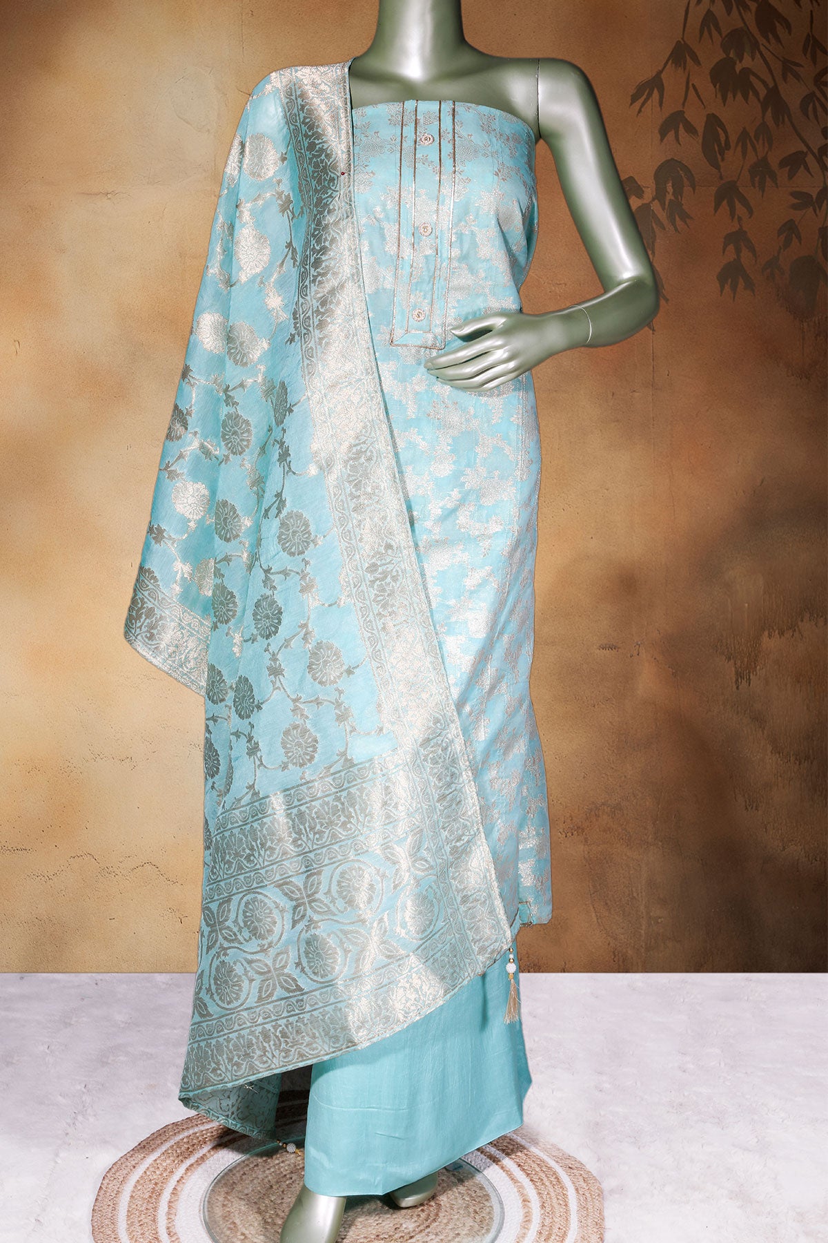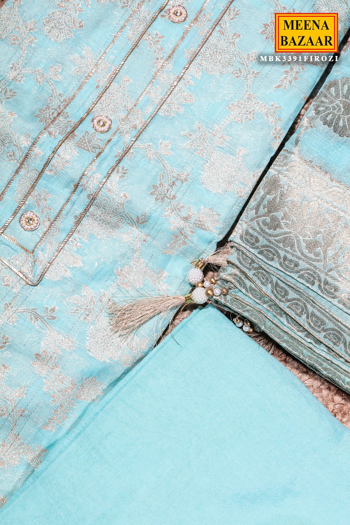 Elevate your ethnic style with this graceful Firozi Chanderi Embroidered Unstitched Suit from Meena Bazaar. Designed in lightweight Chanderi fabric, this suit offers a luxurious texture and breathable comfort. The subtle embroidery detailing enhances its feminine appeal, making it suitable for festive gatherings, office wear, and daytime occasions. The coordinated dupatta completes the look beautifully, while the unstitched format allows you to customize the fit as per your preference.