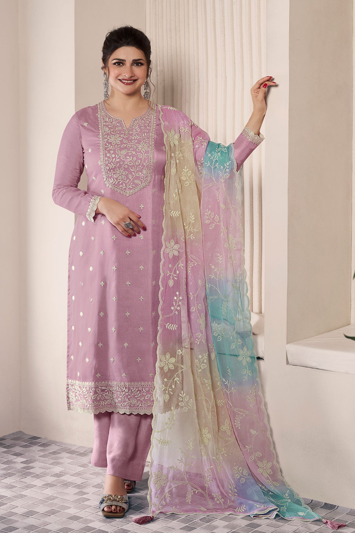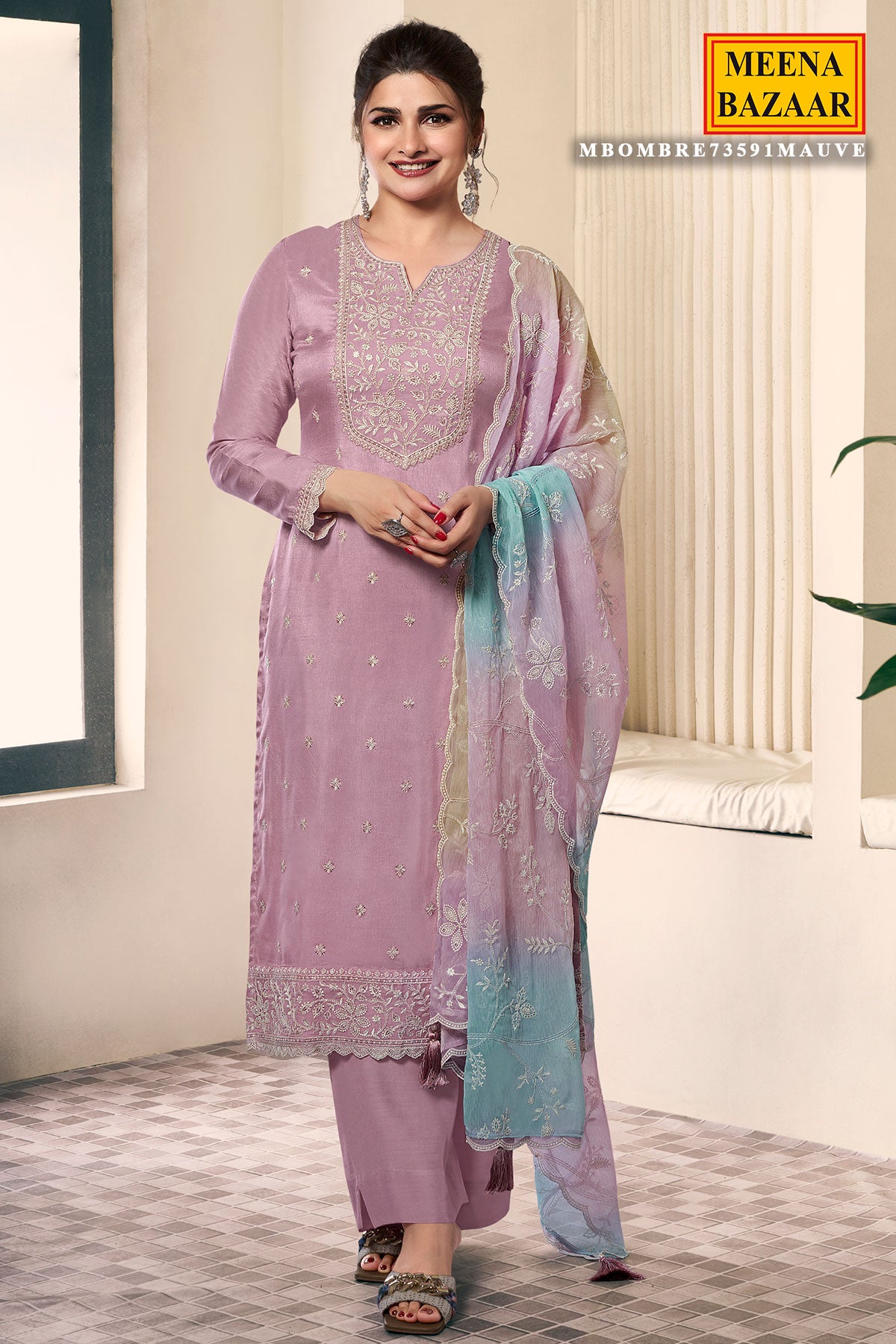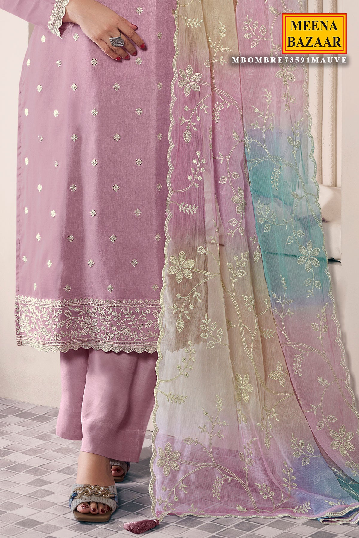 Elevate your ethnic wardrobe with this elegant unstitched suit set crafted in luxurious silk fabric. Featuring intricate embroidery work, this suit comes in a graceful mauve shade that adds a touch of sophistication and charm. The unstitched pattern allows you to customize the fit and style as per your preference, making it perfect for festive occasions, celebrations, and special gatherings.