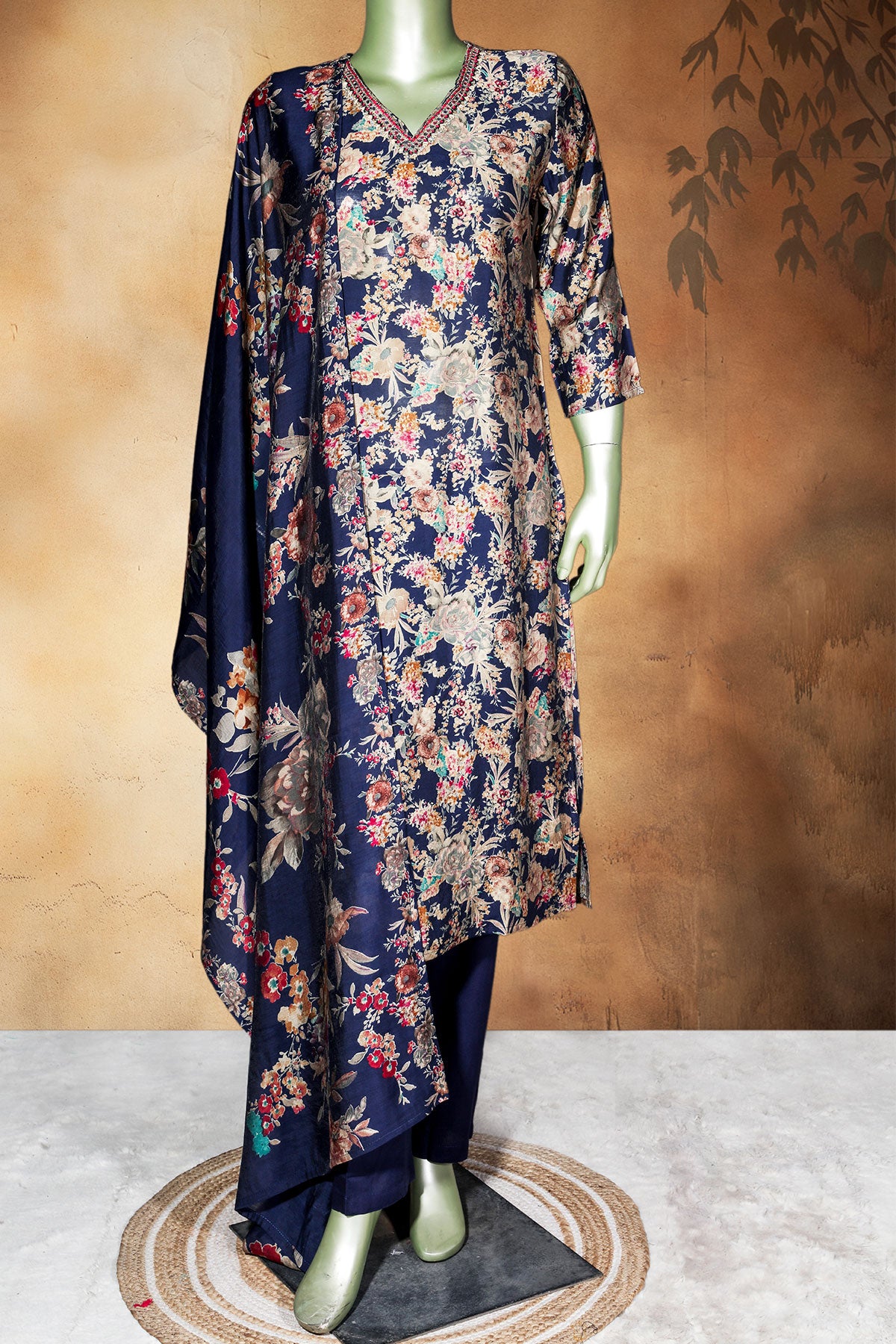 Upgrade your ethnic wardrobe with this sophisticated Navy Ready Made Suit, crafted in premium Maslin fabric for a soft, breathable, and comfortable feel. The outfit is beautifully highlighted with delicate neck embroidery, adding a touch of elegance and refined charm. Perfect for festive occasions, office wear, or intimate gatherings, this suit blends style, comfort, and grace effortlessly.