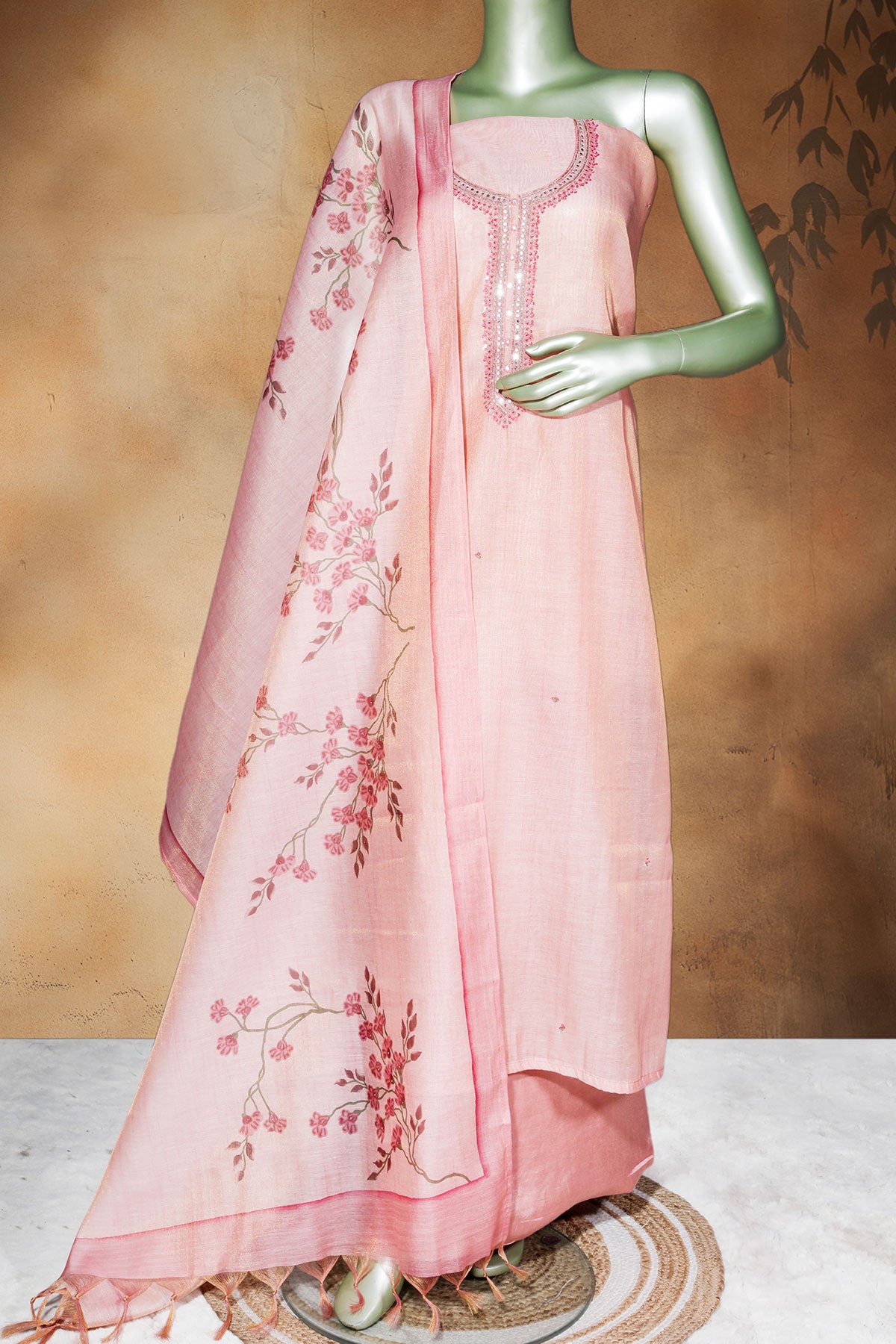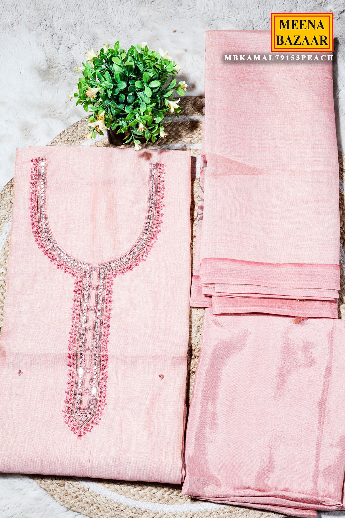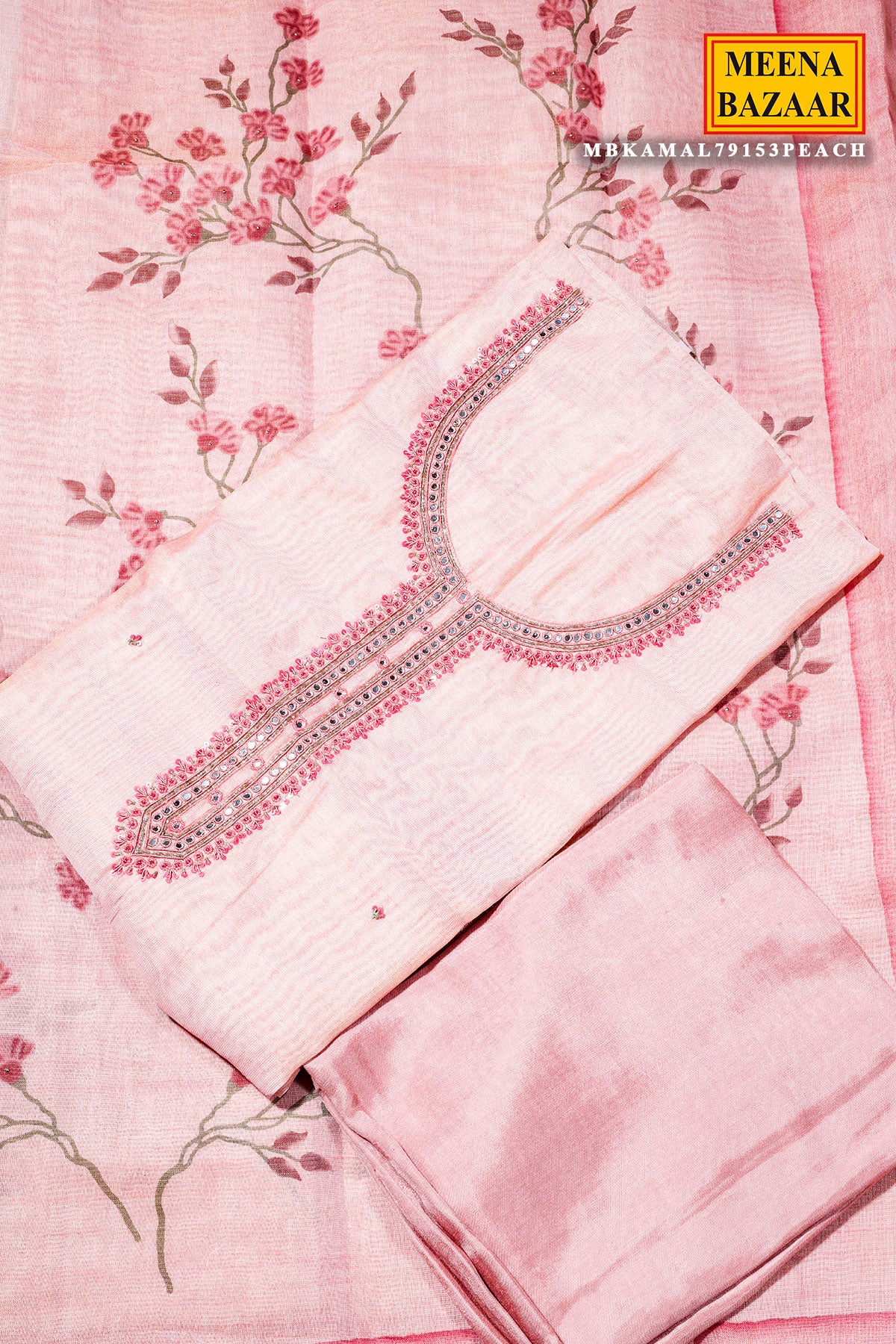 Peach Cotton Unstitched Suit with Elegant Embroidery