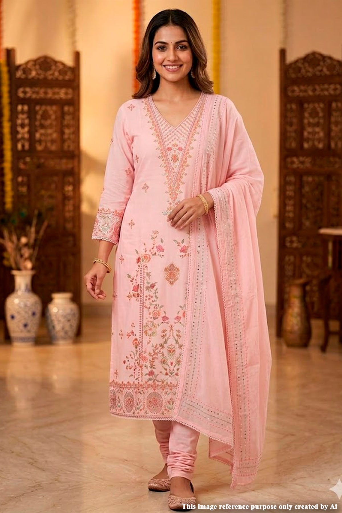 Whether you're dressing for a family gathering, festive occasion, or office ethnic day, this suit delivers effortless charm with modern elegance. Pair it with statement earrings and traditional footwear for a complete ethnic look.