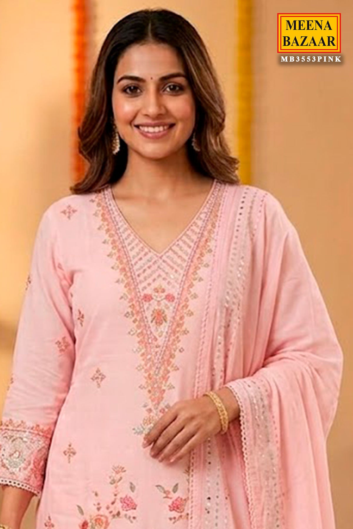 Add a touch of graceful elegance to your ethnic wardrobe with this beautiful Pink Cotton Unstitched Suit from Meena Bazaar. Crafted from premium quality cotton fabric, this ensemble offers a perfect blend of comfort and sophistication, making it ideal for both daytime festivities and casual celebrations.