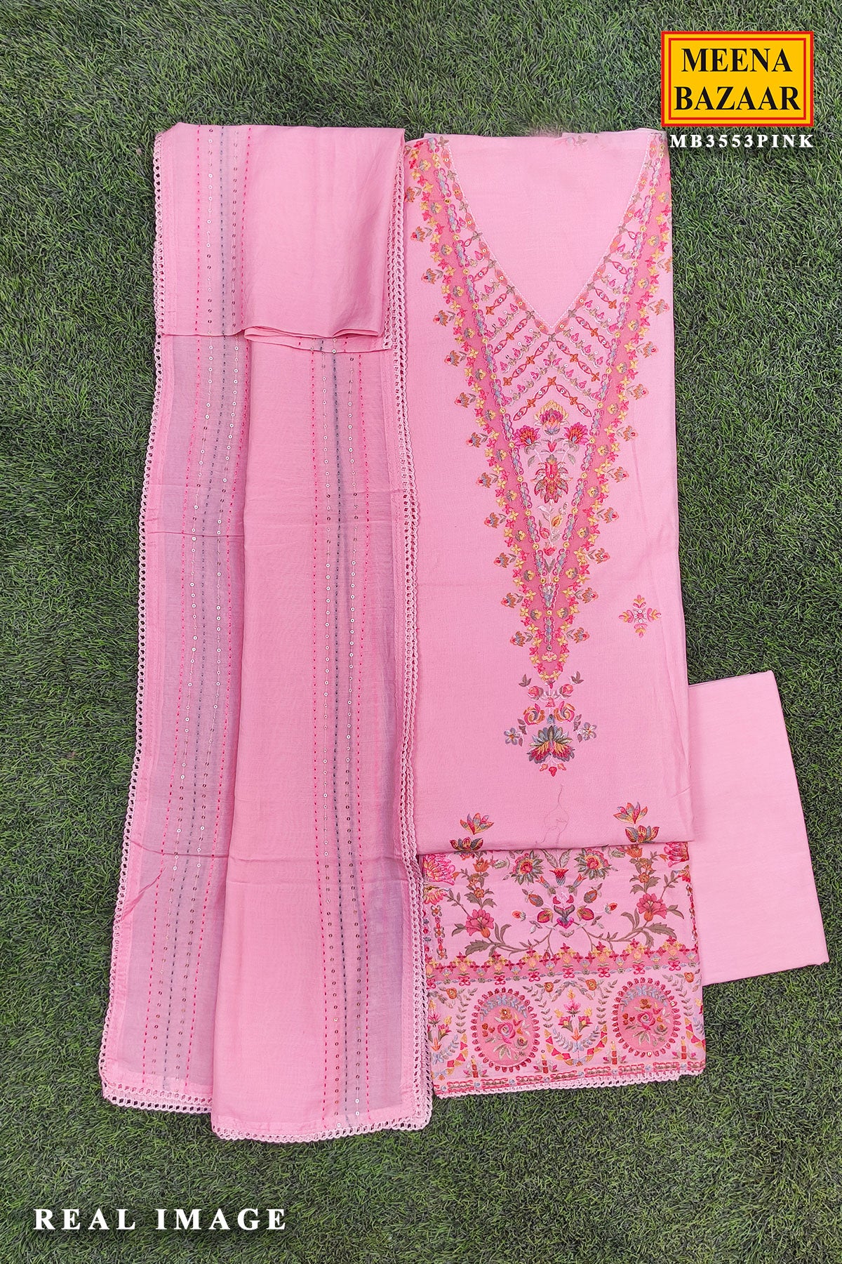 Pink Cotton Unstitched Suit with Embroidery