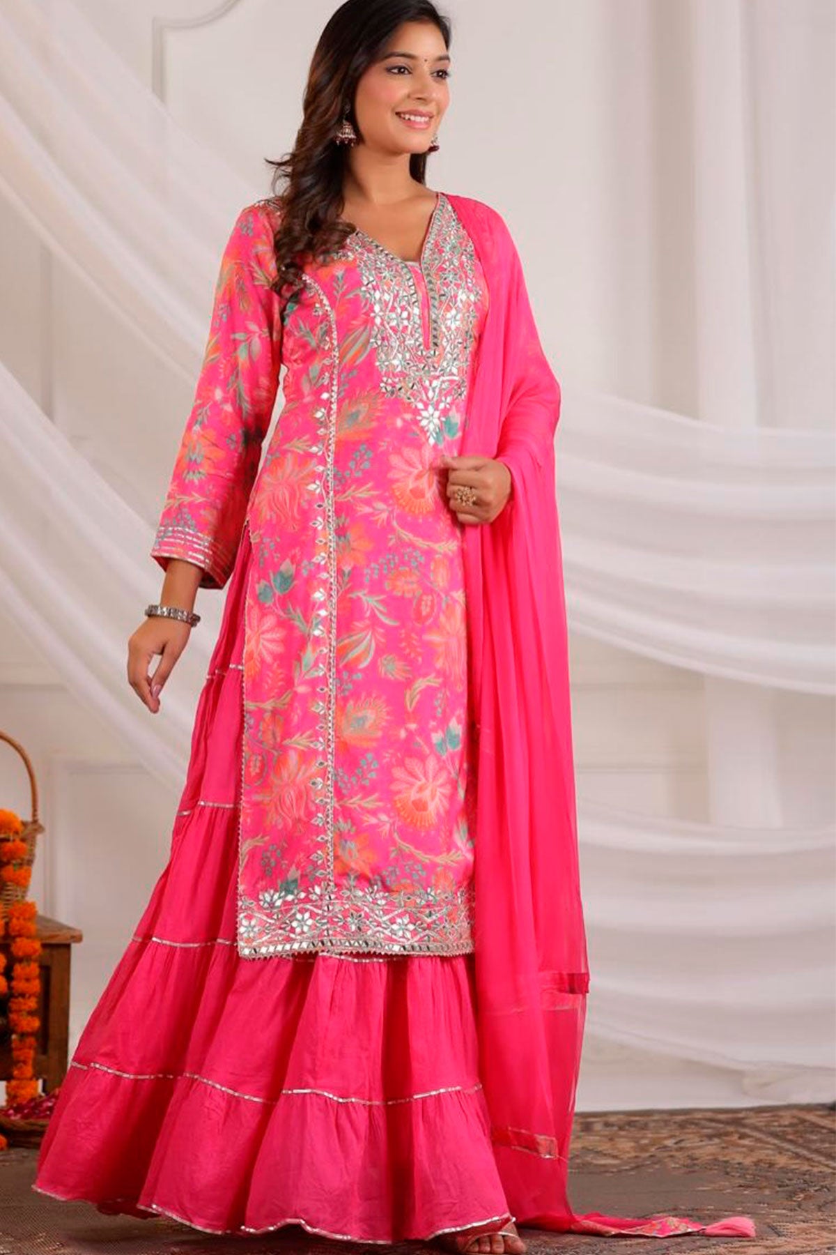 This beautiful Pink Crepe Kurti featuring exquisite Gota Patti and TRM detailing. Crafted from soft and lightweight crepe fabric, this kurti offers a comfortable yet elegant fit, making it perfect for festive occasions, family gatherings, or casual celebrations. The intricate Gota Patti work adds a touch of traditional charm, while the TRM accents enhance its overall design, giving it a modern ethnic appeal. Pair it effortlessly with leggings, palazzos, or skirts to create a graceful and stylish look. Available in multiple sizes, this kurti is designed to provide both comfort and style. Add this stunning piece to your collection for an effortless blend of tradition and contemporary fashion, ideal for any occasion where you want to stand out. Please Note: There may be a slight difference in the product color due to lighting and screen reflections.