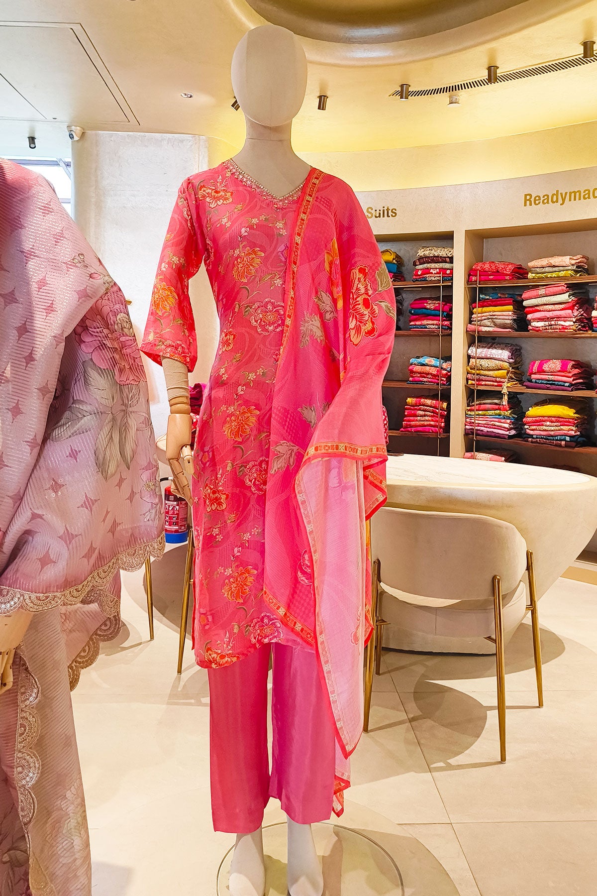 Step into effortless elegance with this pink Suit Set, a refreshing blend of vibrant color and graceful florals. Crafted in a soothing pink base, the kurta is adorned with lively floral prints that beautifully enhance its festive charm. The soft V-neckline and relaxed silhouette make it both flattering and comfortable for all-day wear.