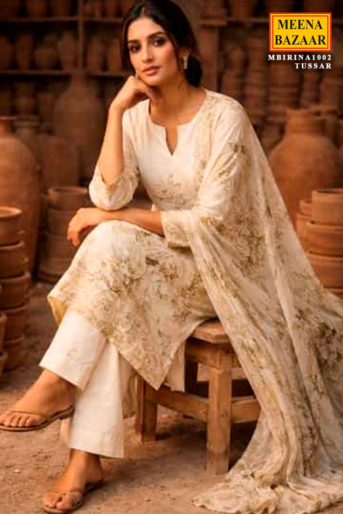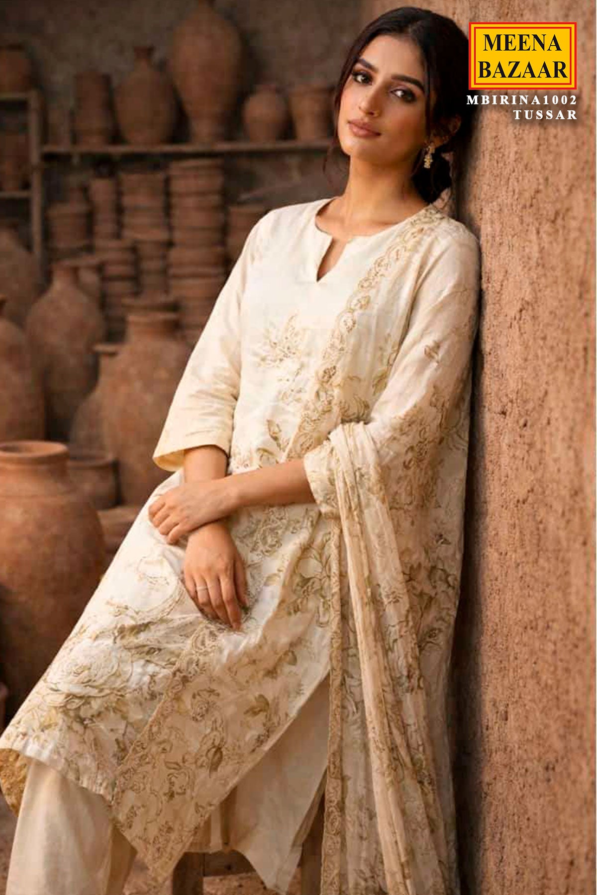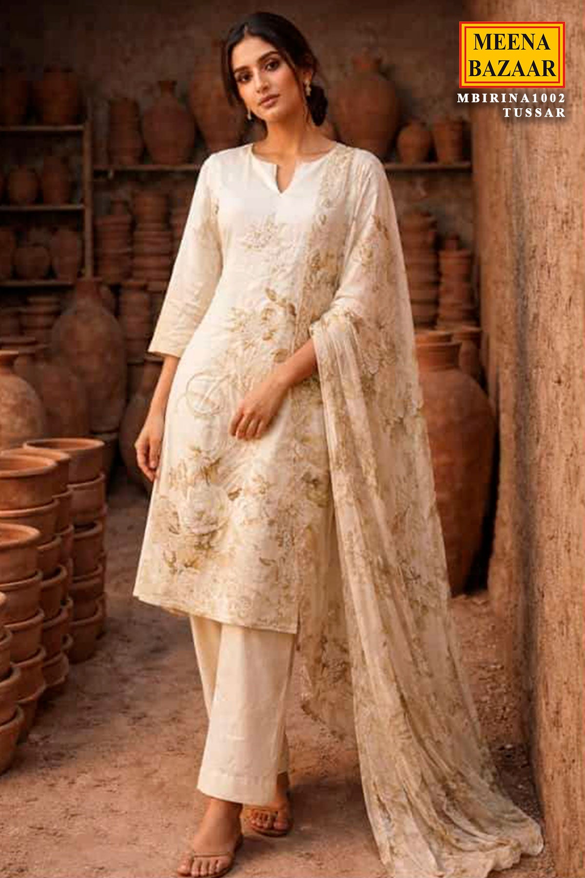 Royal Tussar Maslin Unstitched Suit with Elegant Embroidery