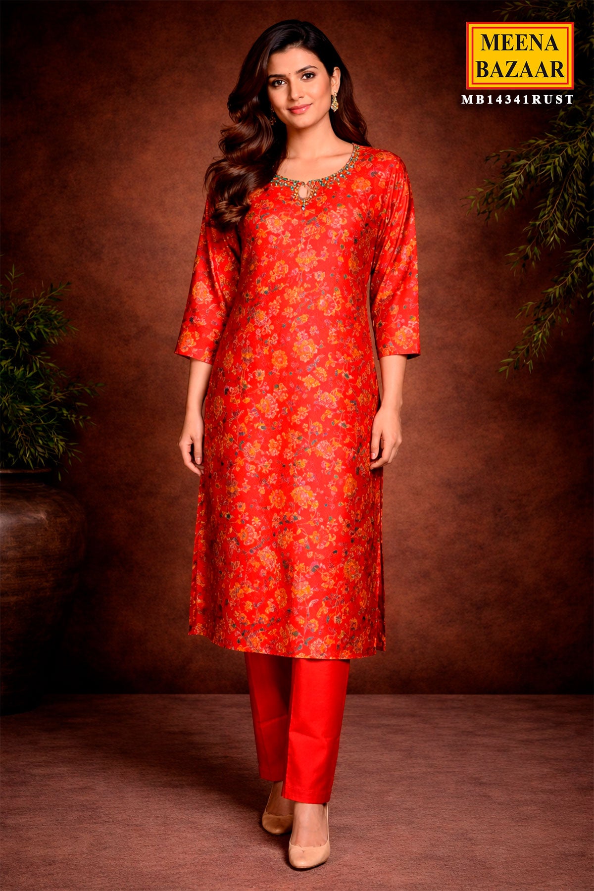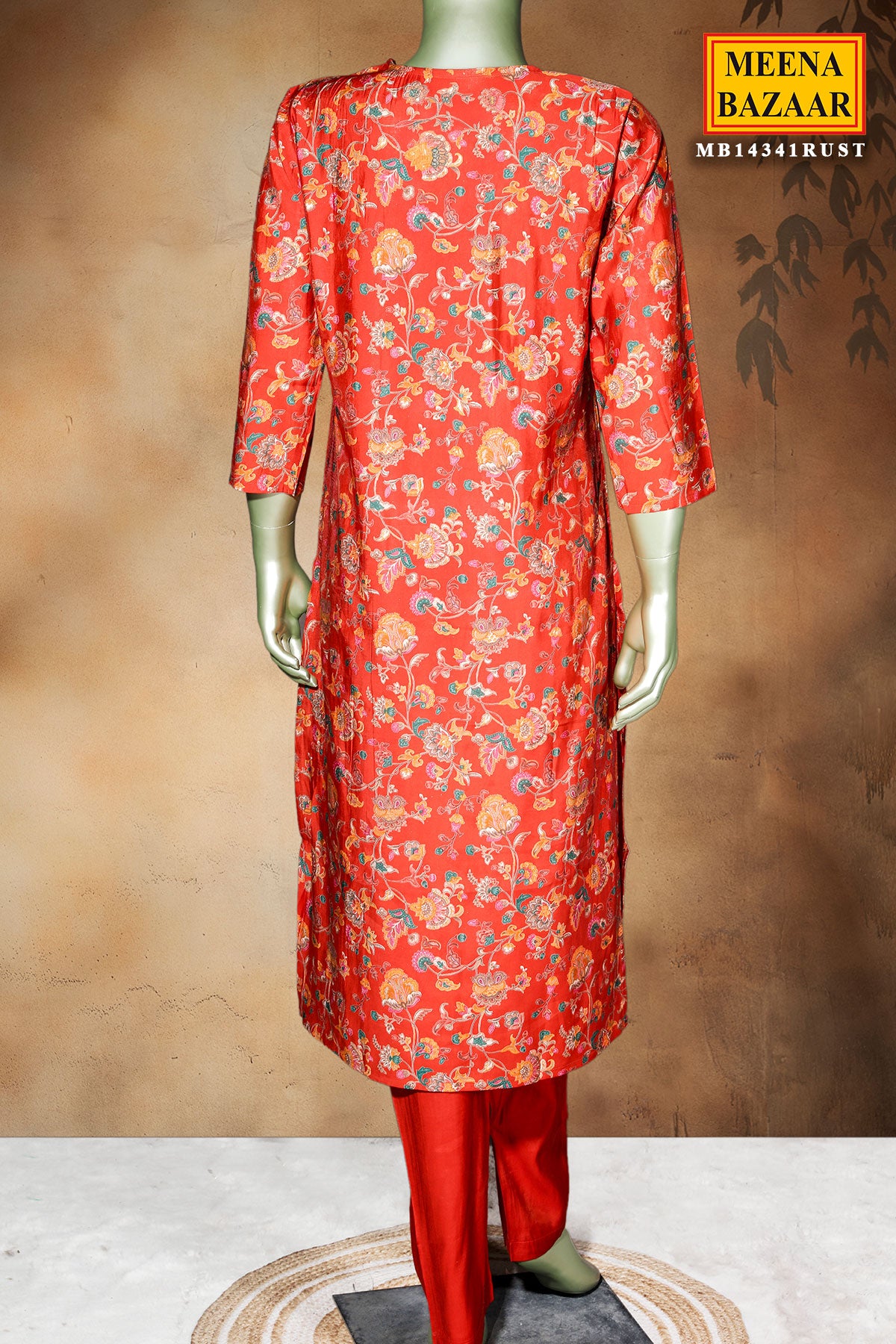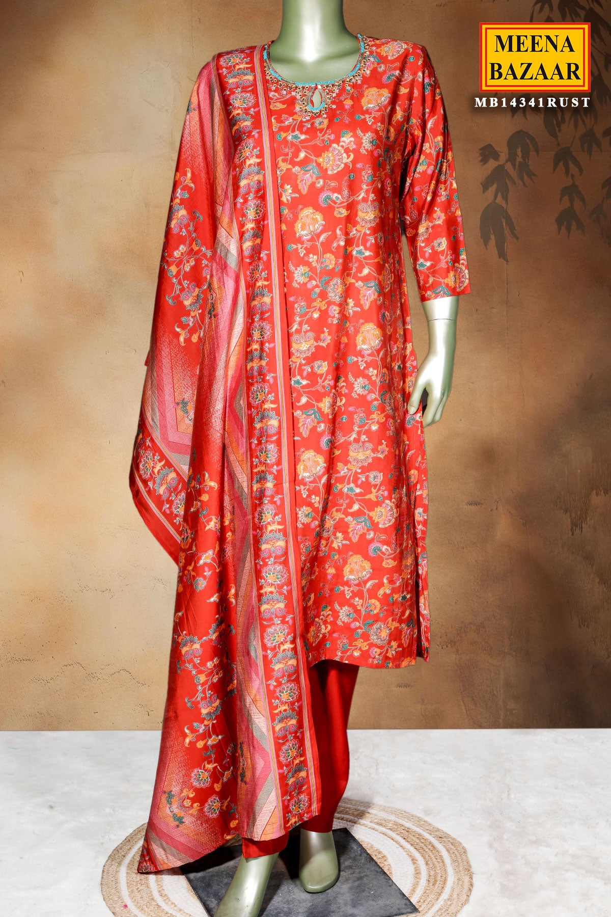 Elevate your ethnic wardrobe with this beautiful Rust Ready-Made Suit crafted in premium Maslin fabric. Designed for effortless elegance, this outfit features a delicately embroidered neckline that adds a refined and graceful touch. The soft and breathable fabric ensures all-day comfort, while the rich rust shade makes it perfect for festive occasions, office wear, and intimate gatherings.