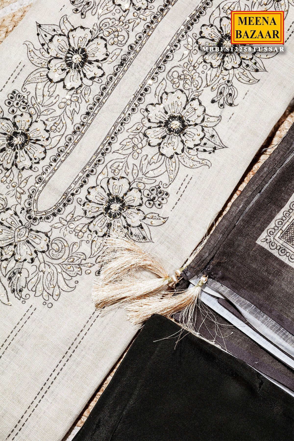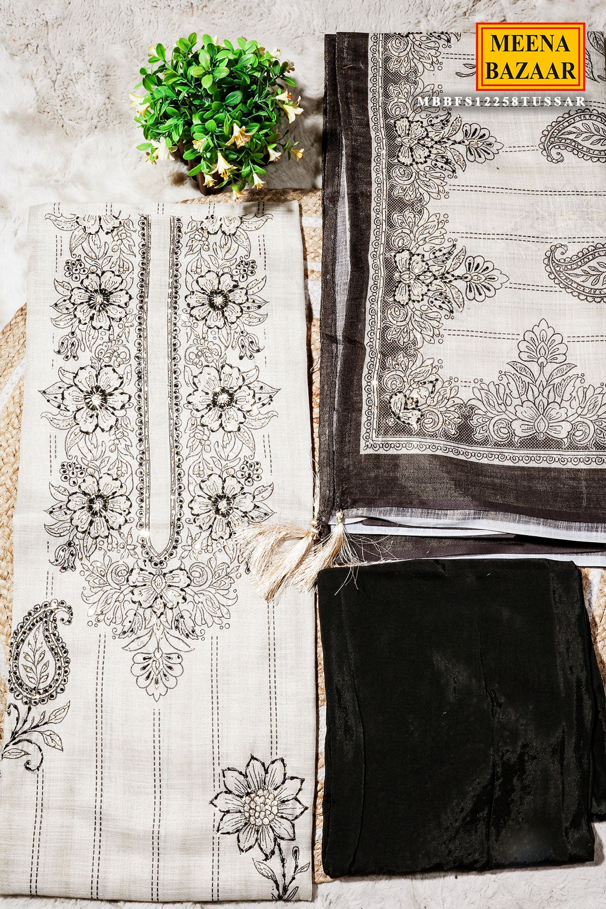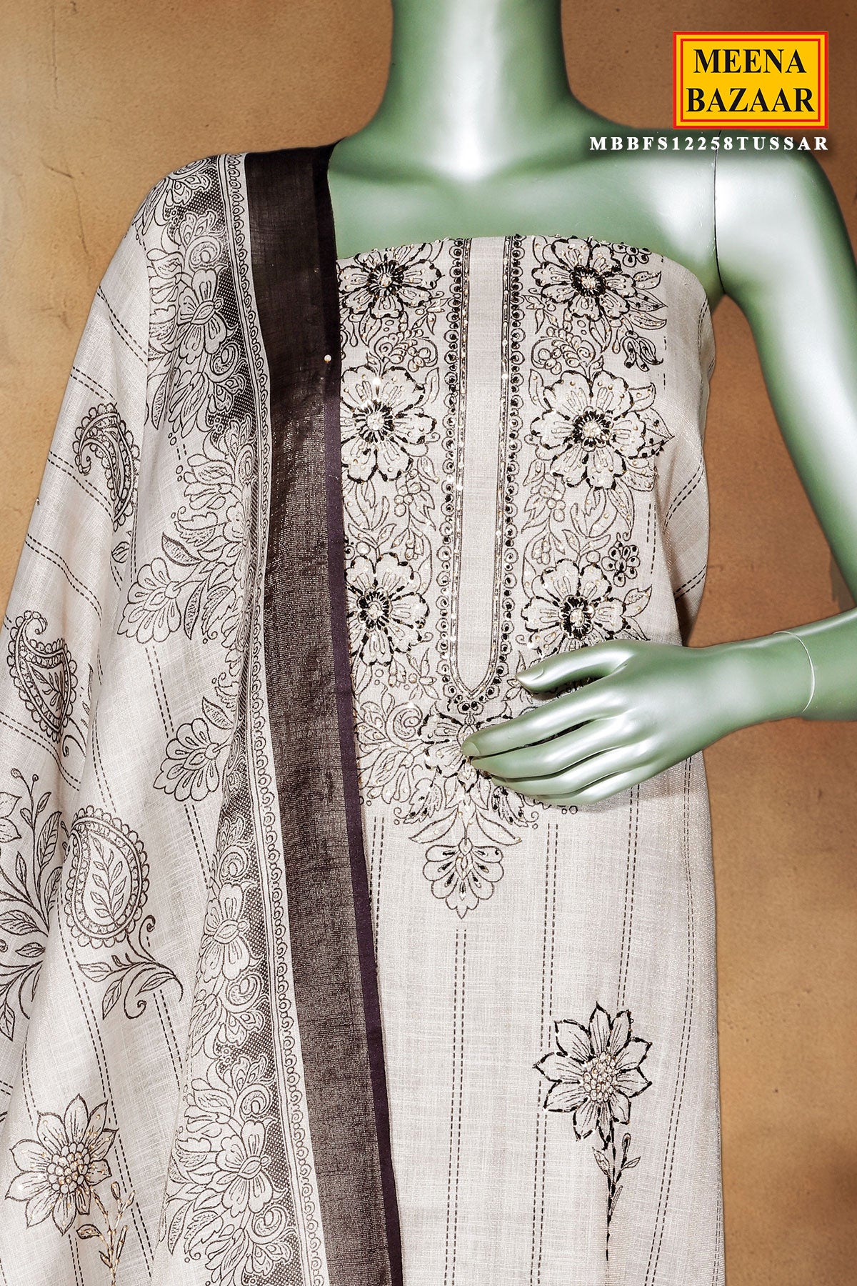 Tussar Cotton Unstitched Suit with Elegant Embroidery