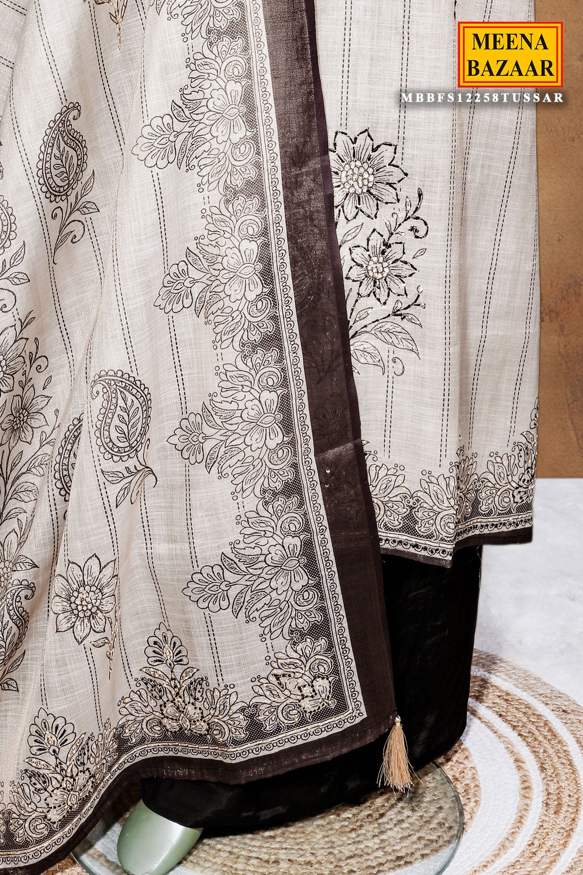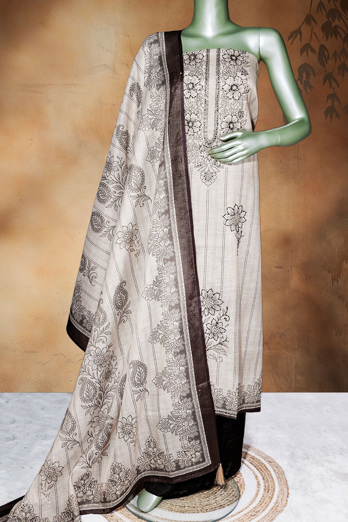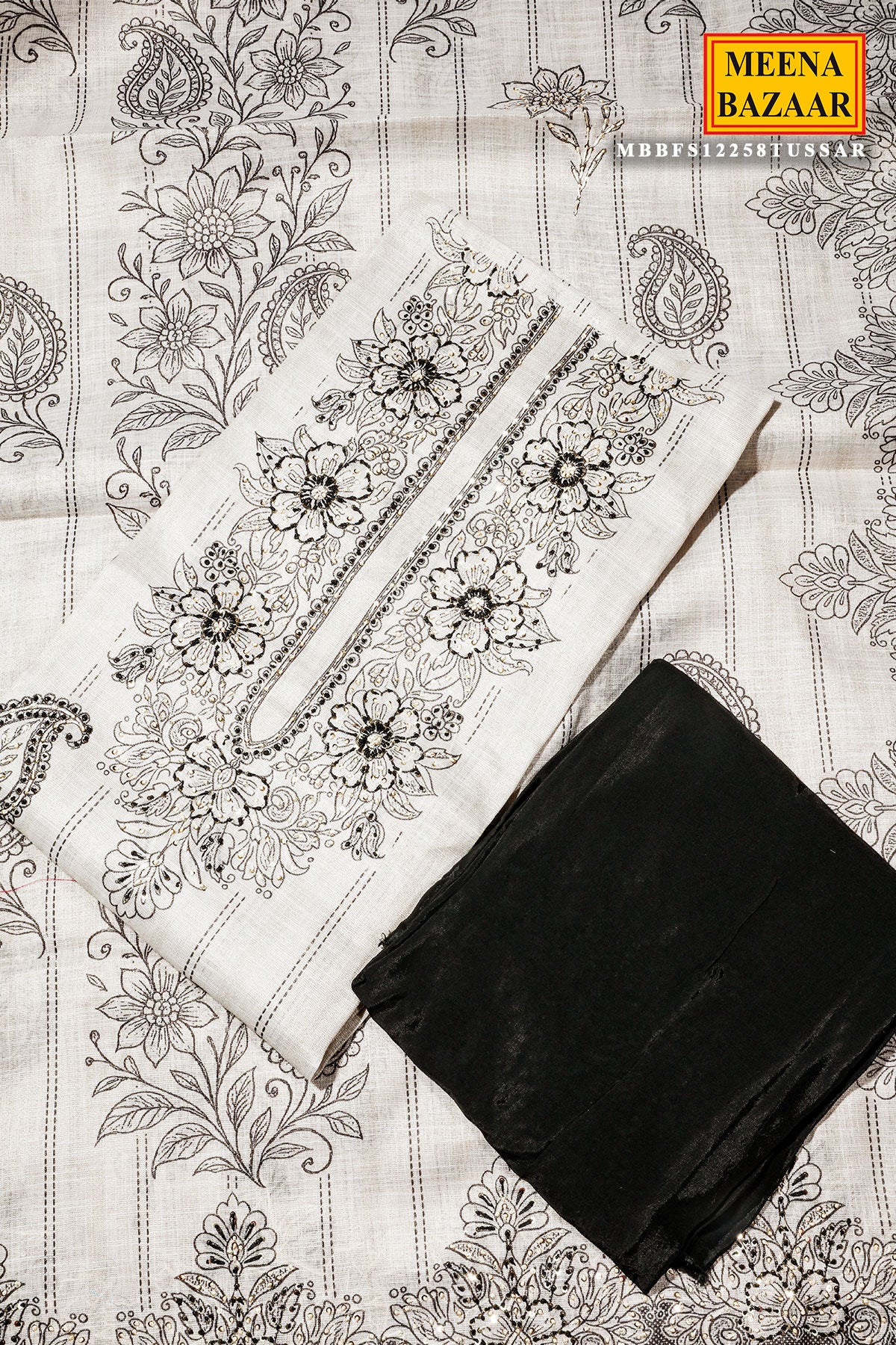 Tussar Cotton Unstitched Suit with Elegant Embroidery