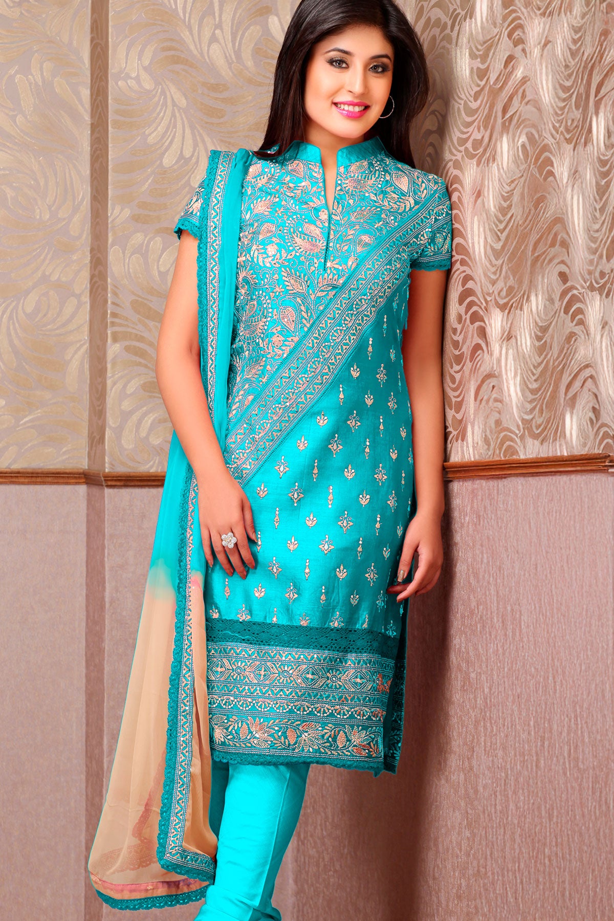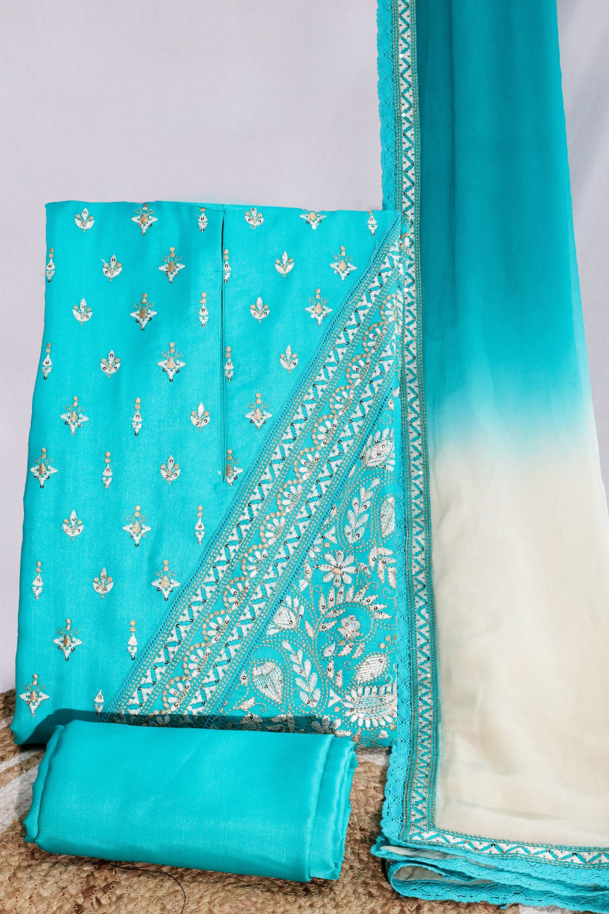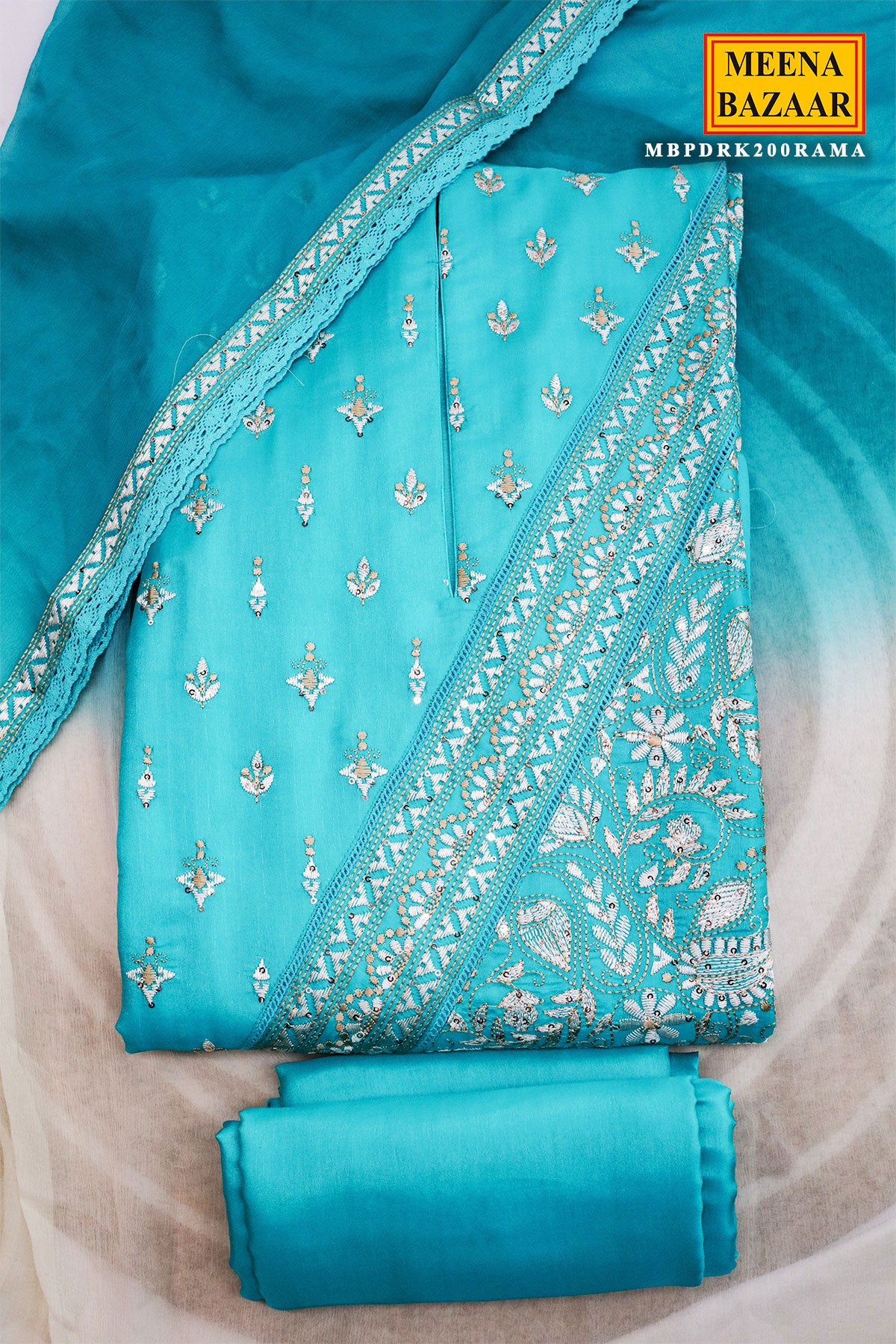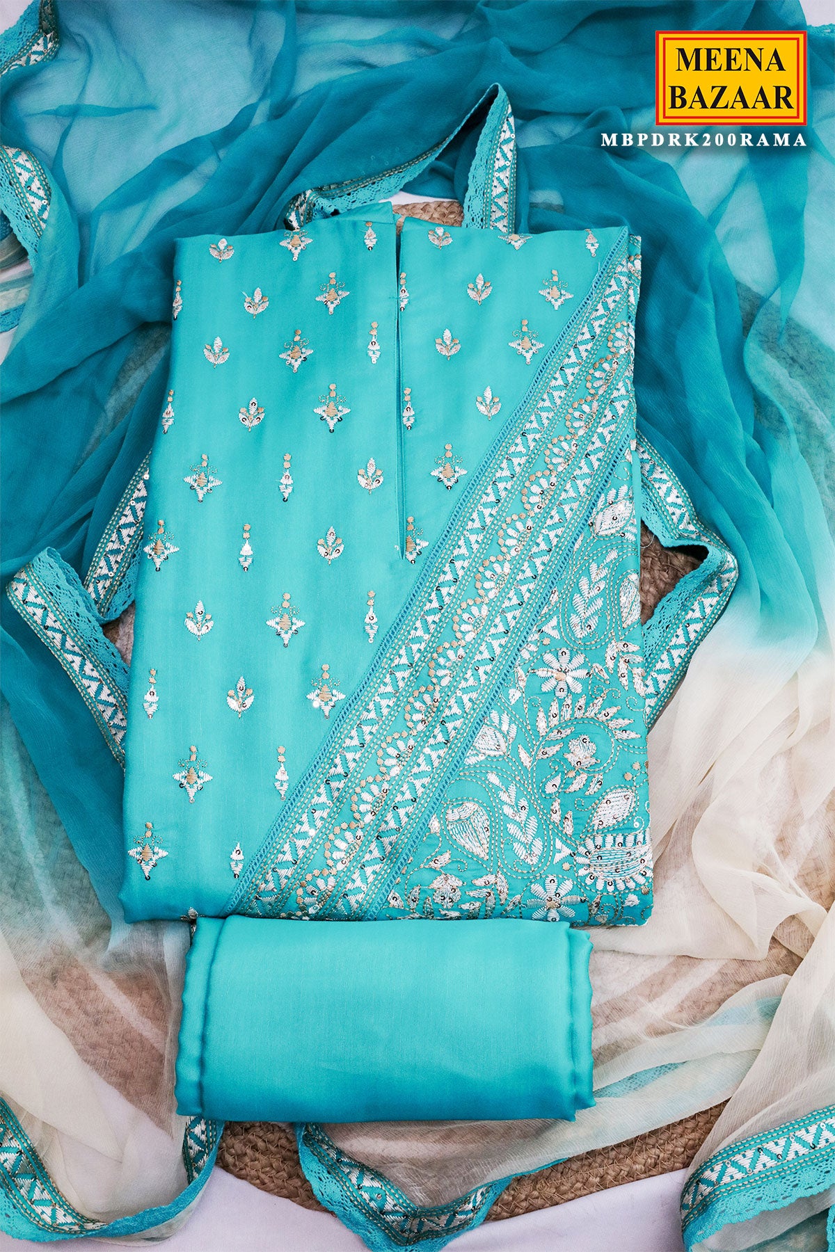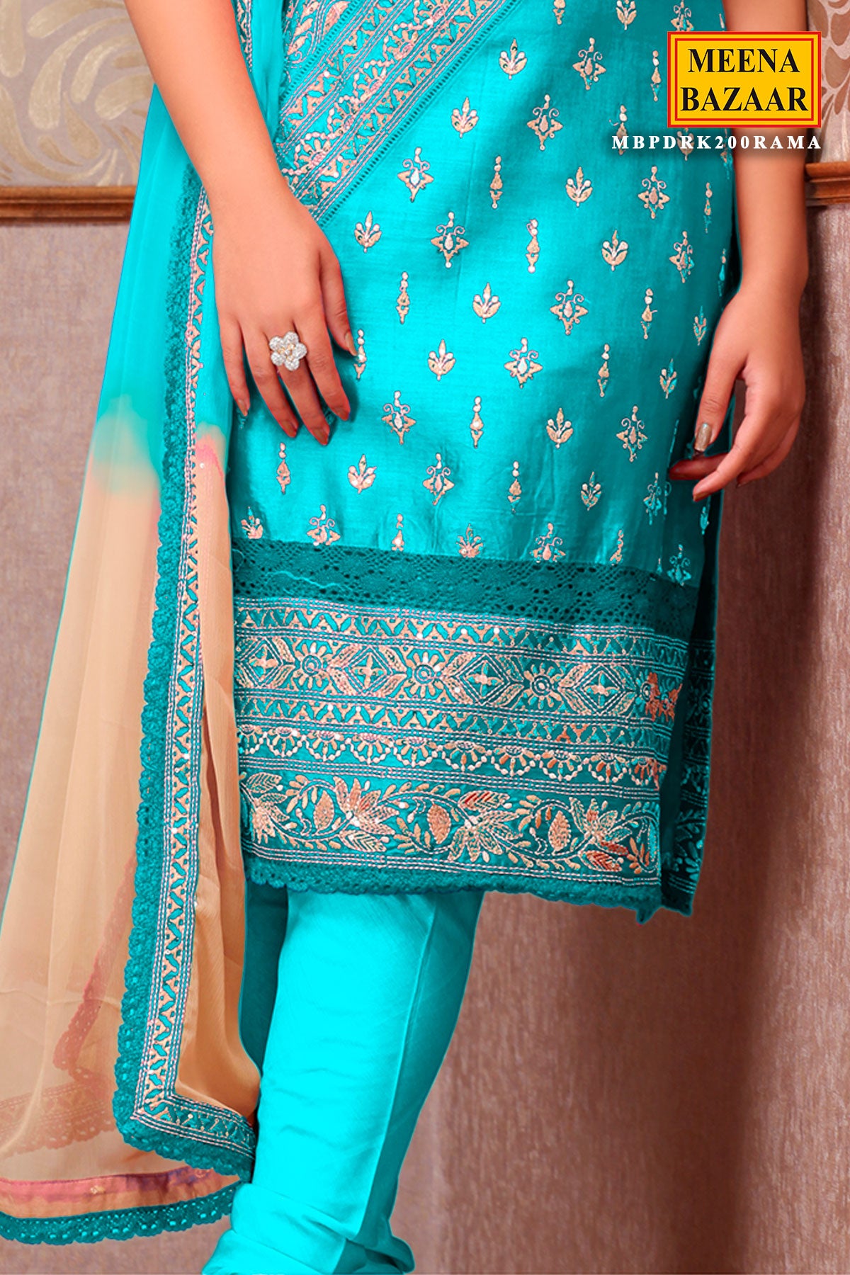 Embrace elegance with our Regal Rama Suit, designed in a refreshing Rama colour that perfectly balances grace and vibrance. Made with premium silk fabric, this outfit offers a luxurious shine and smooth drape, enhancing your festive look.