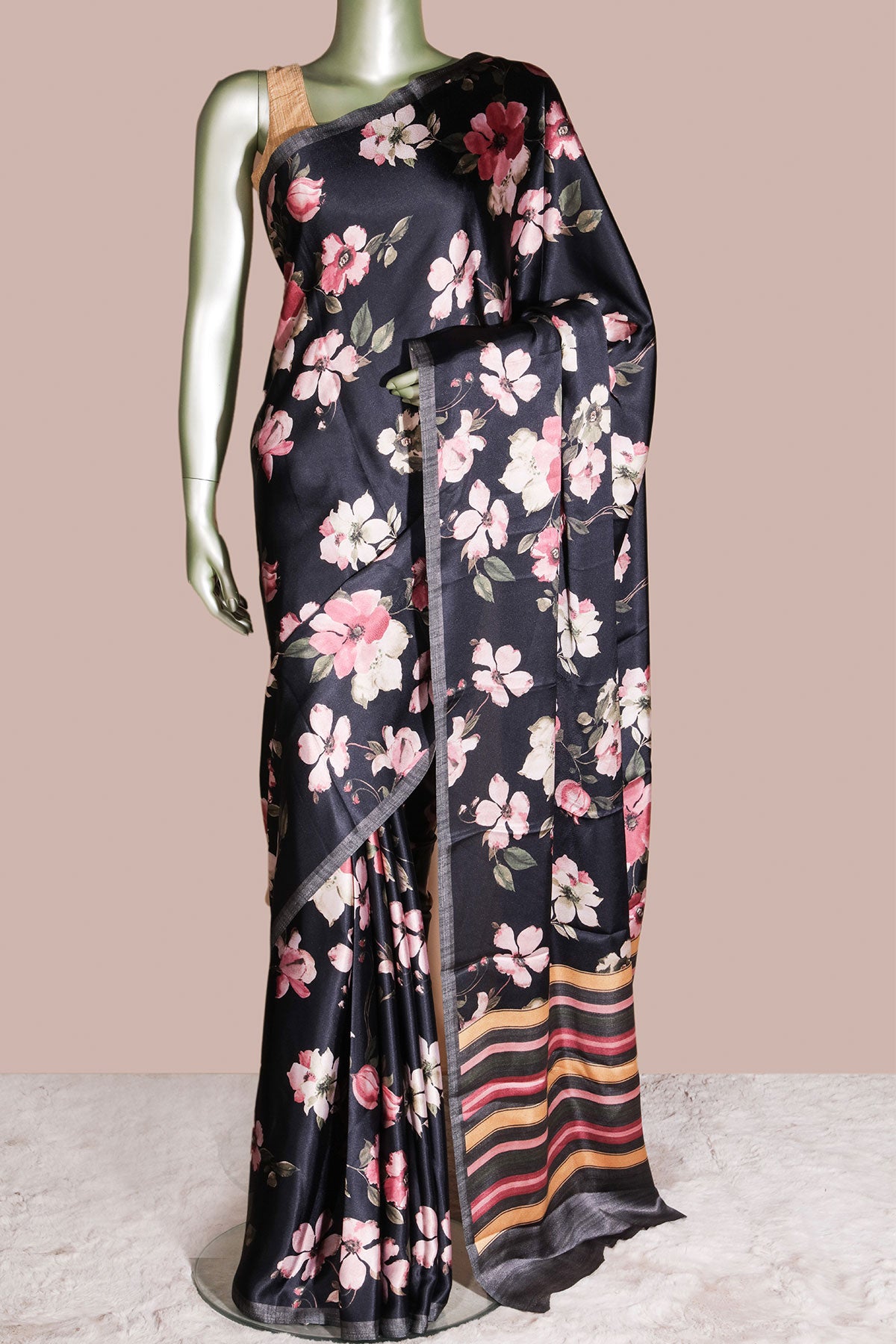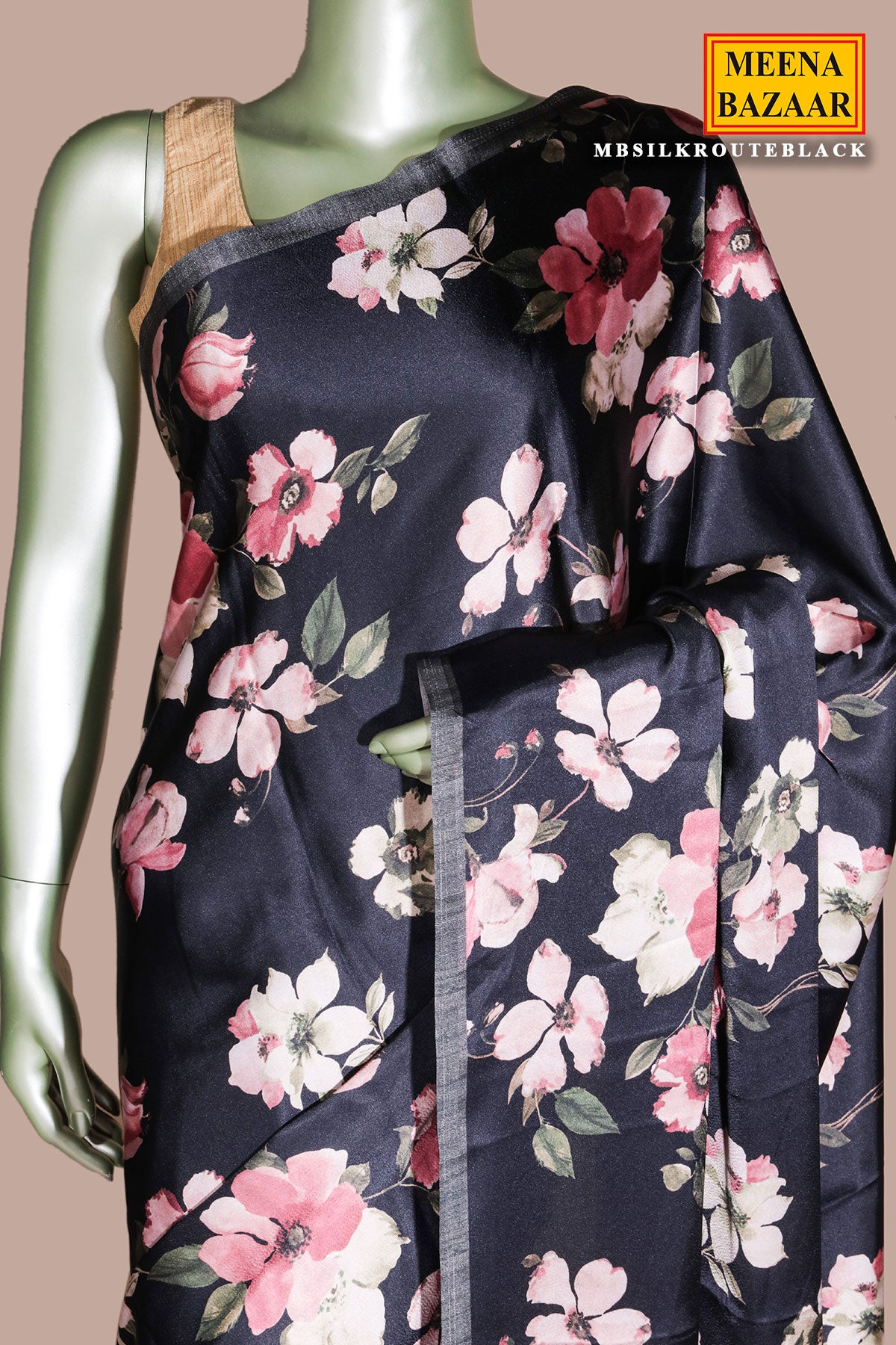 Turn heads with this chic black satin saree, crafted from smooth and luxurious satin fabric for a sleek, flowing drape. The saree features a contemporary printed design that adds a modern flair while maintaining an elegant appeal. Perfect for evening parties, formal events, or festive gatherings, this saree effortlessly combines sophistication with style, making it a must-have addition to your ethnic wardrobe.