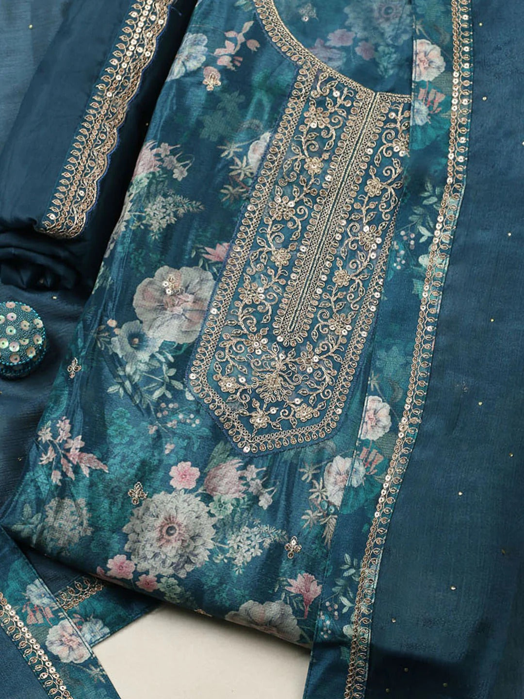 Elevate your ethnic collection with this elegant Blue unstitched suit set crafted in smooth Crepe fabric. Beautiful embroidery work adds a touch of sophistication, making it perfect for festive occasions, casual gatherings, or graceful everyday wear. The rich blue hue enhances its charm, while the unstitched format lets you customize the fit and style exactly to your preference.