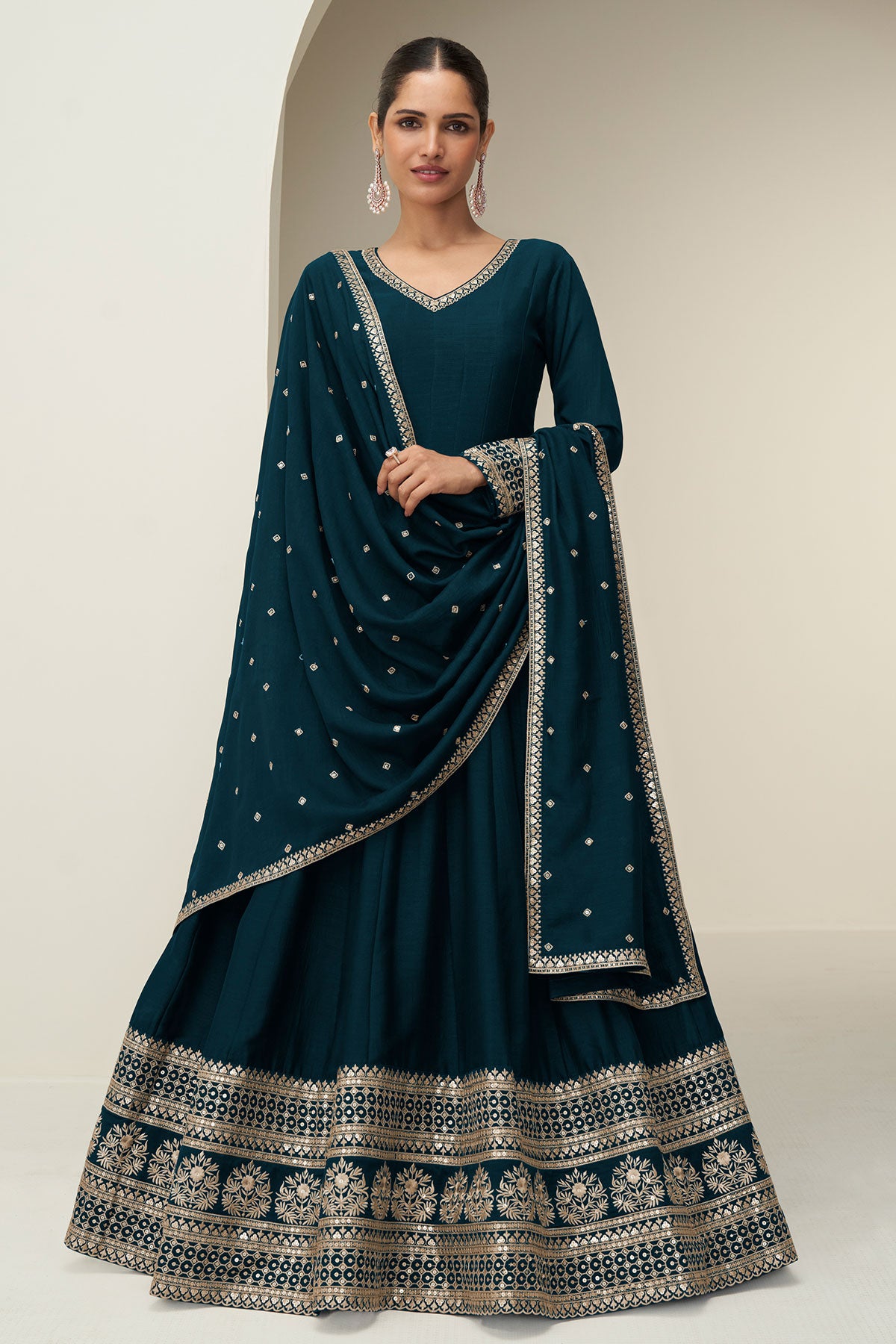 Step into elegance with this beautiful Blue Ready Made Suit, crafted to add a touch of royalty to your festive and occasion wear collection. Designed in a premium silk fabric, this ensemble offers a graceful fall and luxurious sheen, making it perfect for celebrations, weddings, and special gatherings.