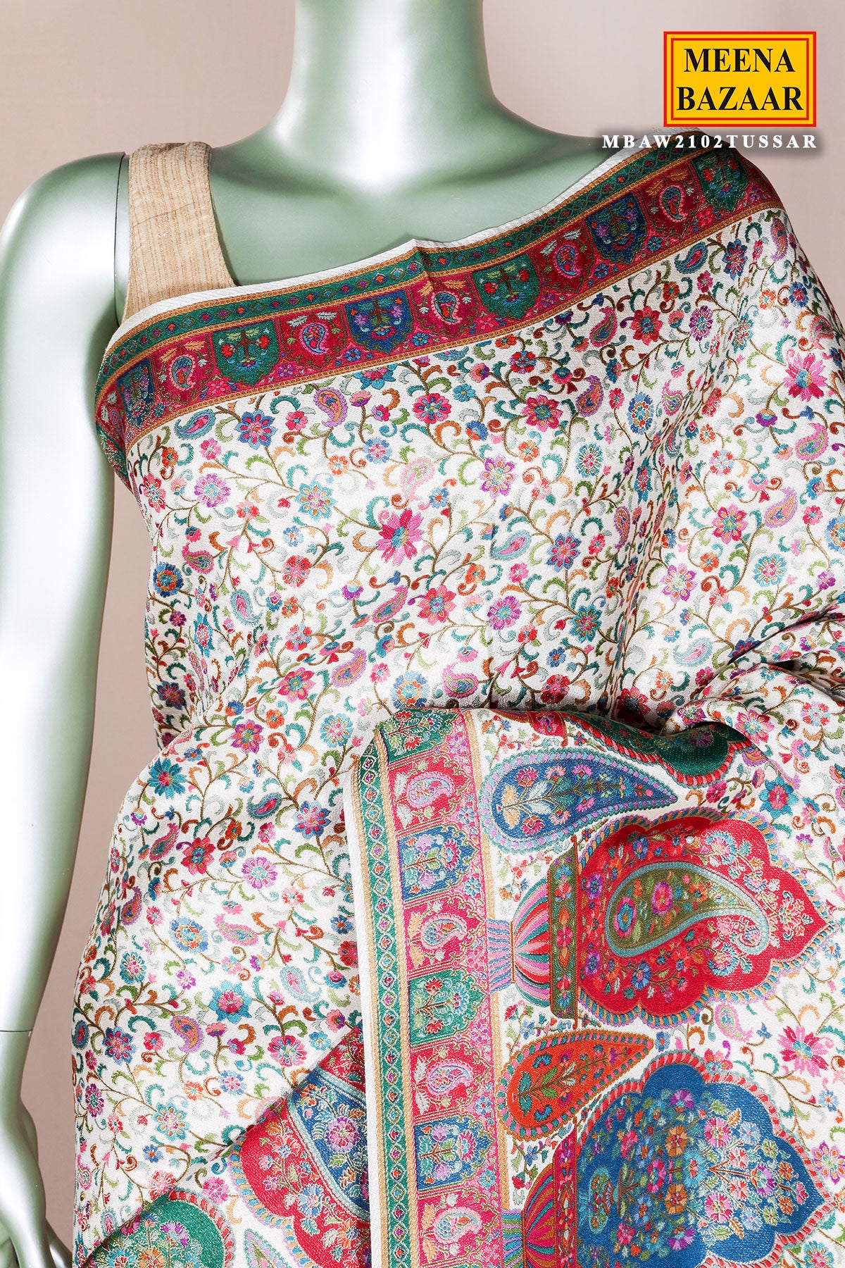 This is a graceful Tussar Silk Weaving Saree from Meena Bazaar. Crafted from premium silk fabric, this saree features intricate weaving work that enhances its rich texture and traditional appeal. The soft yet vibrant tussar shade adds a touch of femininity and charm, making it a perfect choice for weddings, festive celebrations, poojas, family functions, and special occasions.Designed to drape beautifully, this silk weaving saree offers both comfort and luxury. It comes with a matching unstitched blouse fabric, giving you the freedom to customise your blouse style as per your preference. Pair it with traditional jewellery and heels to complete a classic and sophisticated ethnic look.