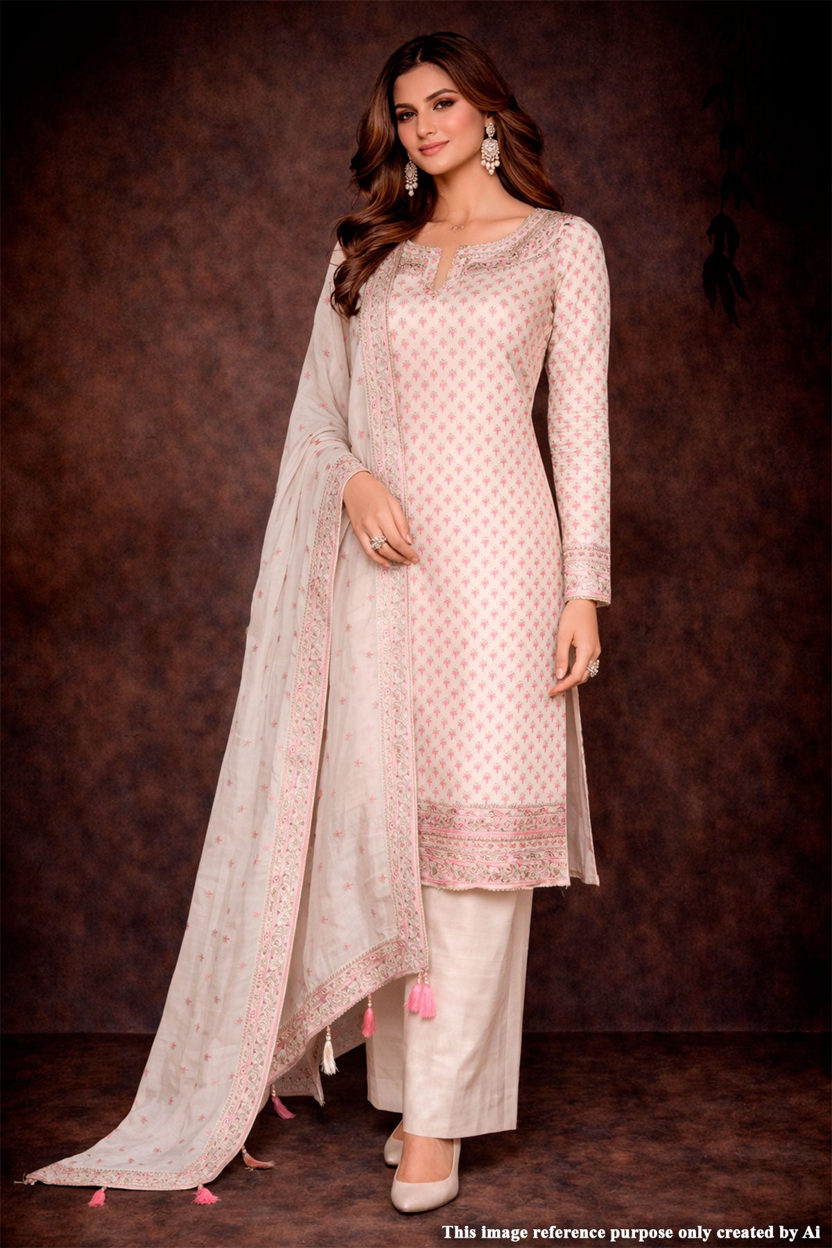 Step into timeless elegance with this luxurious unstitched suit crafted in premium Tussar Silk, designed to bring out grace and sophistication in every detail. The rich Tussar hue beautifully complements the intricate Thread & Zari Work, creating a perfect blend of traditional artistry and modern refinement.