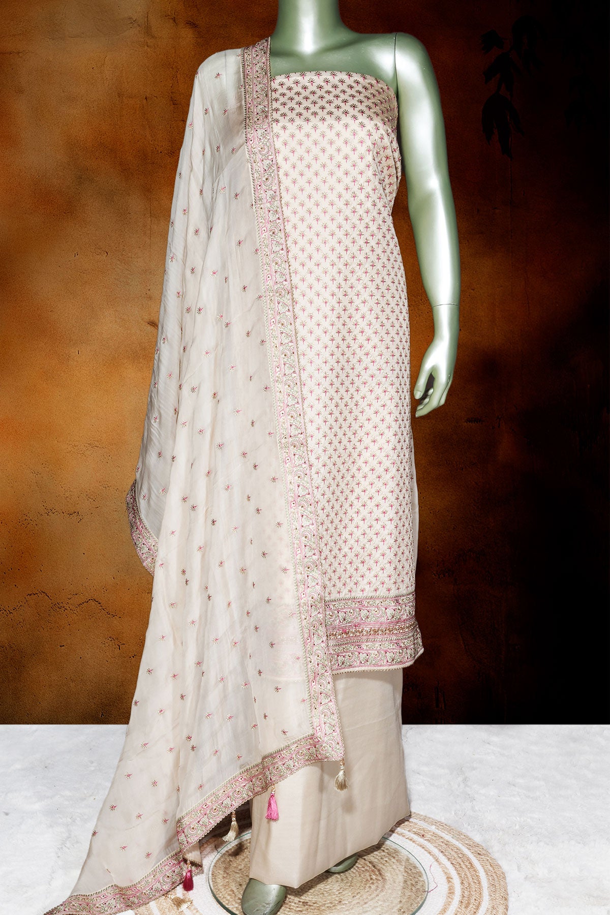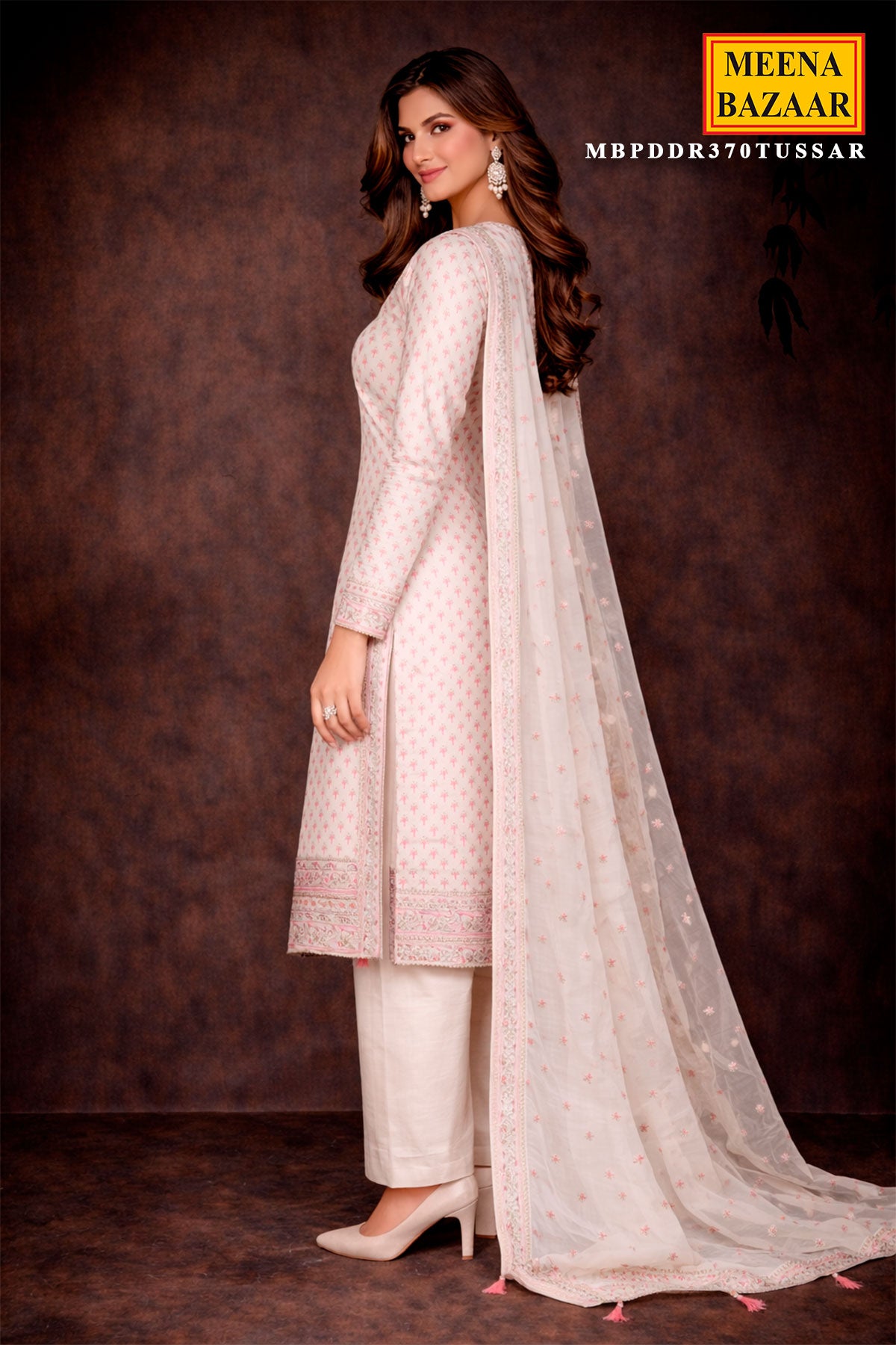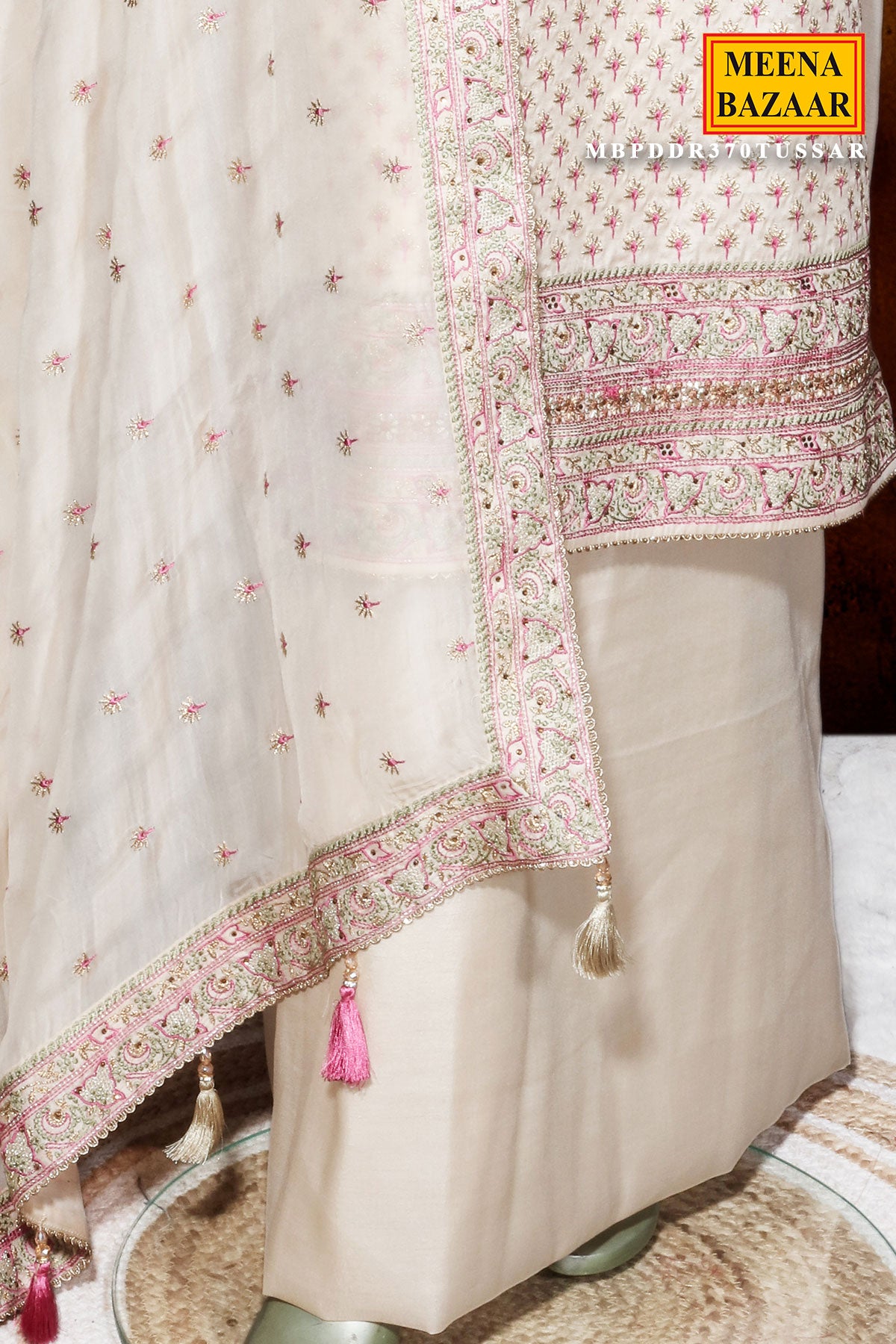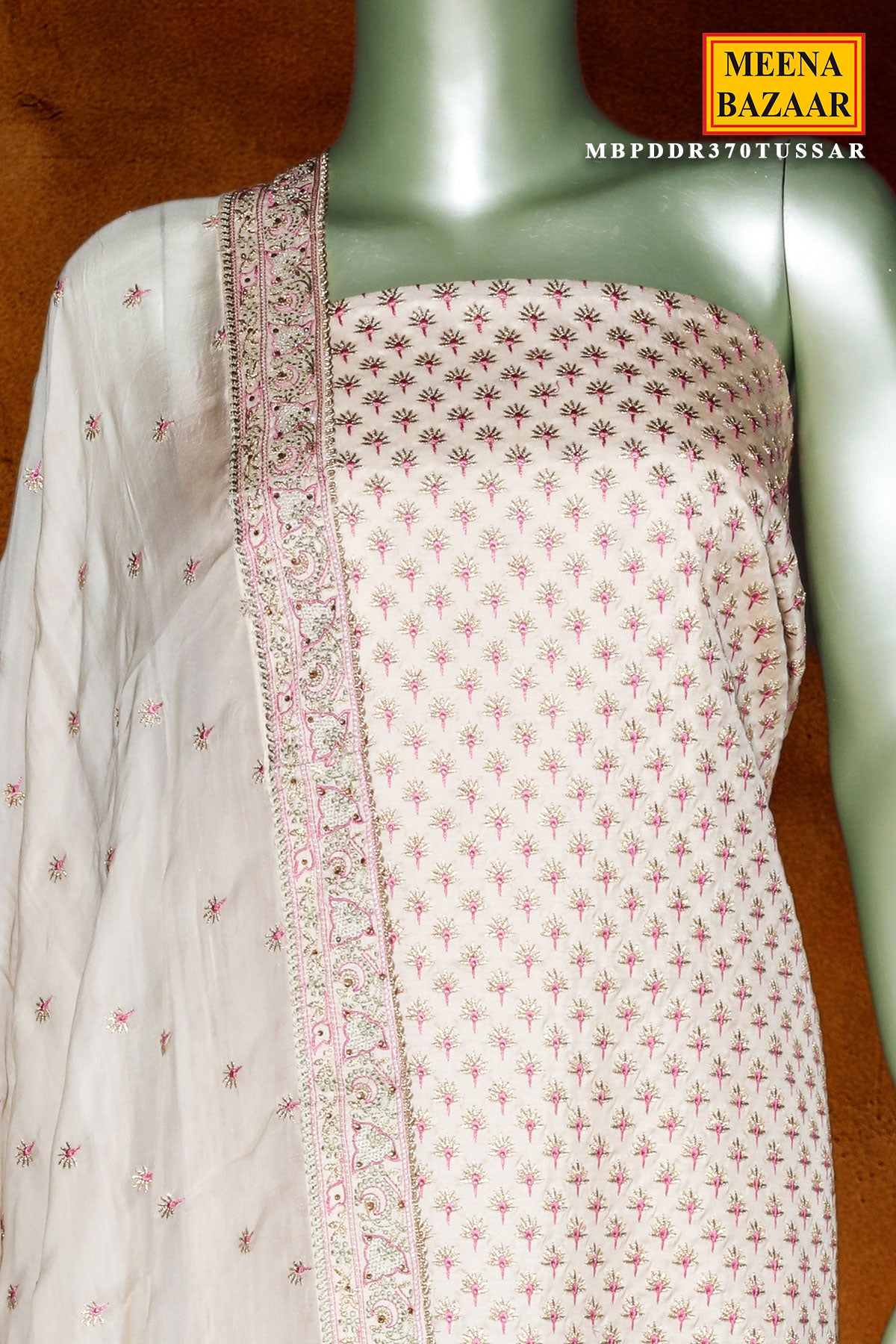 Tussar Silk Unstitched Suit with Thread & Zari Work