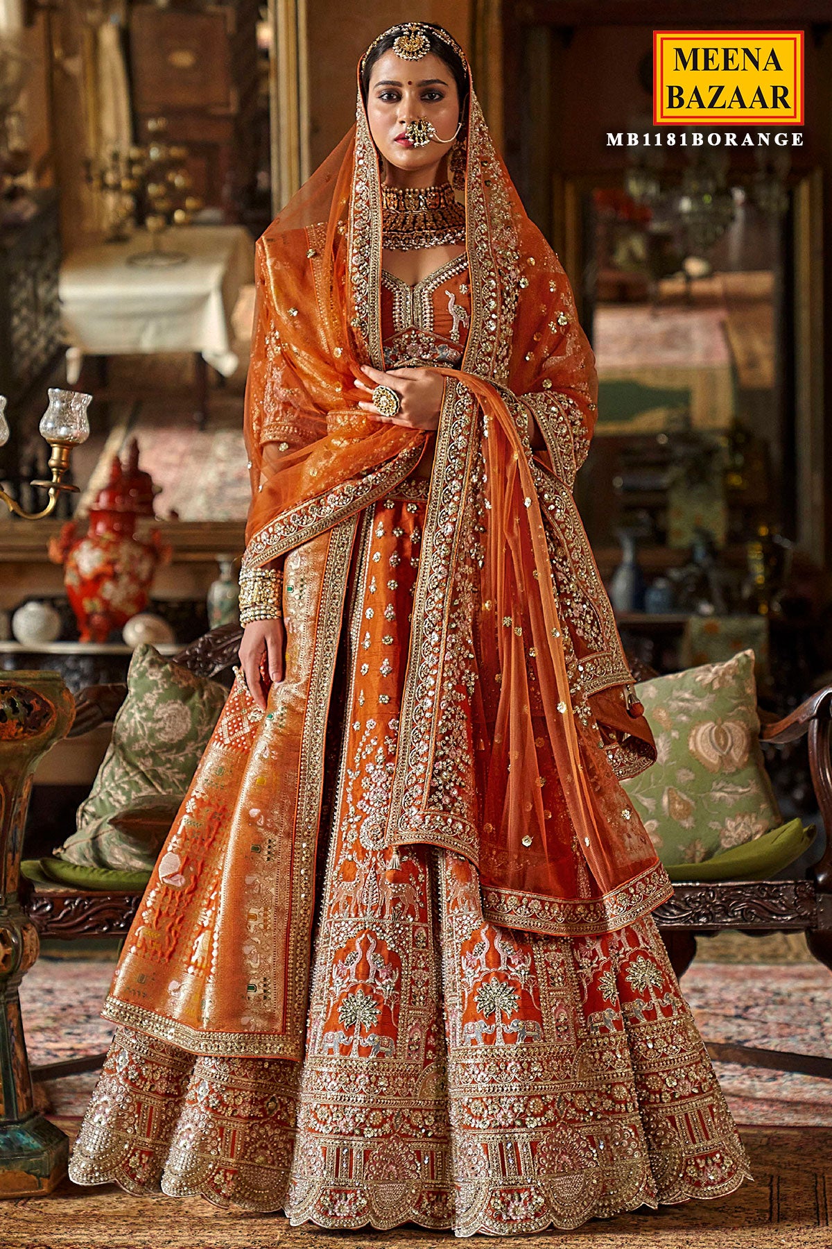 Orange Silk Zari and Sequin Embroidered Bridal Lehenga – Royal Wedding Ensemble