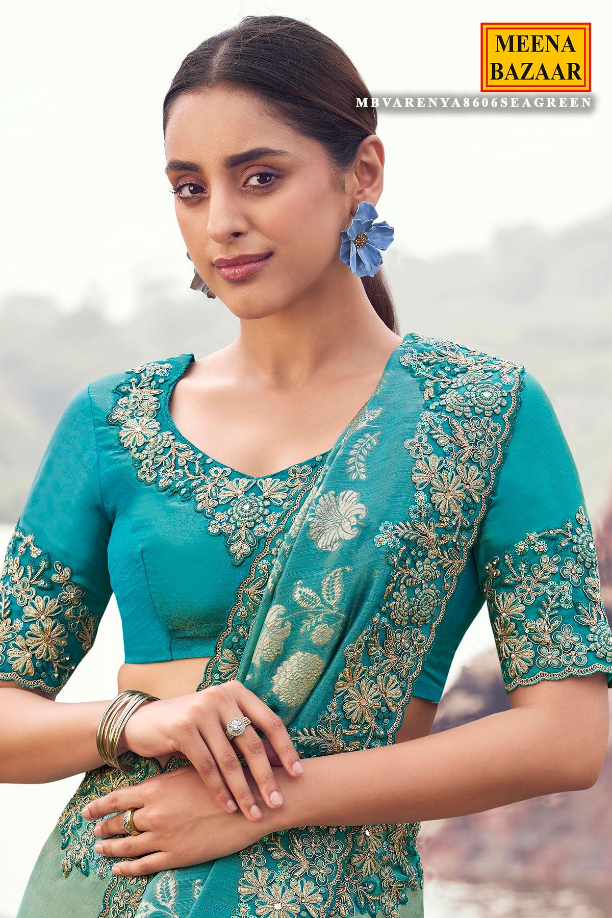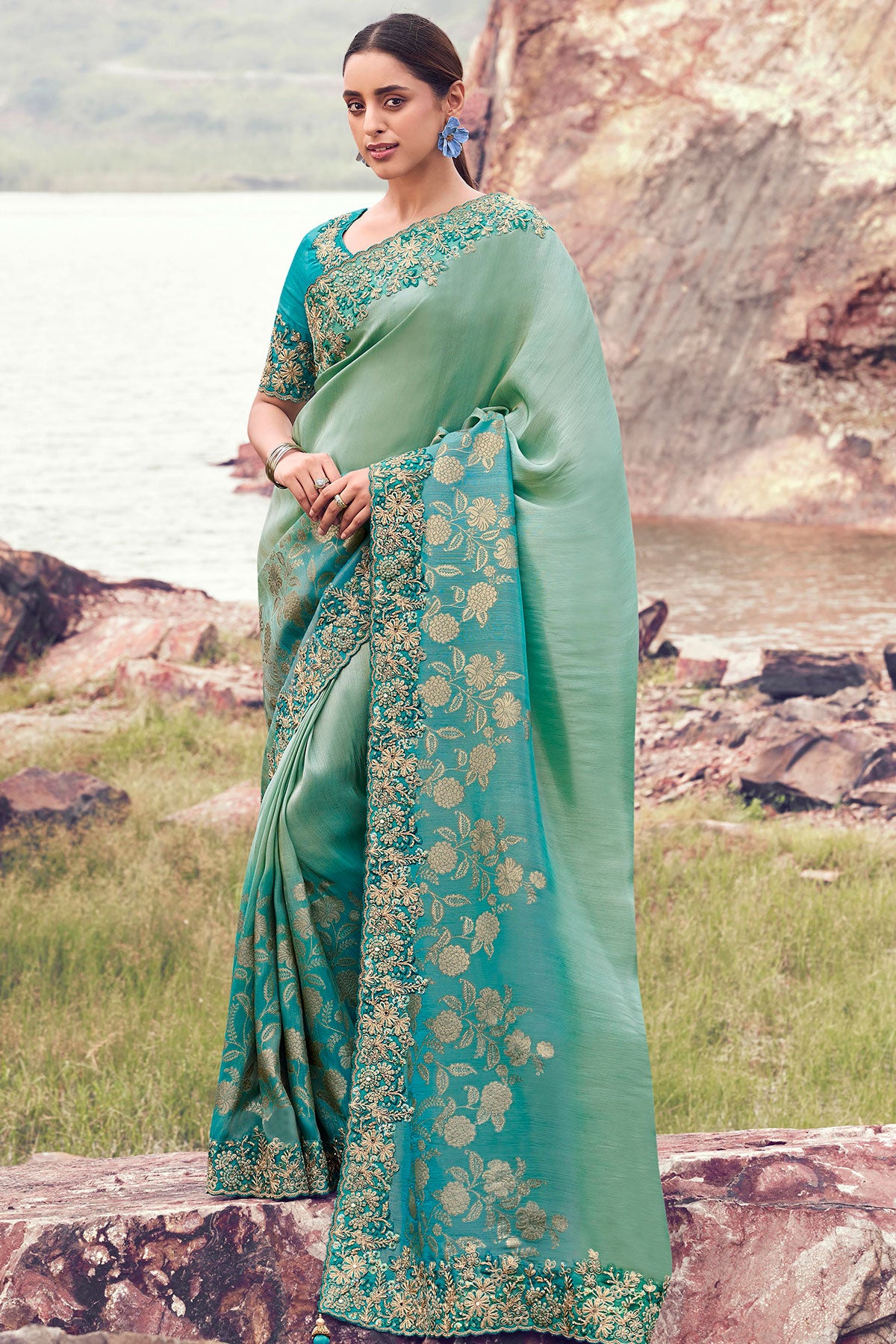 Sea Green Shimmer Embroidered Saree Elegant Festive & Party Wear