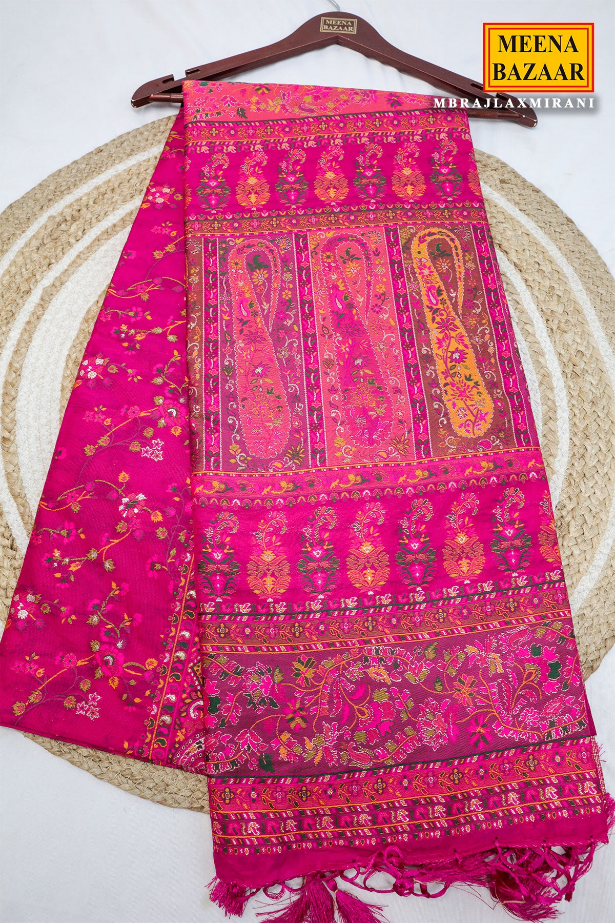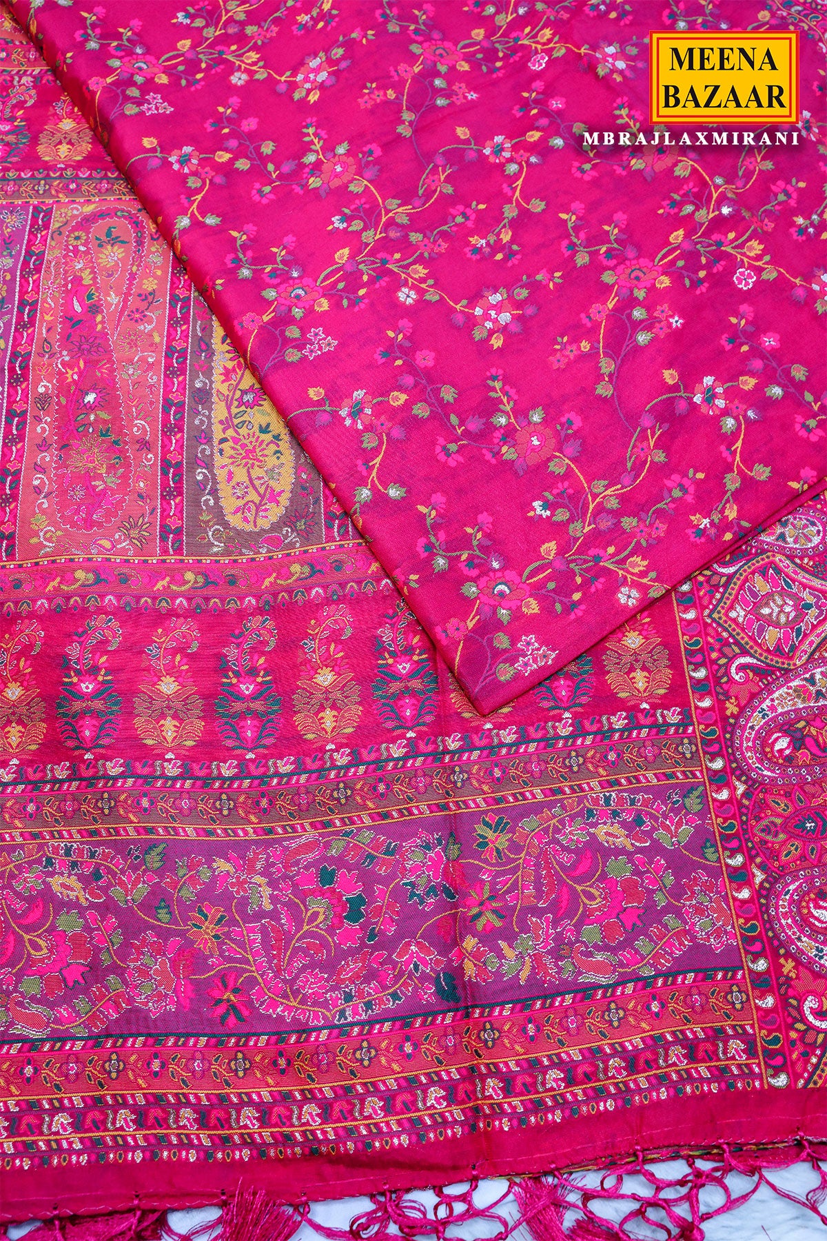This is Rani Silk Weaving Saree from MeenaBazaar.com. Crafted from premium silk, it showcases intricate woven motifs that reflect exquisite craftsmanship. The rich rani pink hue adds vibrancy and elegance perfect for weddings, festive events, and grand celebrations. With its lustrous texture and graceful drape, this saree beautifully combines tradition with timeless sophistication.